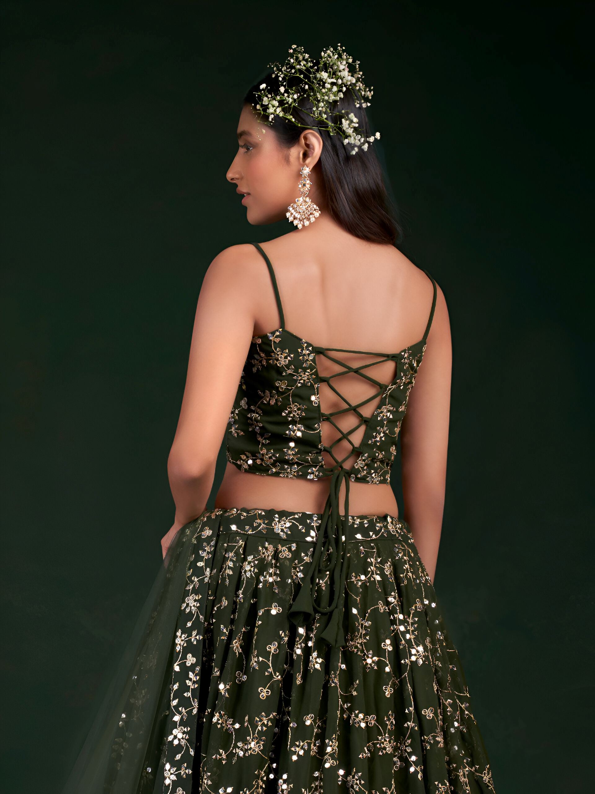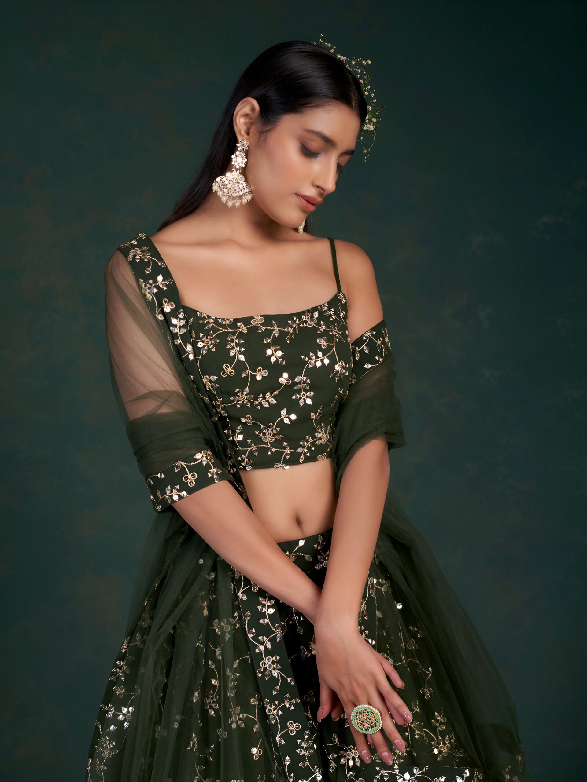 Mehendi Green Lehenga Choli with Heavy Sequence Zari work