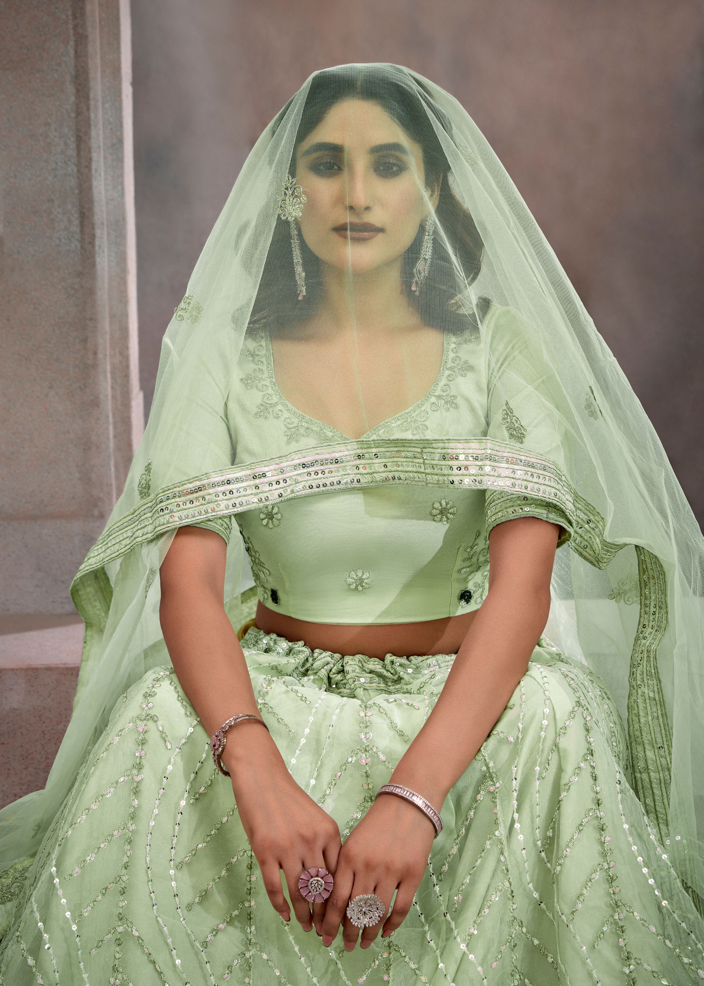 Mint Green Net Lehenga with Delicate Sequin Embroidery