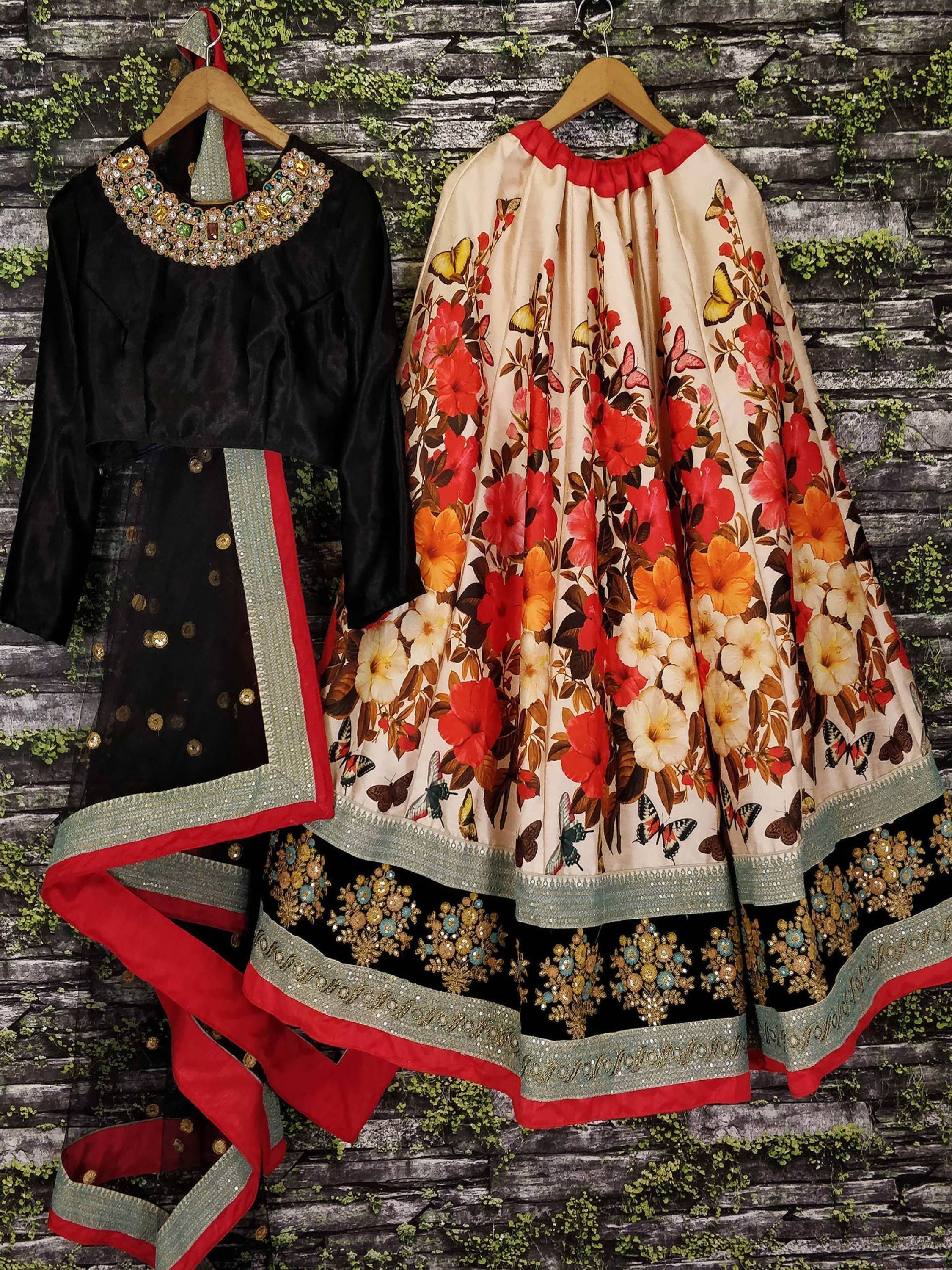 Multi-Color Floral Printed Silk Wedding Lehenga Choli With Dupatta