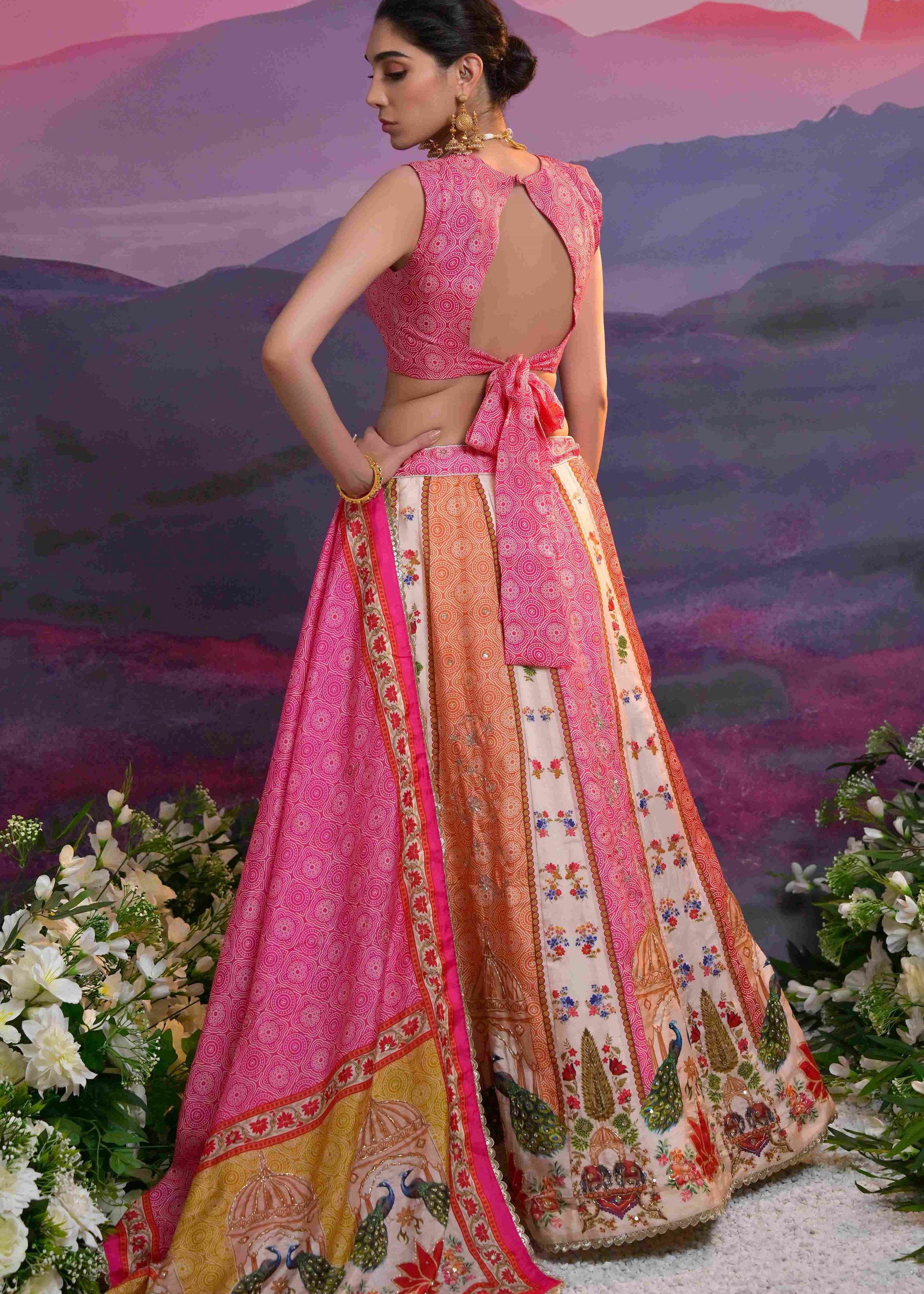 Multicolor Viscose Russian Lehenga Choli With Print With Zardosi, Cutdana, Sequins With Gota Patti Work