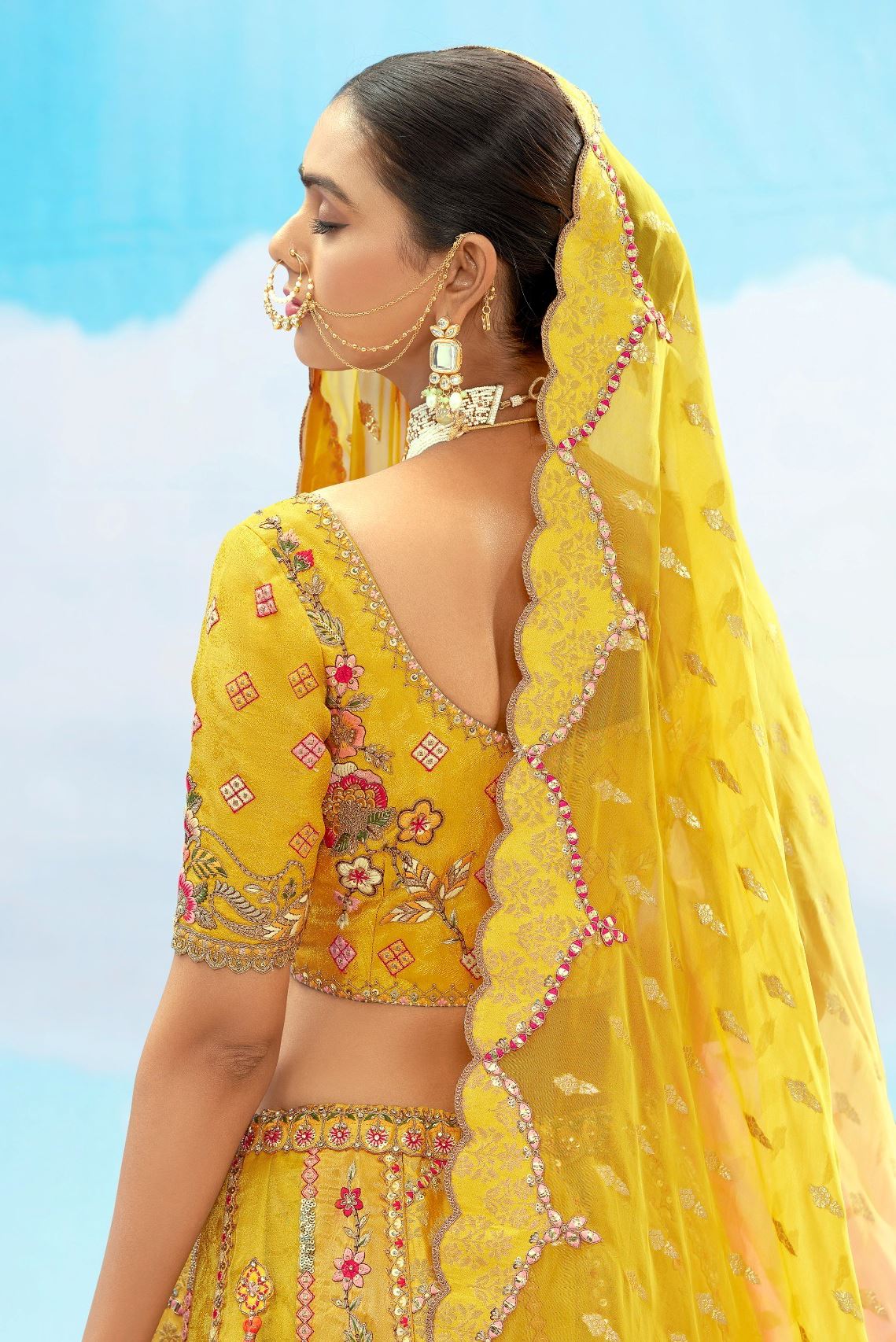 Mustard Silk Lehenga Choli With Heavy Thread Embroidery, Zari With Sequins Work