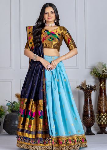 Perfect for those seeking readymade lehengas or a custom fit with $1 stitching, this outfit offers a harmonious blend of comfort and royal styling. Its timeless design makes it a staple in every festive wardrobe.