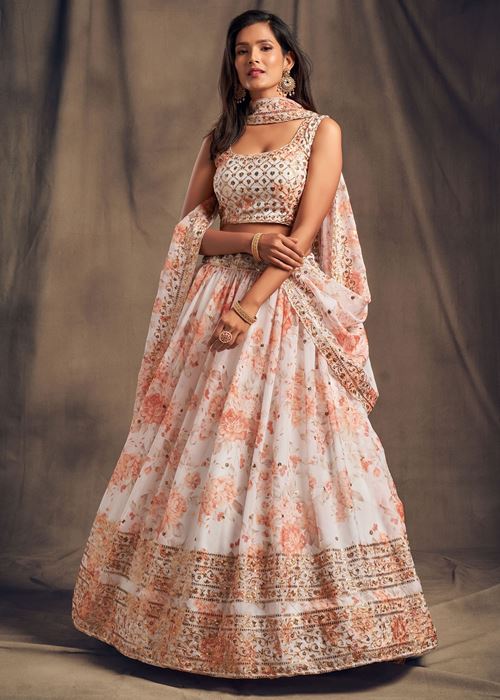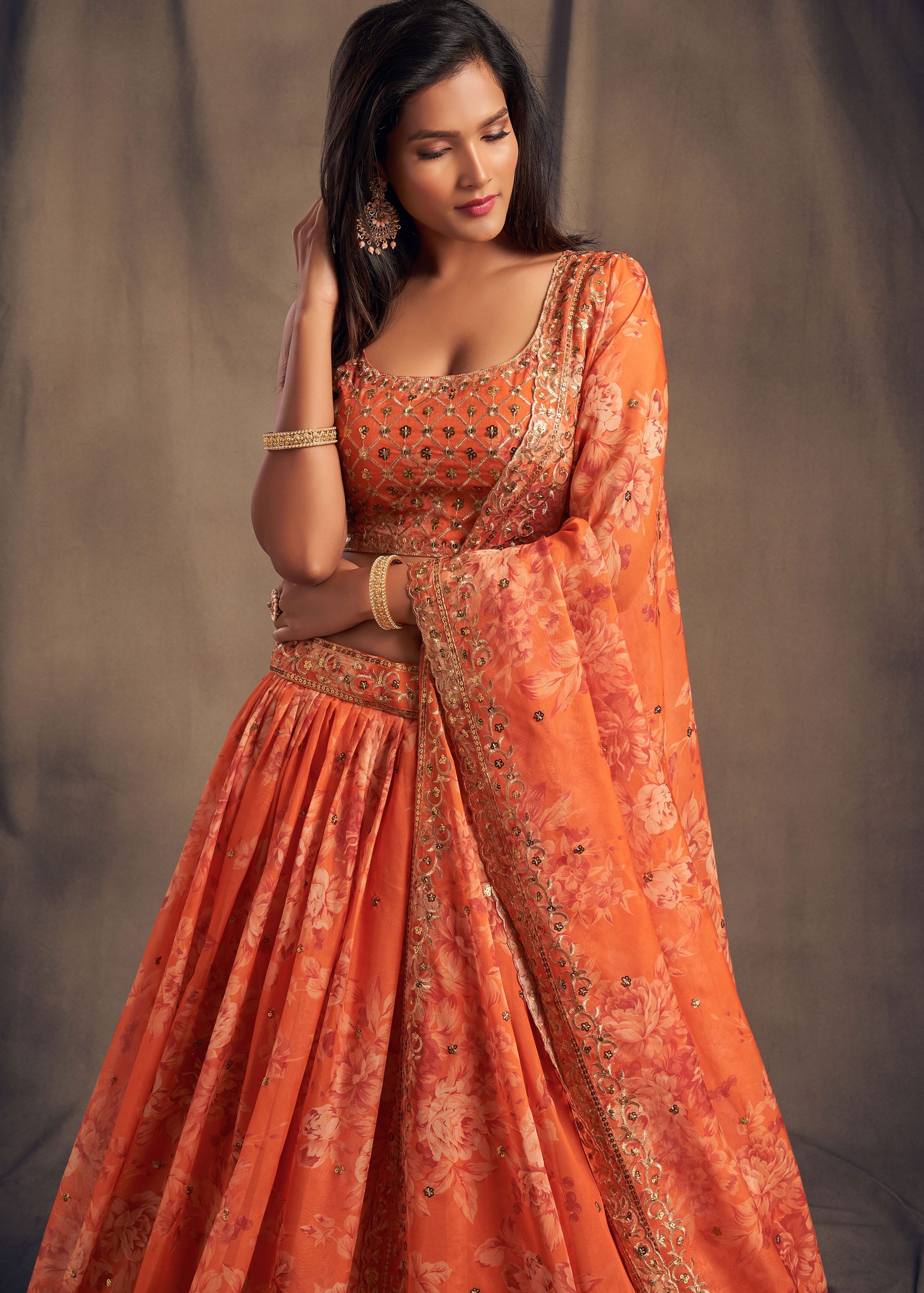 Orange Organza Lehenga Choli With Sequins Zari Embroidery Work