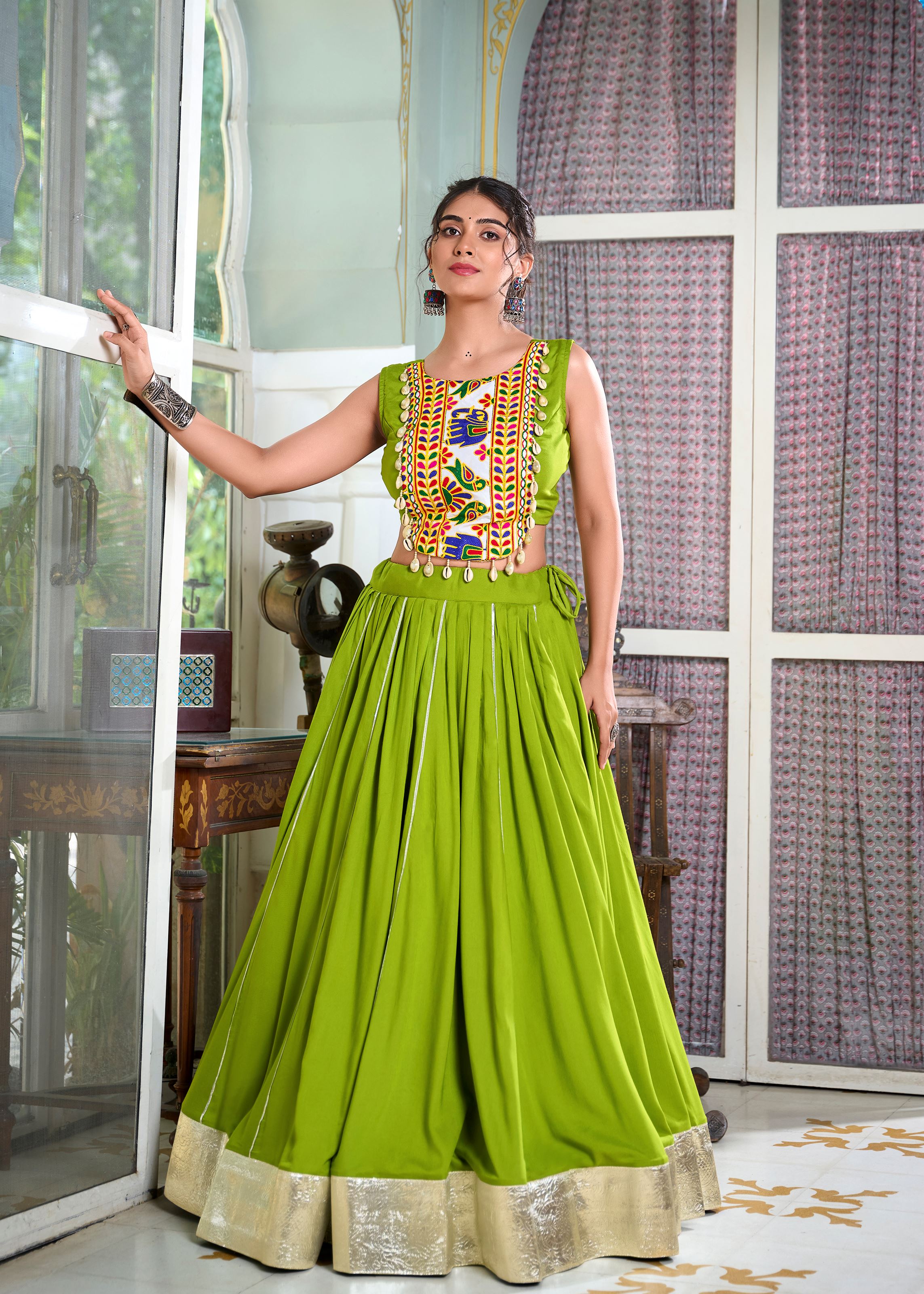Parrot Classic Rayon Lehenga Choli with Gota Patti and Lace Accents