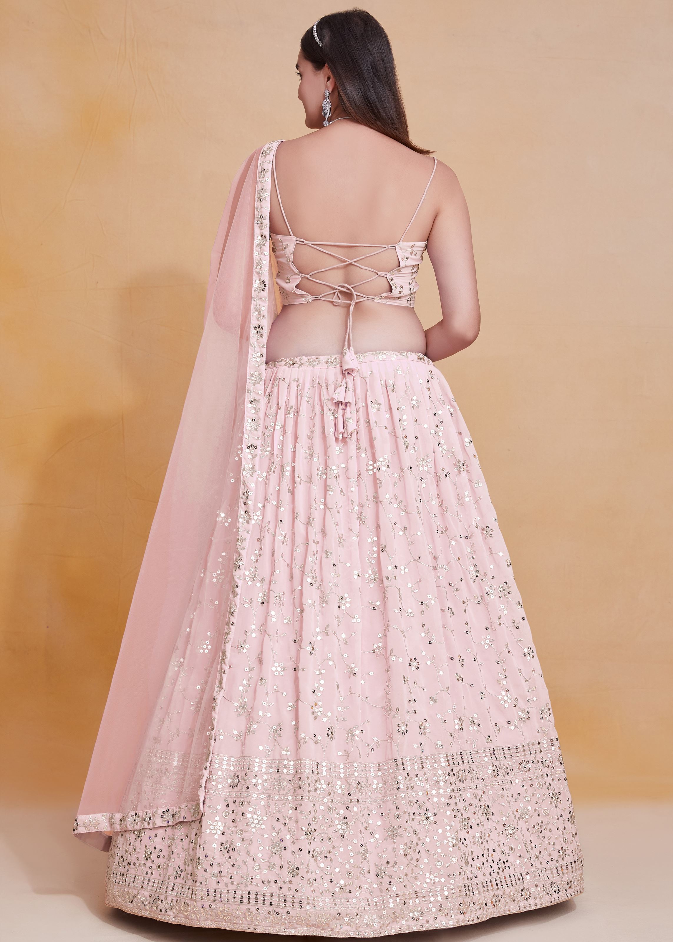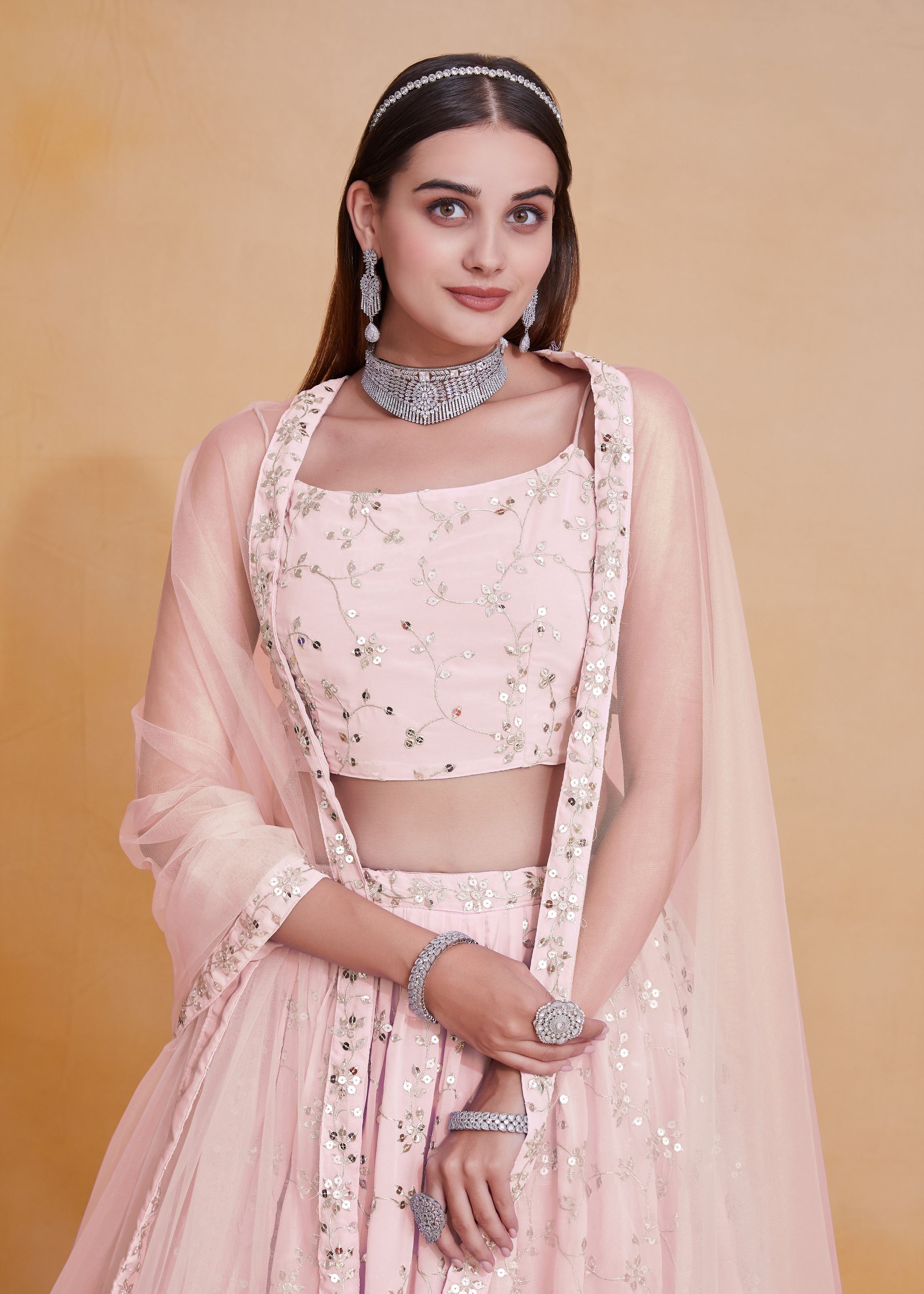 Peach Georgette Sequence Embroidery Work Lehenga Choli