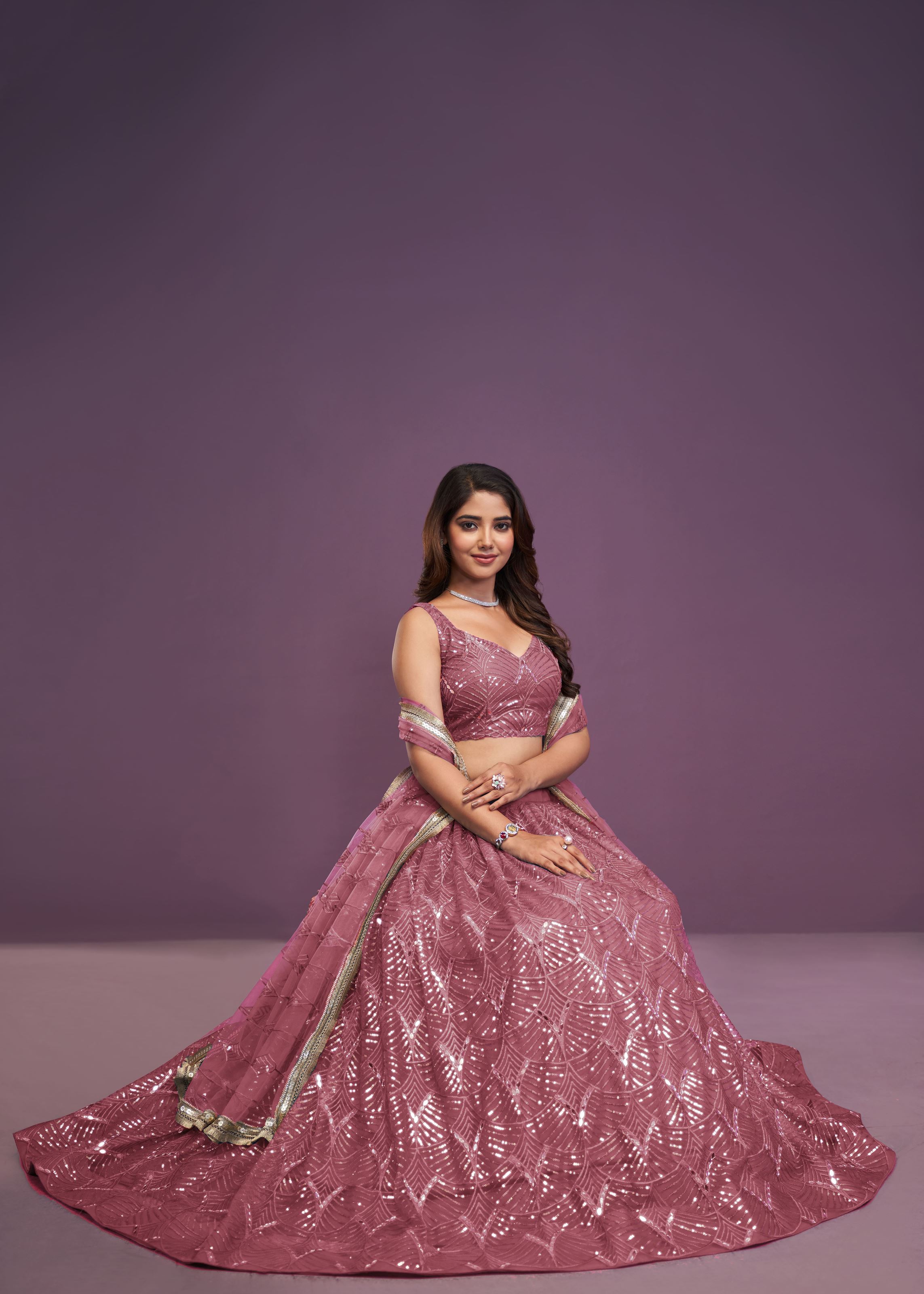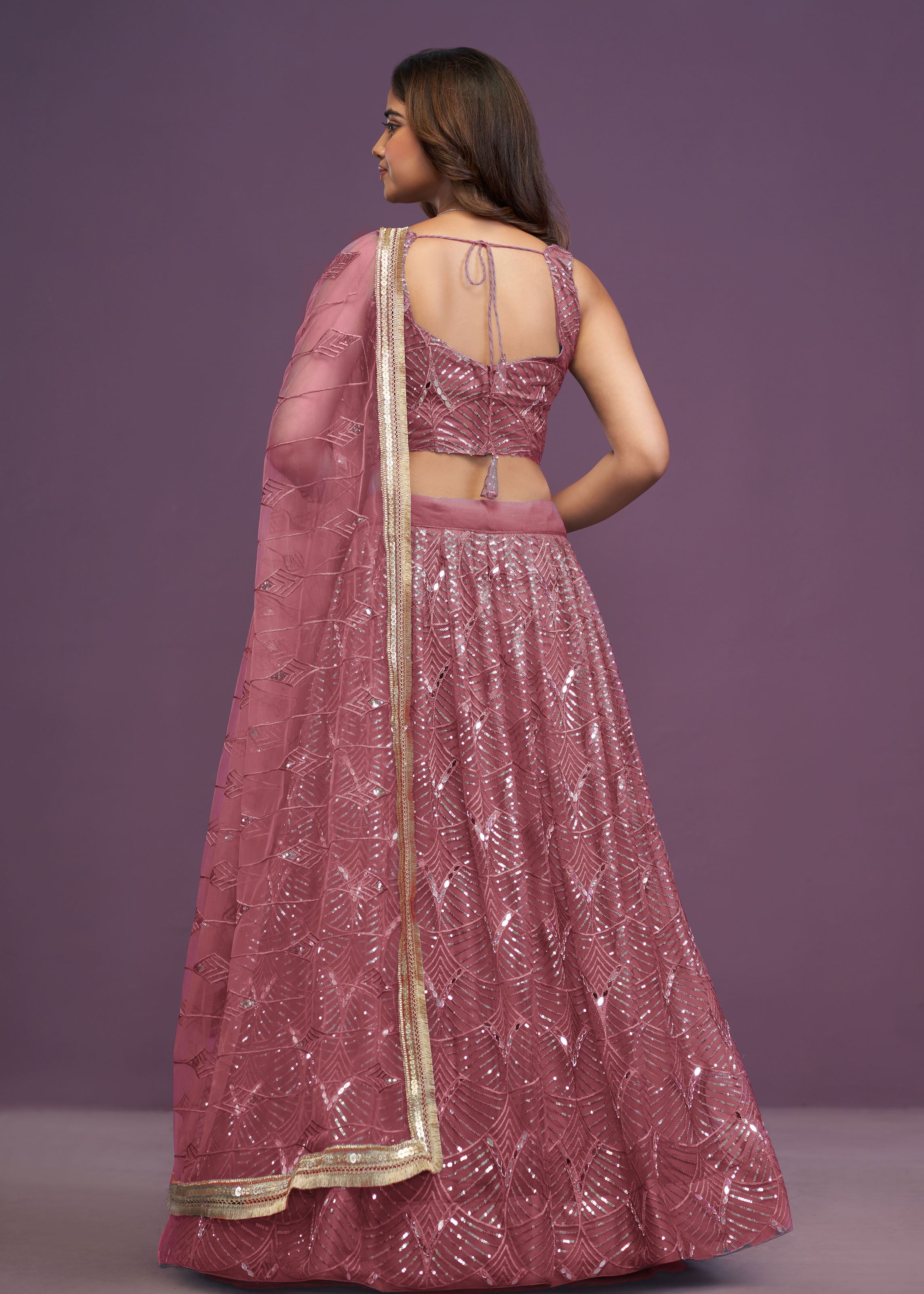 Pink Butterfly Net Real Mirror With Sequence Embroidery Work Lehenga Choli