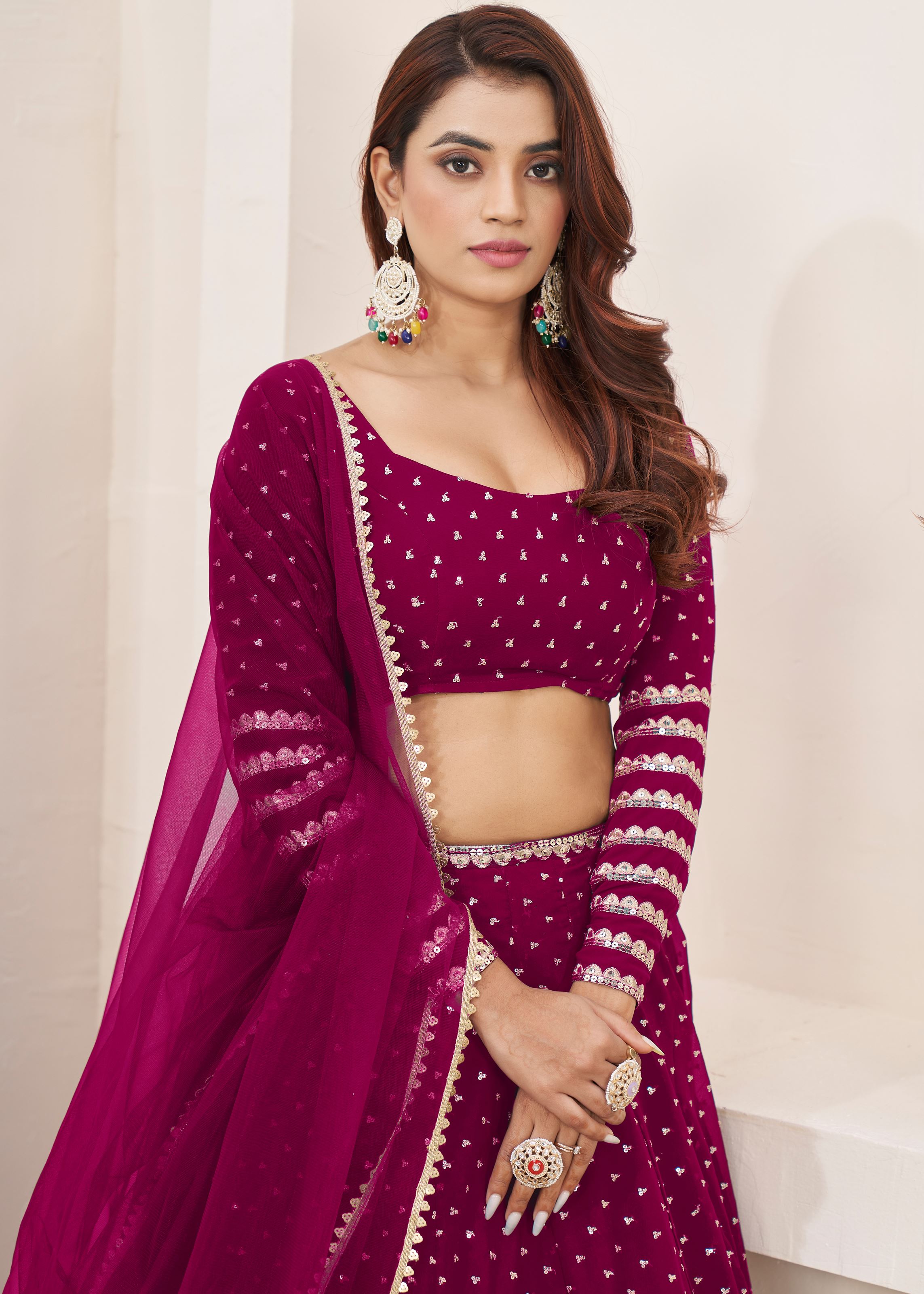 Pink Georgette Lehenga Choli With Sequins Zari Embroidered Work --Size Unstitched Available Up To 42 Size