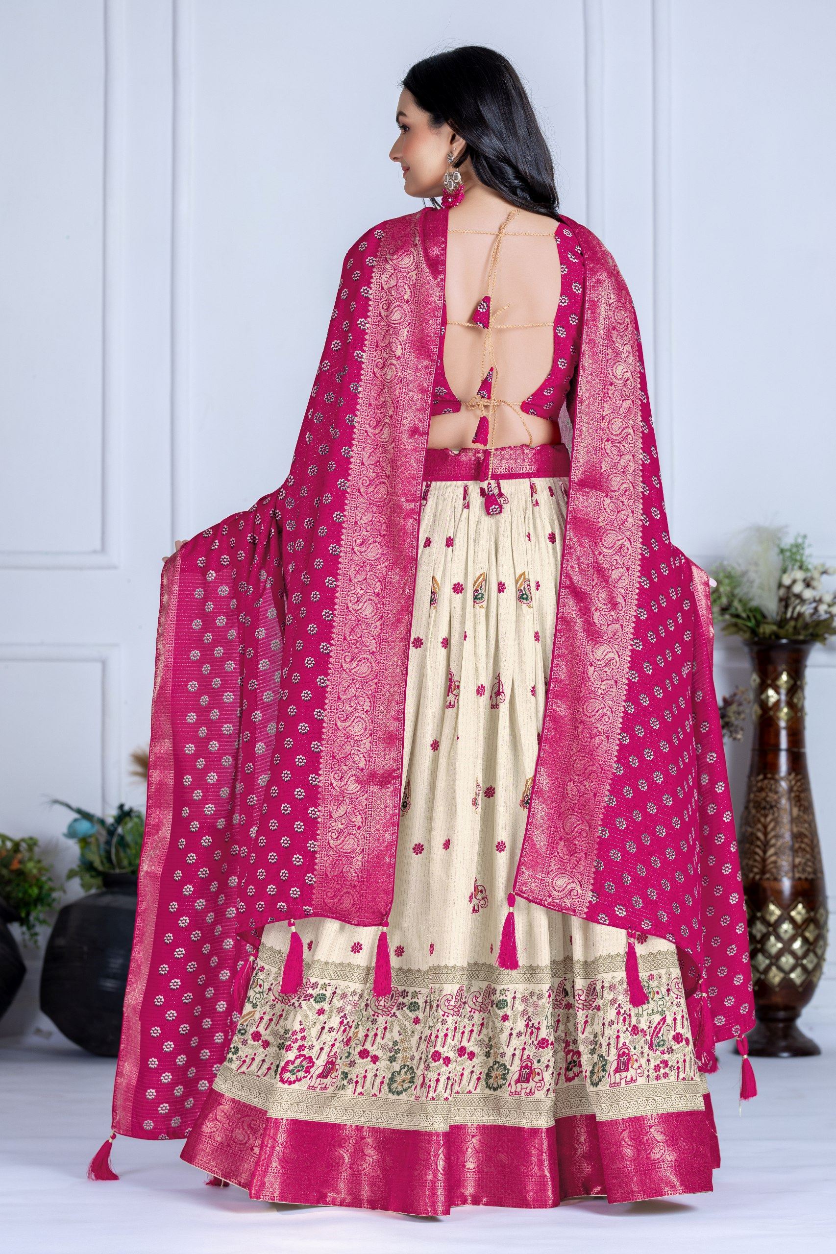 Pink Lehenga Choli with Jacquard Jari Lining and Printed Detailing