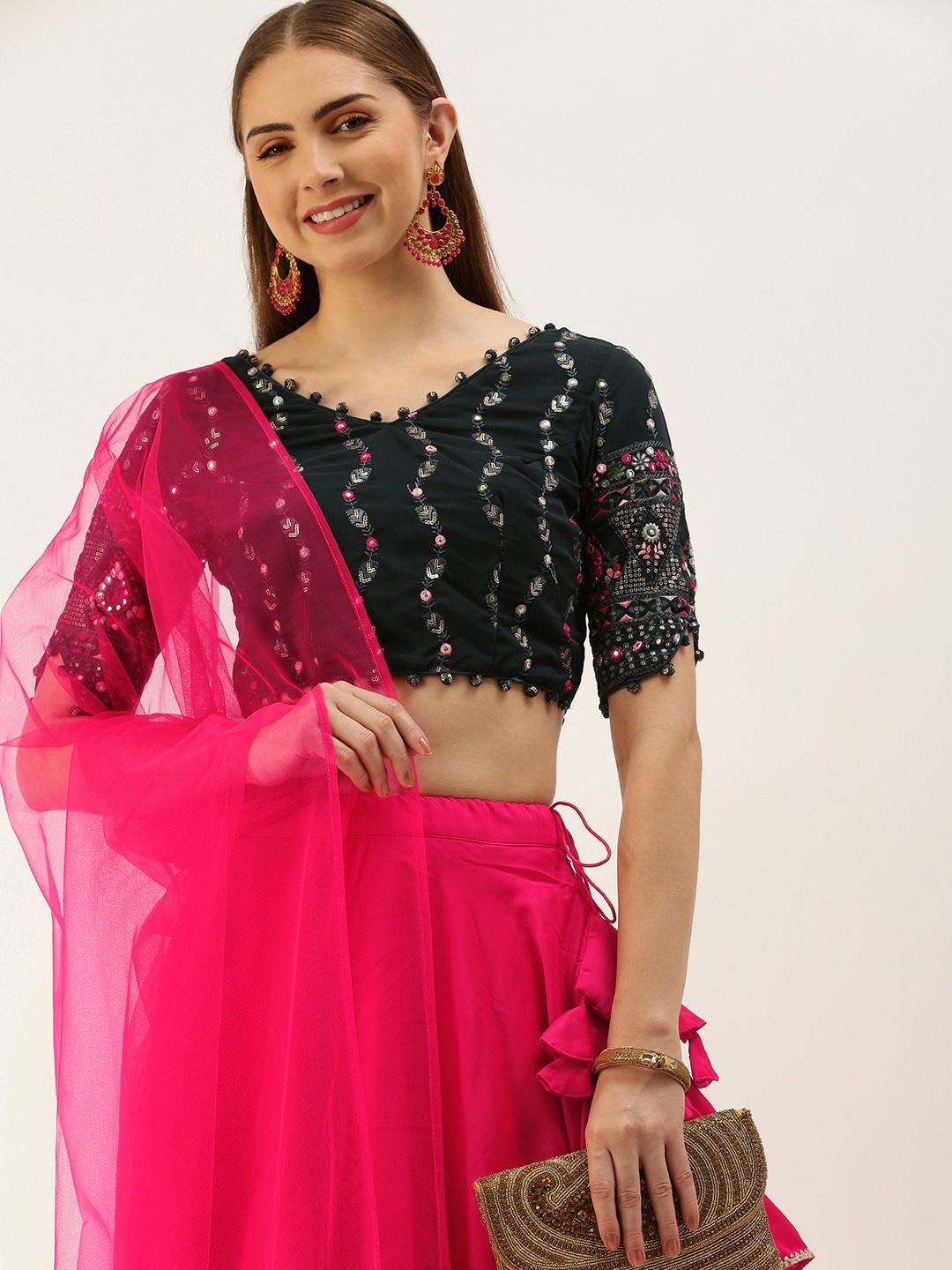 Pink Lehenga Choli with Thread Embroidery With Sequins Work