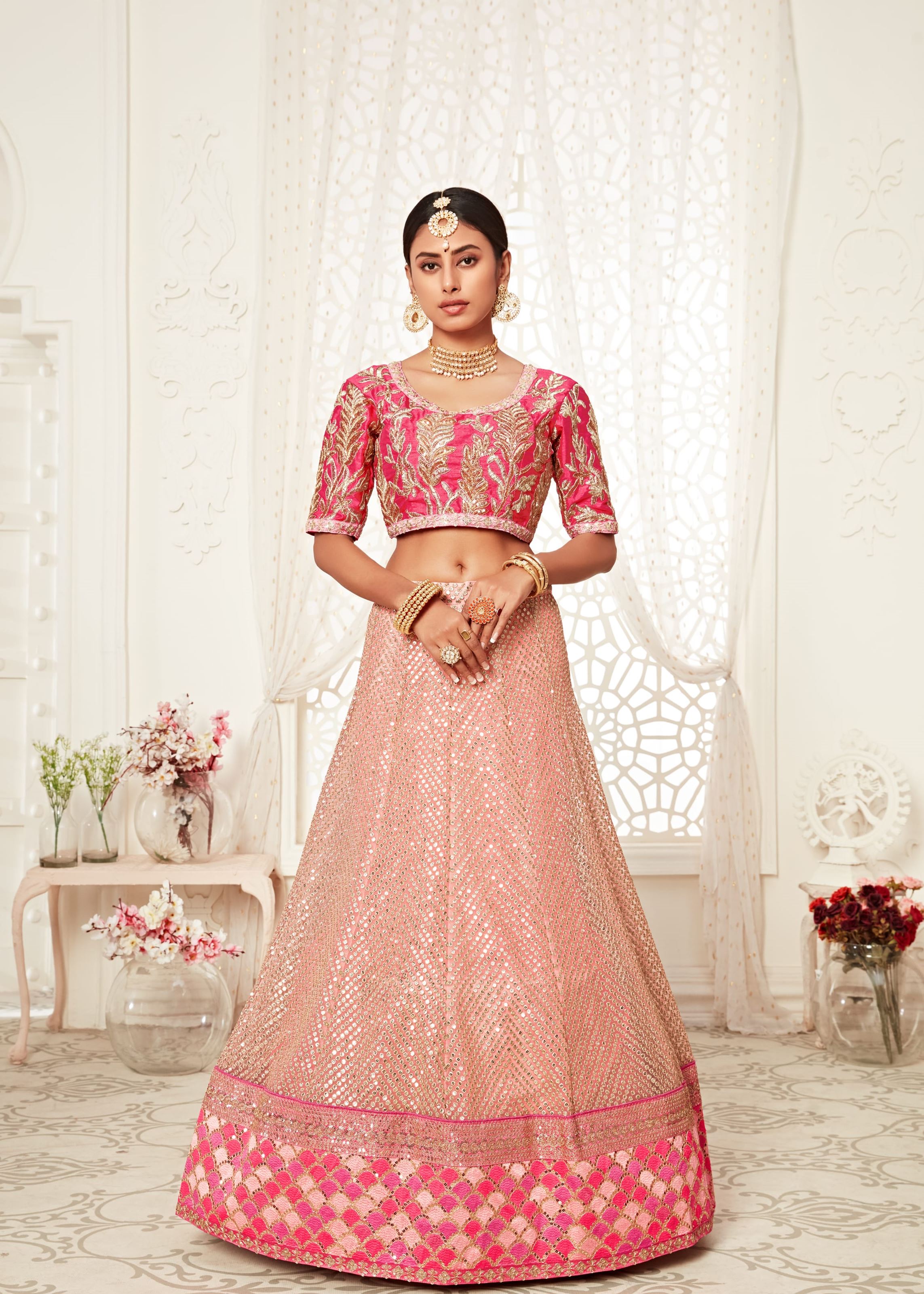 Pink Soft Net Lehenga Choli With Thread, Zari, Dori And Sequins Embroidery Work ----- SIZE (SEMI STITCHED) AVAILABLE UP TO 42 BUST AND WAIST