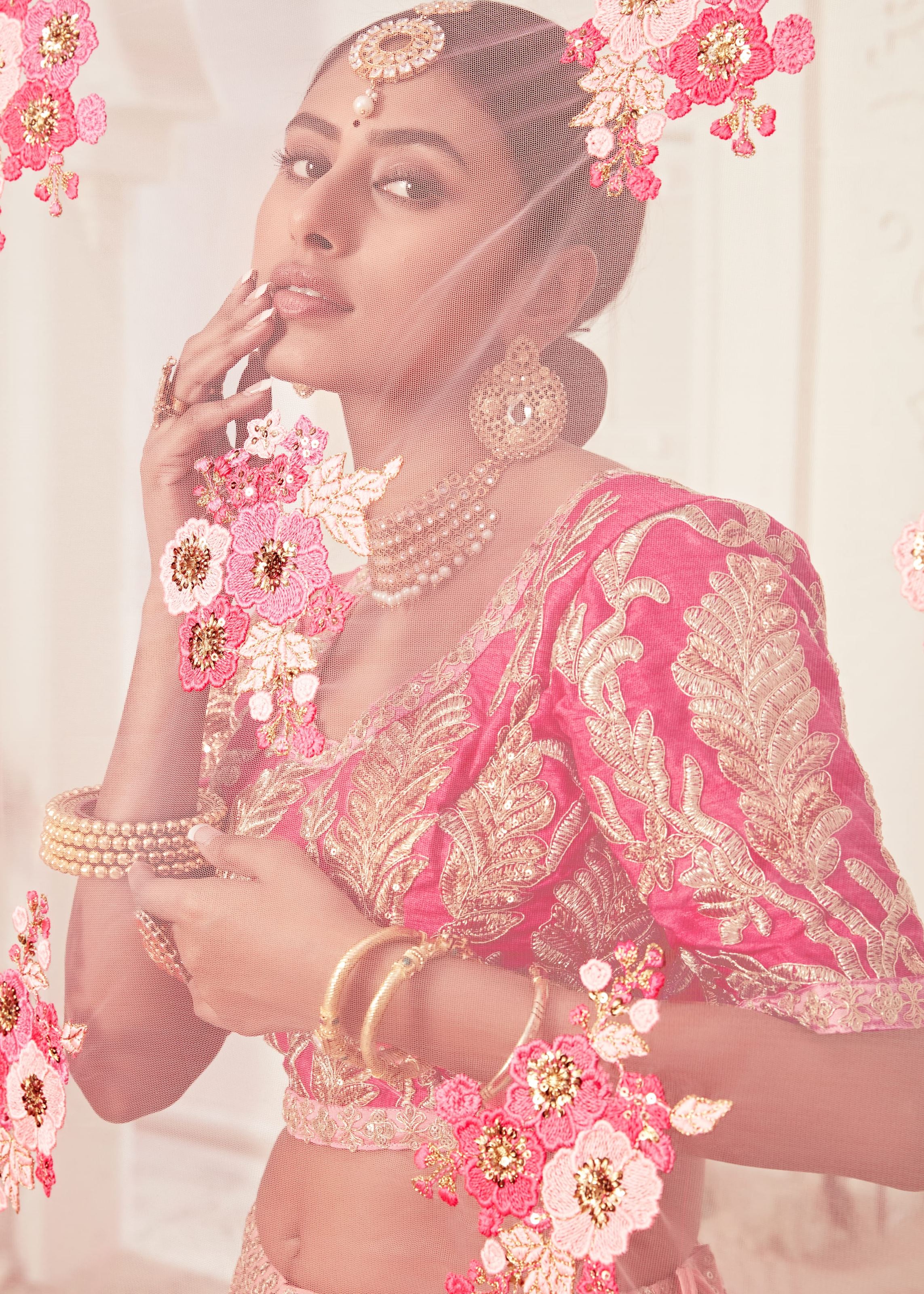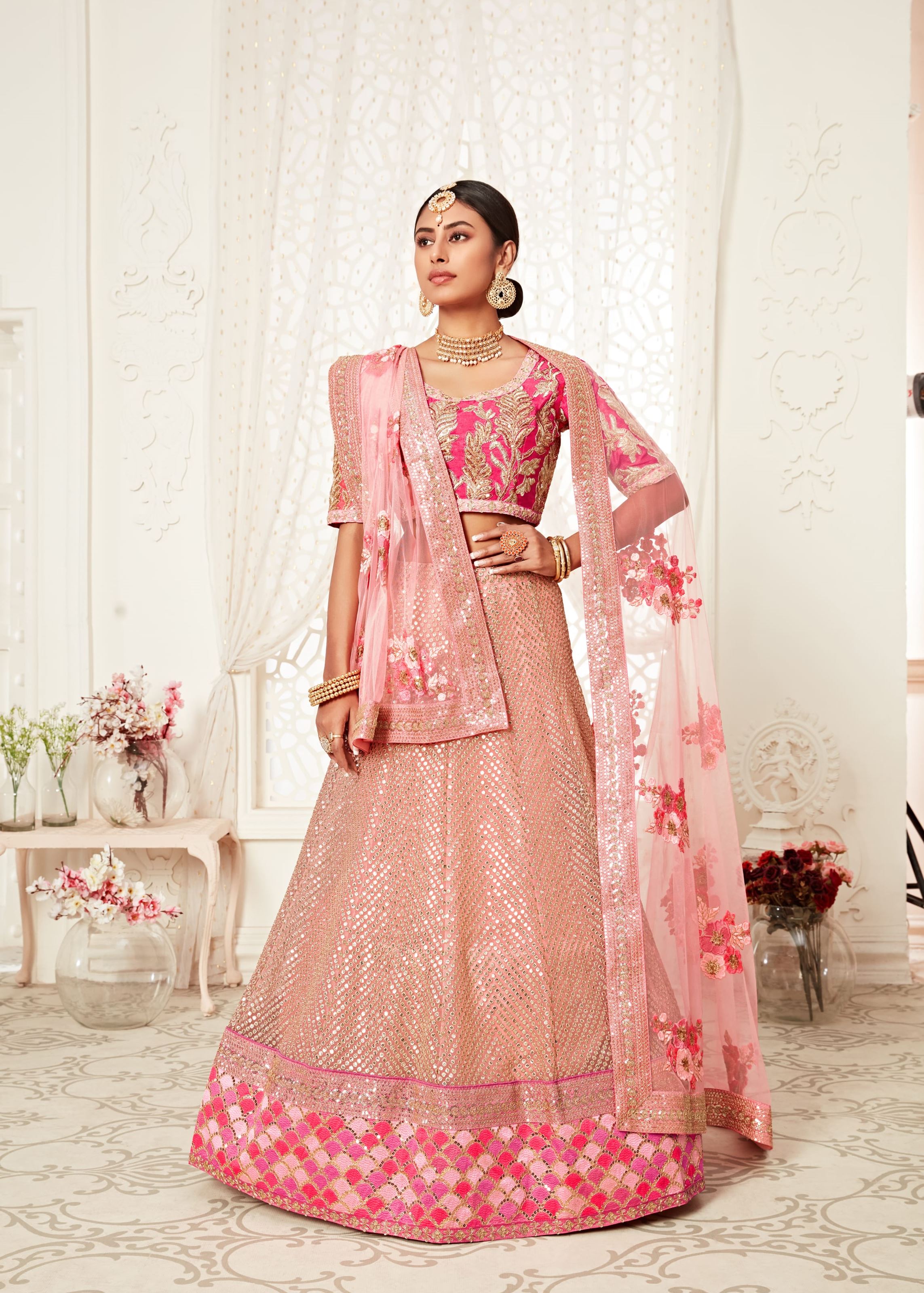 Pink Lehenga Choli With Thread, Zari, Dori And Sequins Embroidery Work