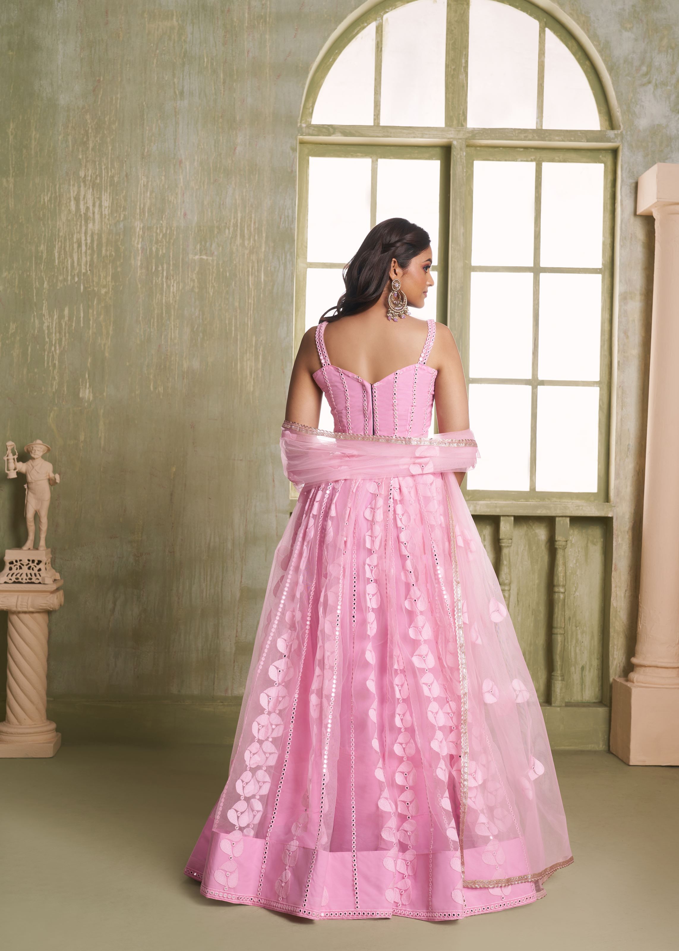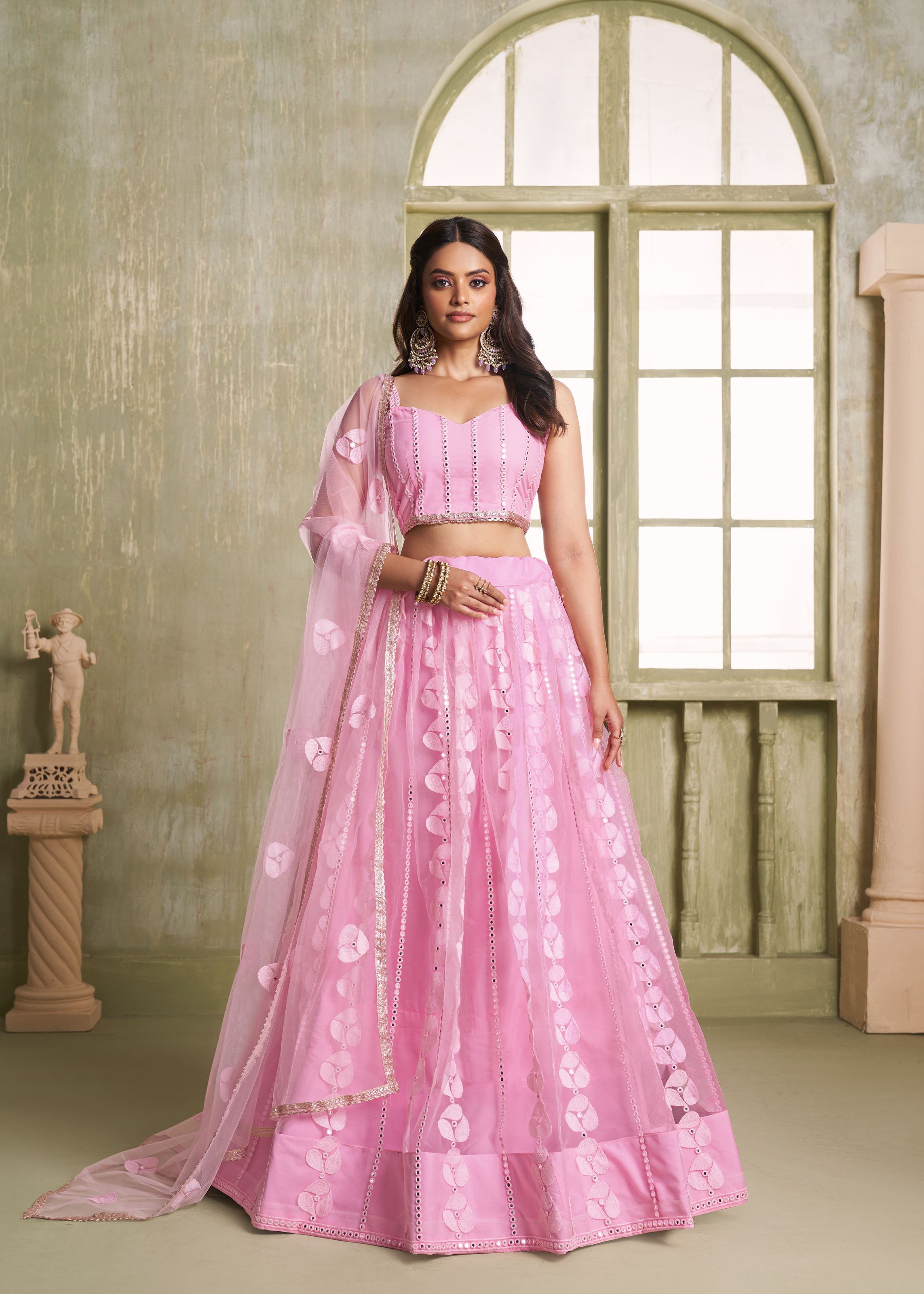 Pink Net Lehenga with Readymade Lace and Tone Zari Work