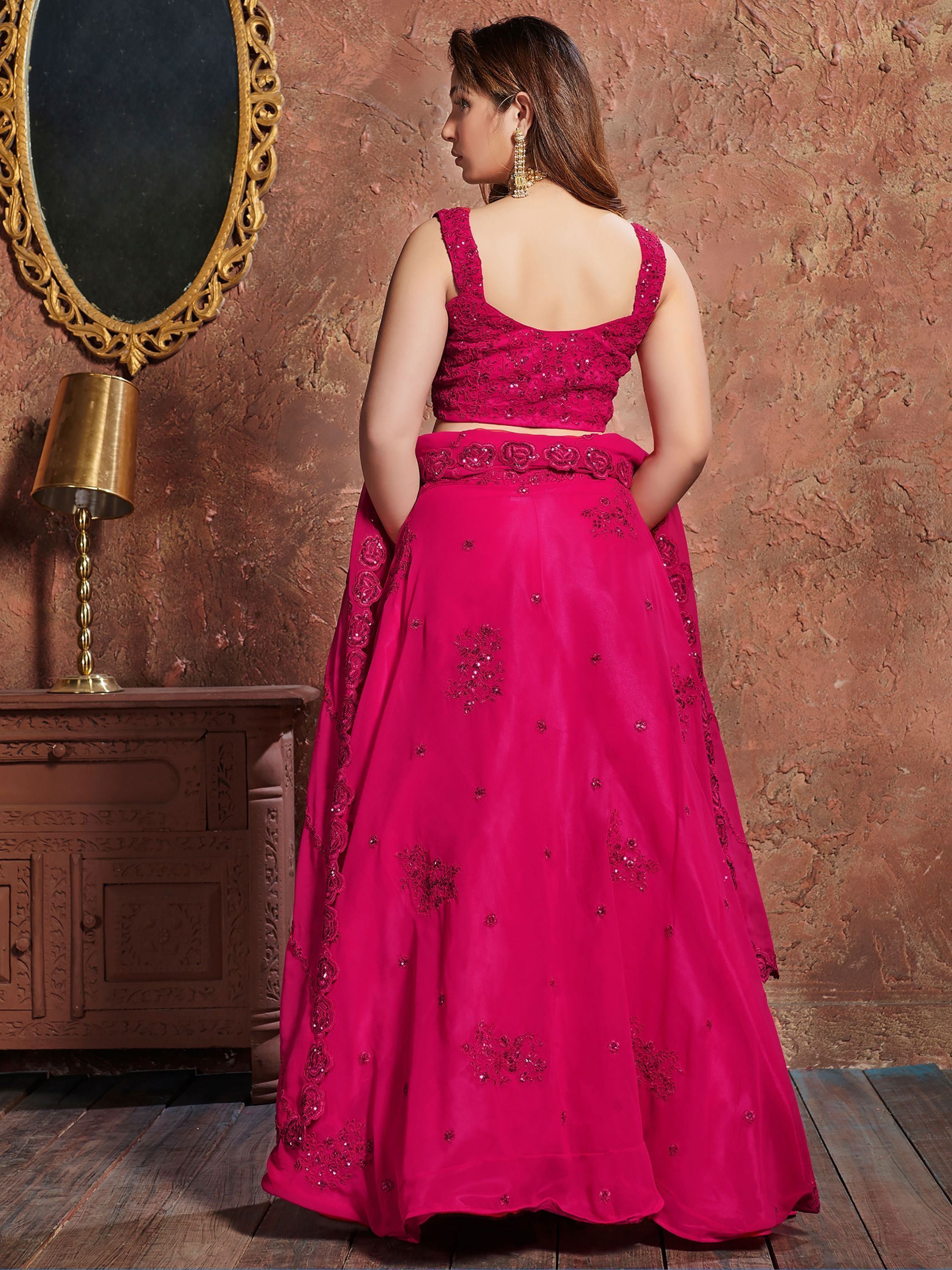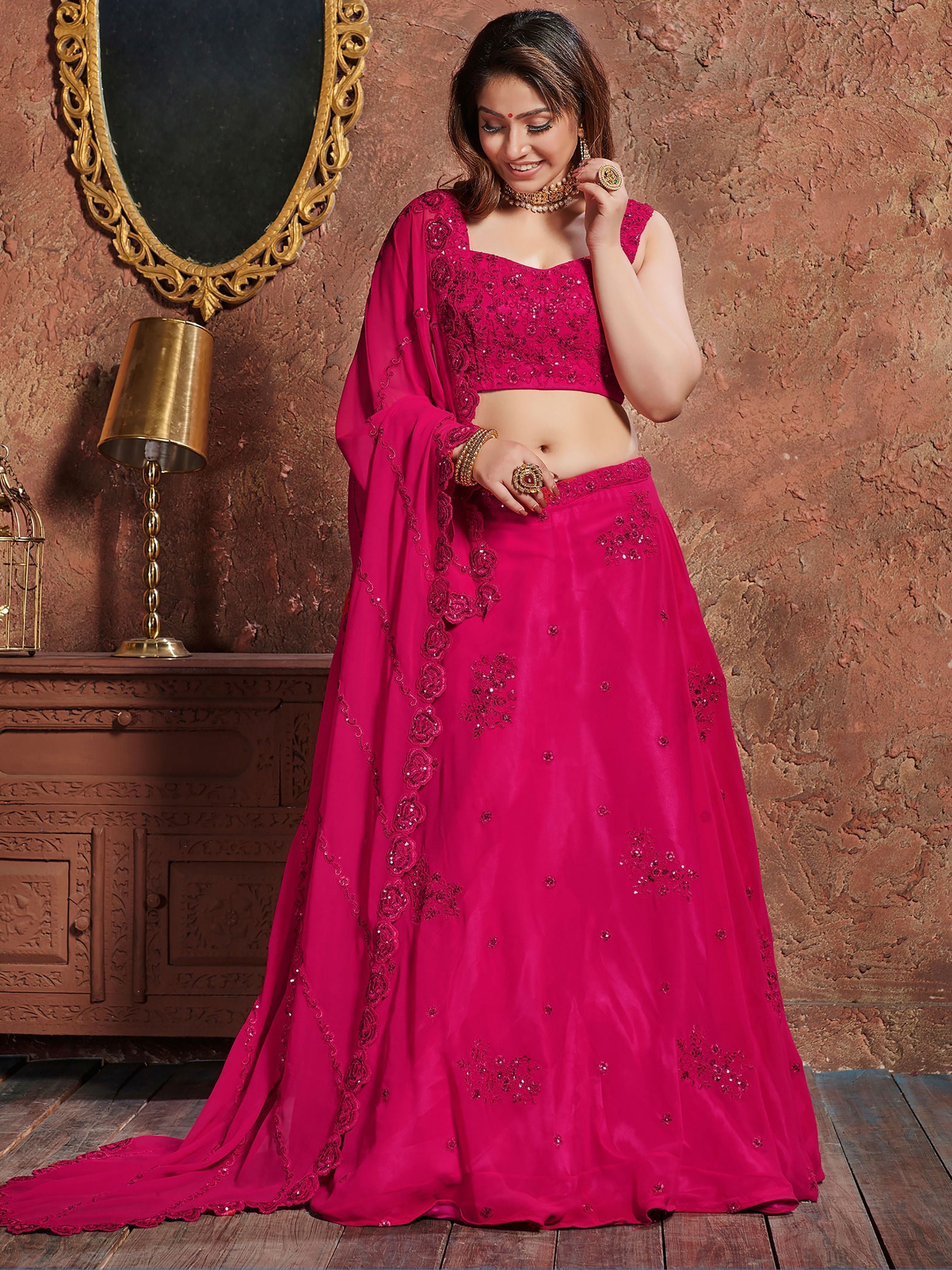 Pink Sequins Georgette Wedding Lehenga Choli With Dupatta