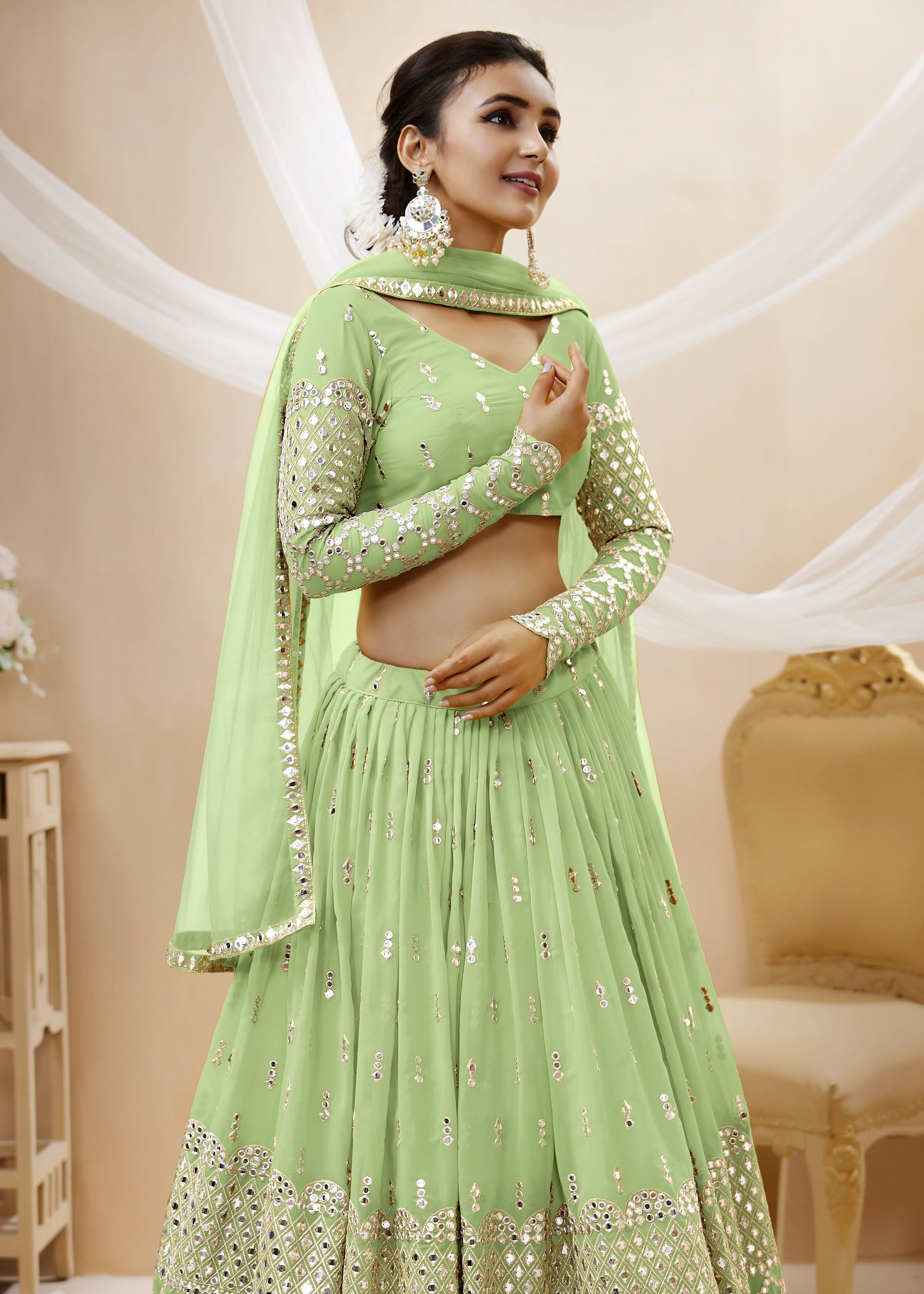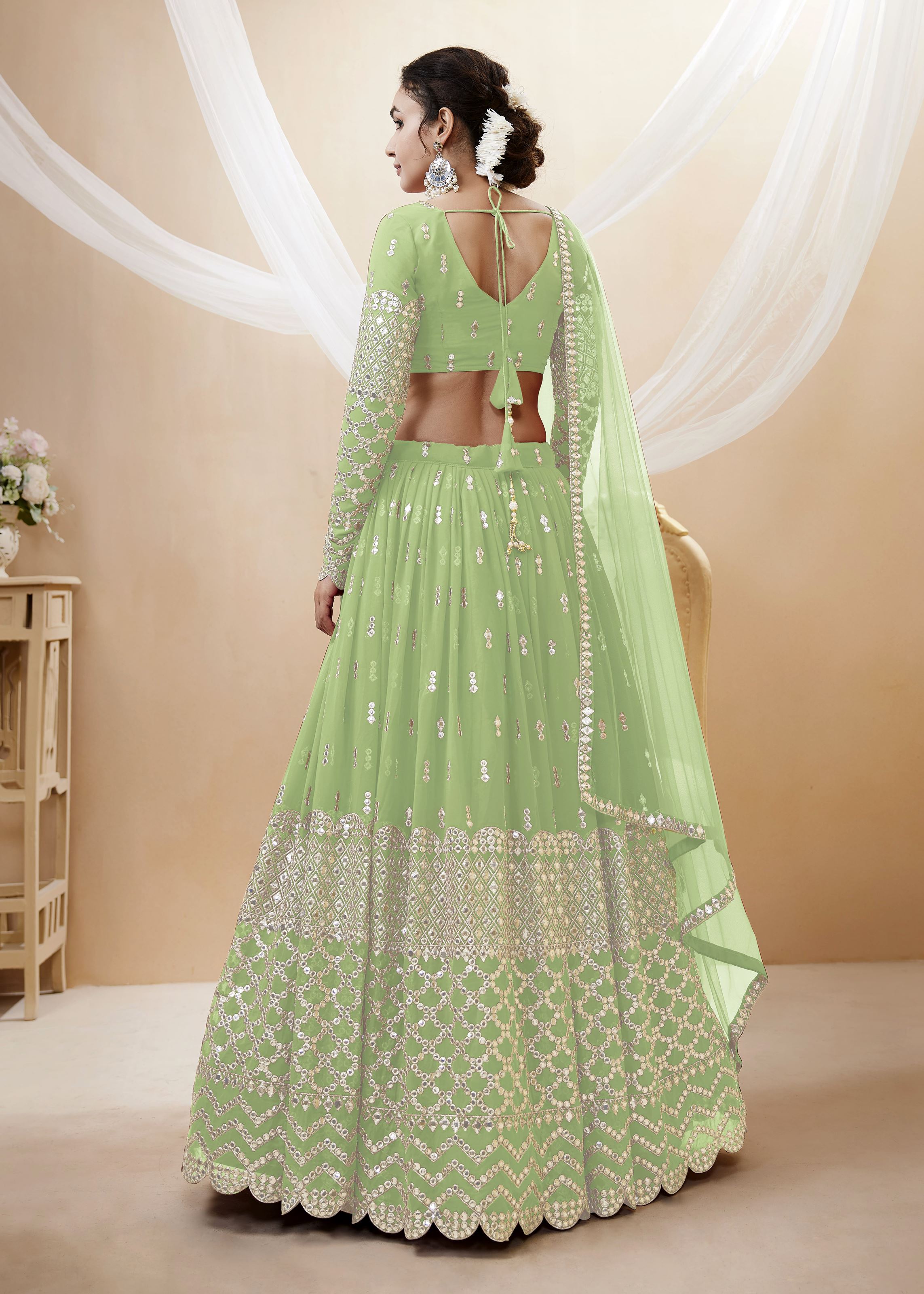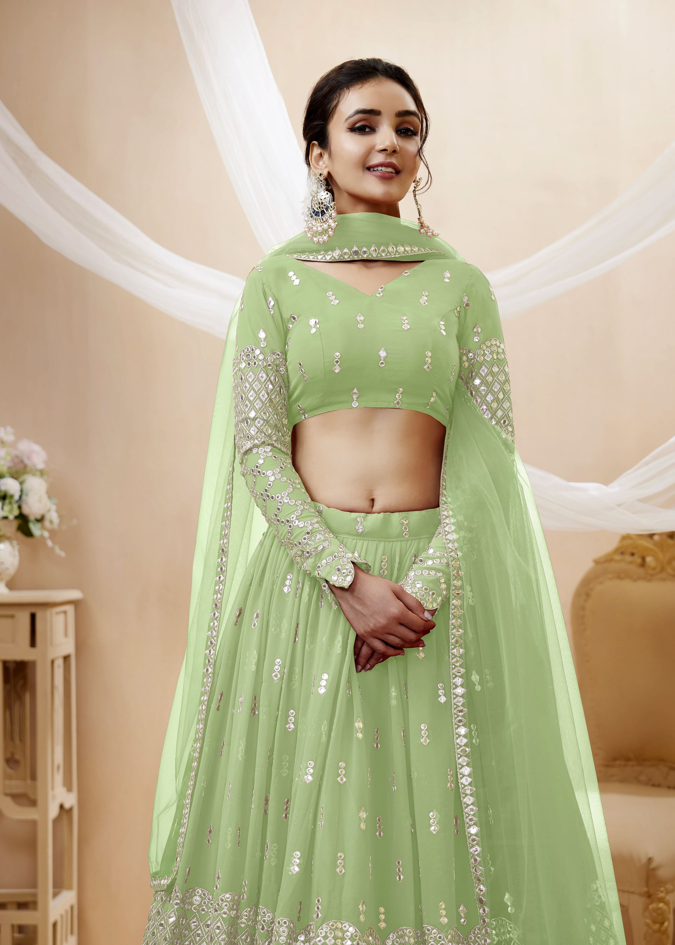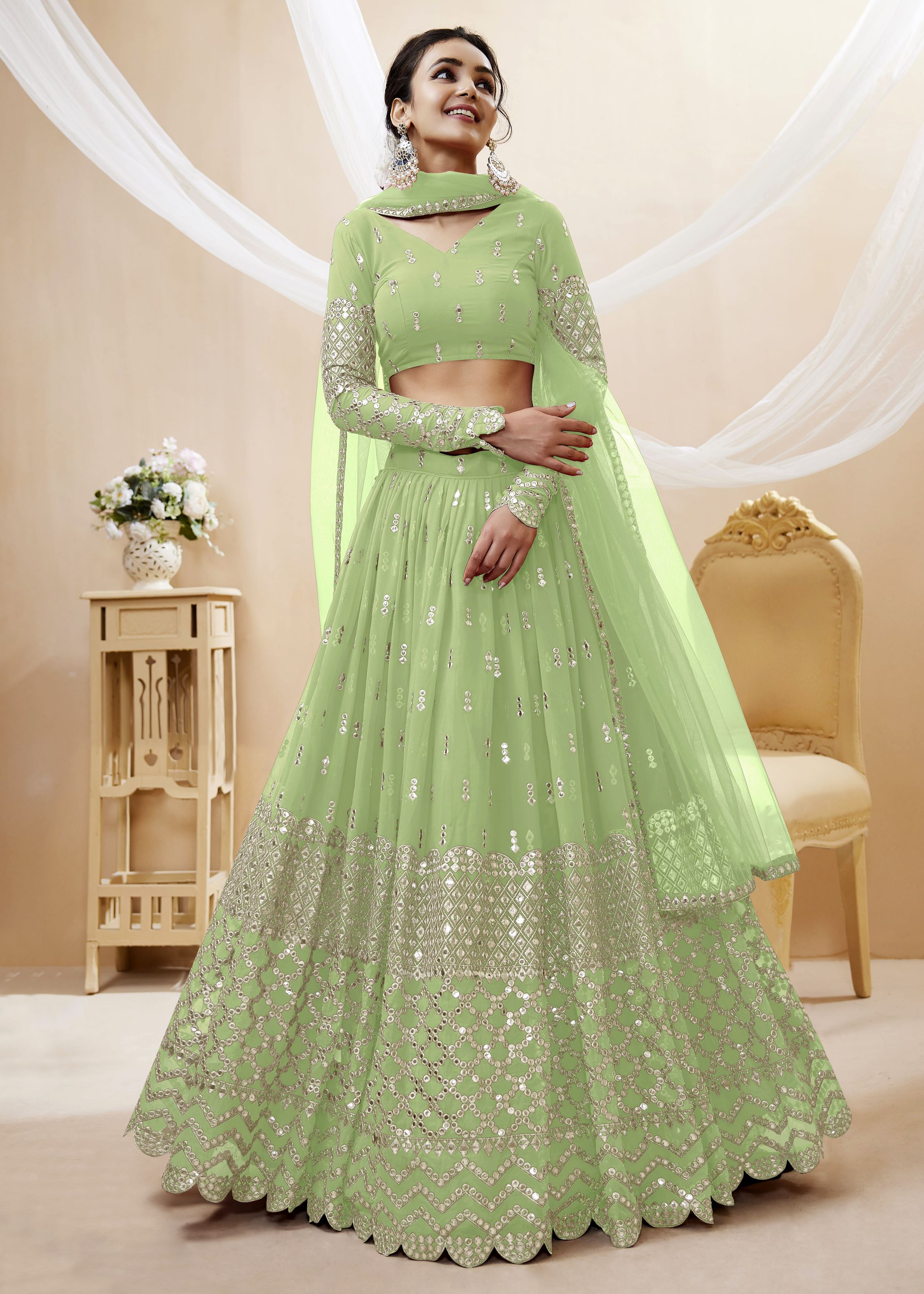 Pista Georgette Lehenga Choli With Sequins Zari Embroidered Work