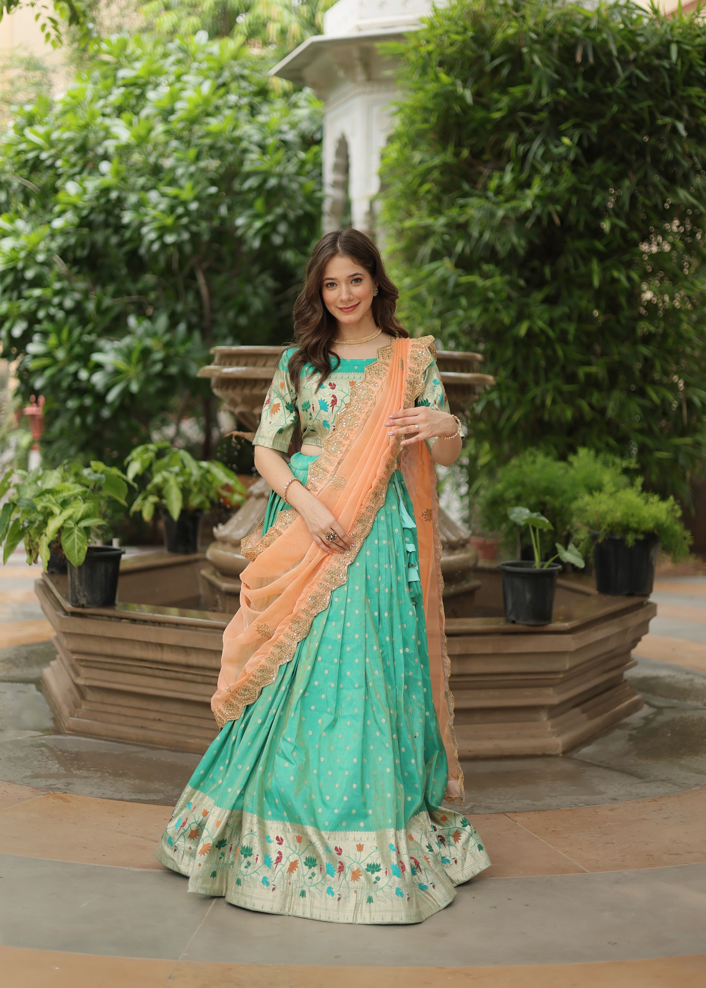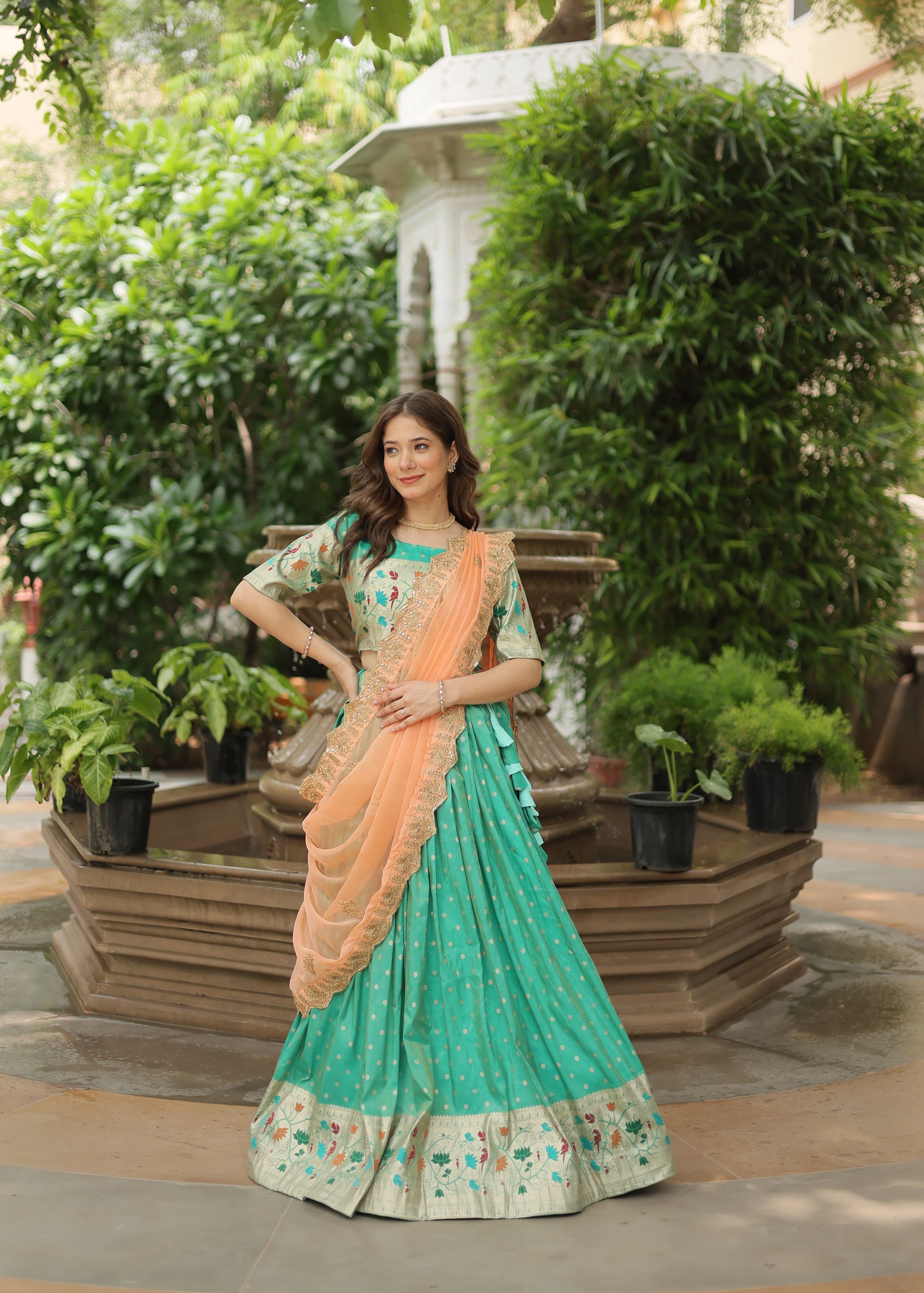 Pista Lehenga Choli with Heavy Meena Weaving Work