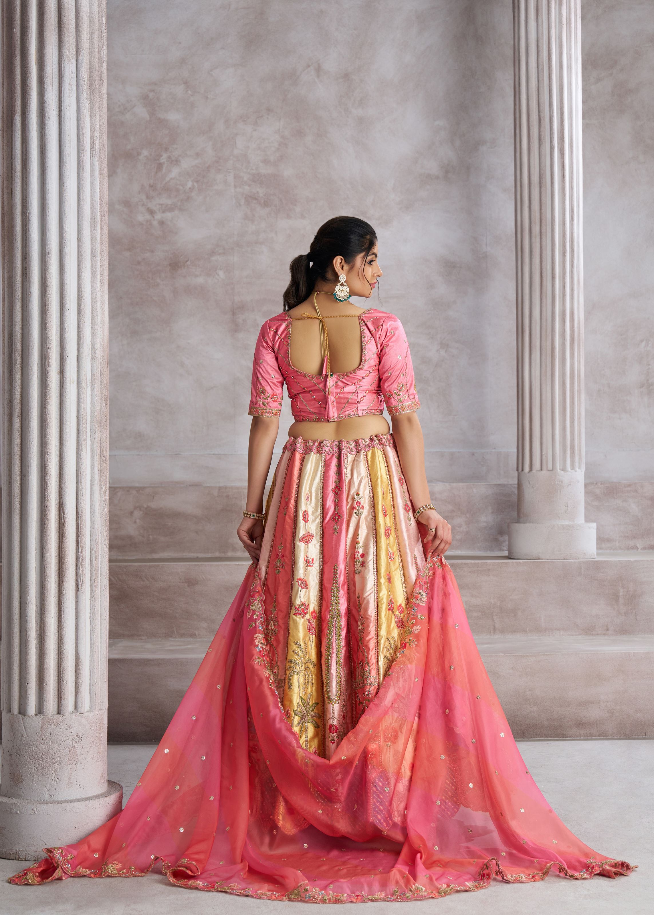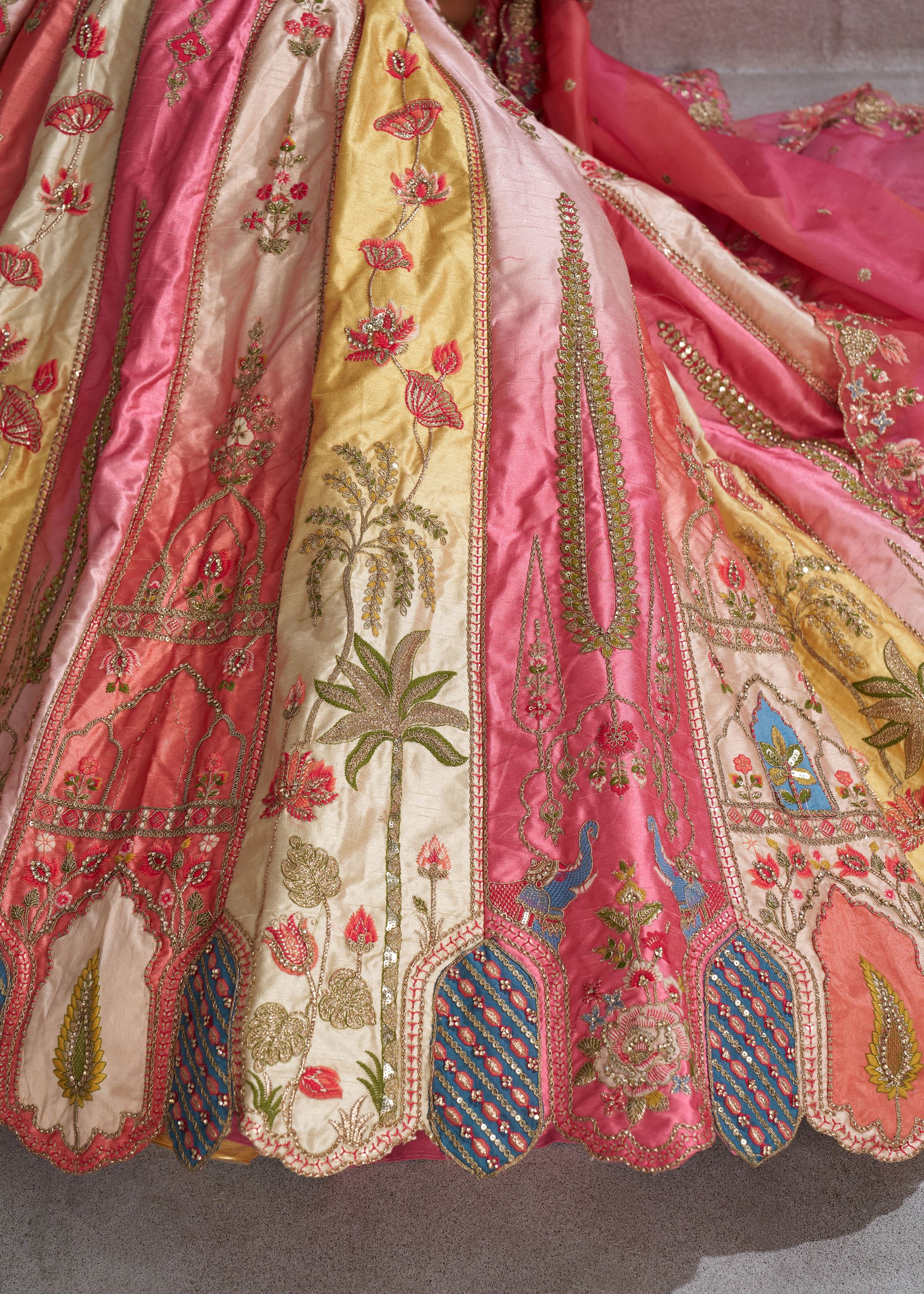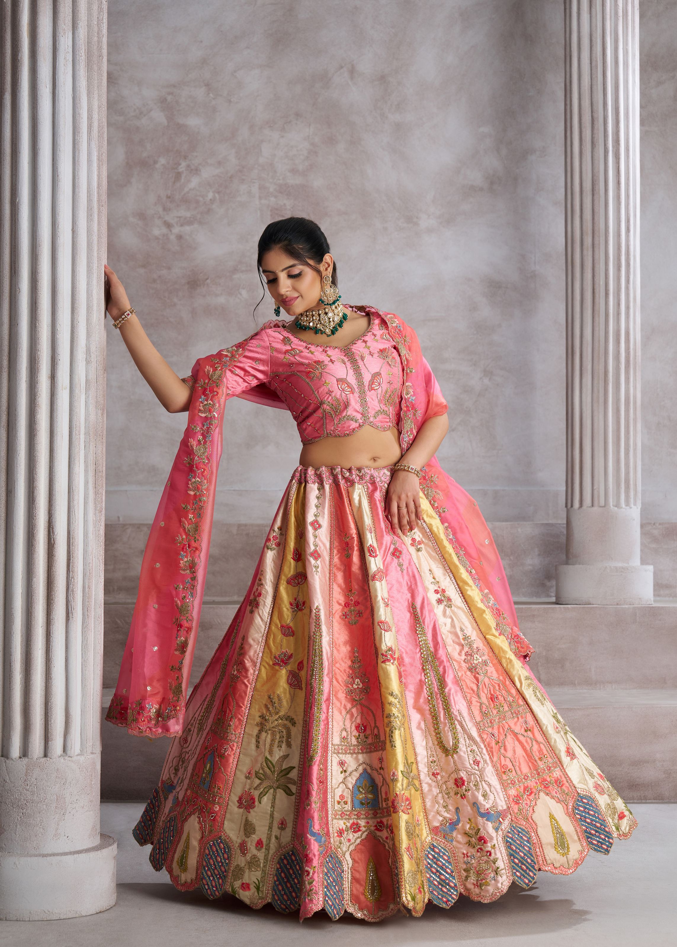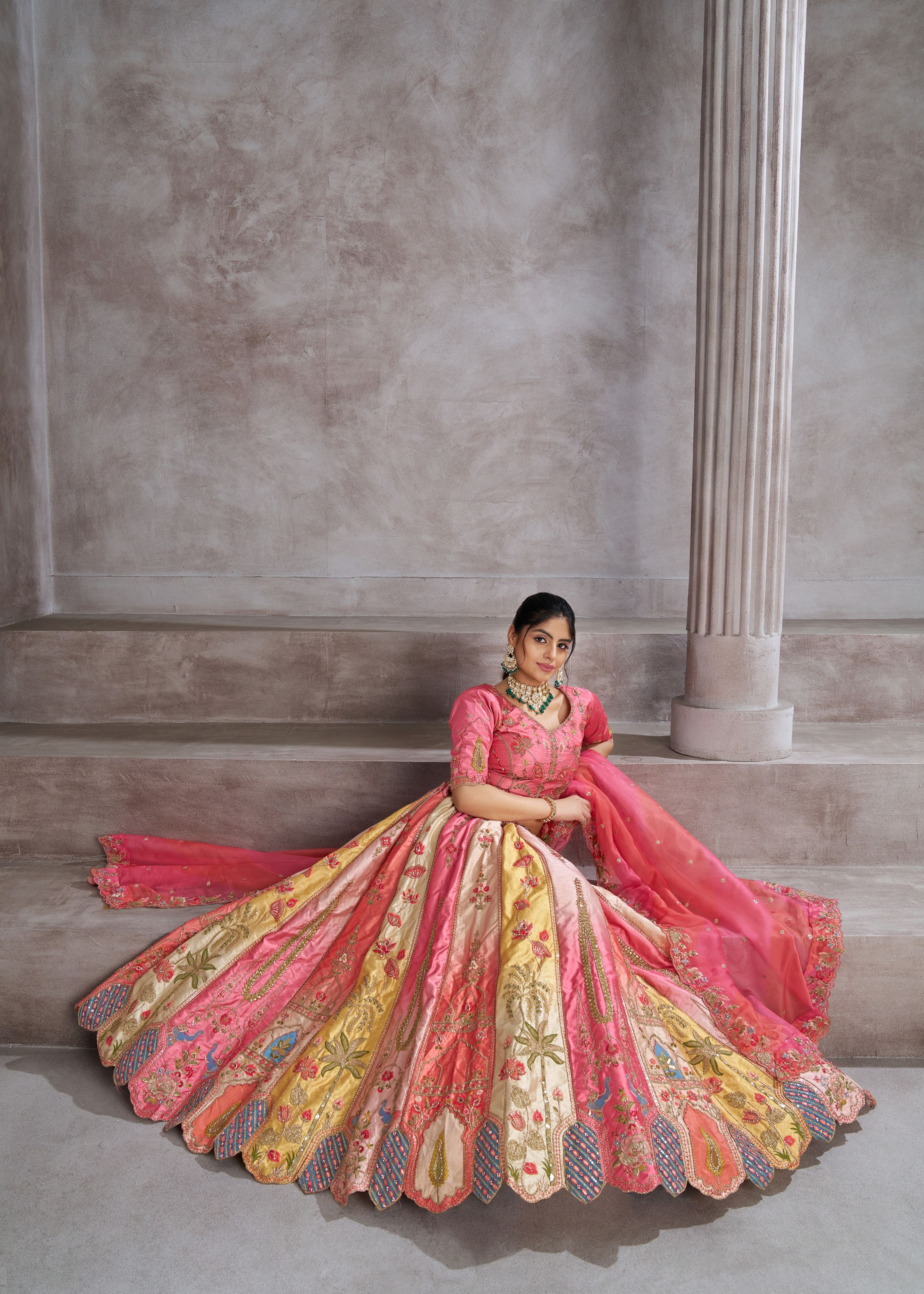 Pretty Pink Silk Intricate Paisley Motifs Traditional Embroidered Wedding Lehenga
