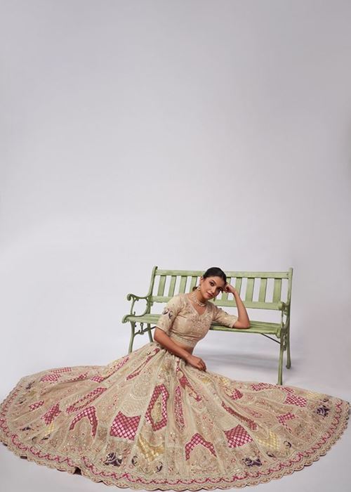 Pretty Pink Silk Intricate Paisley Motifs Traditional Embroidered Wedding Lehenga