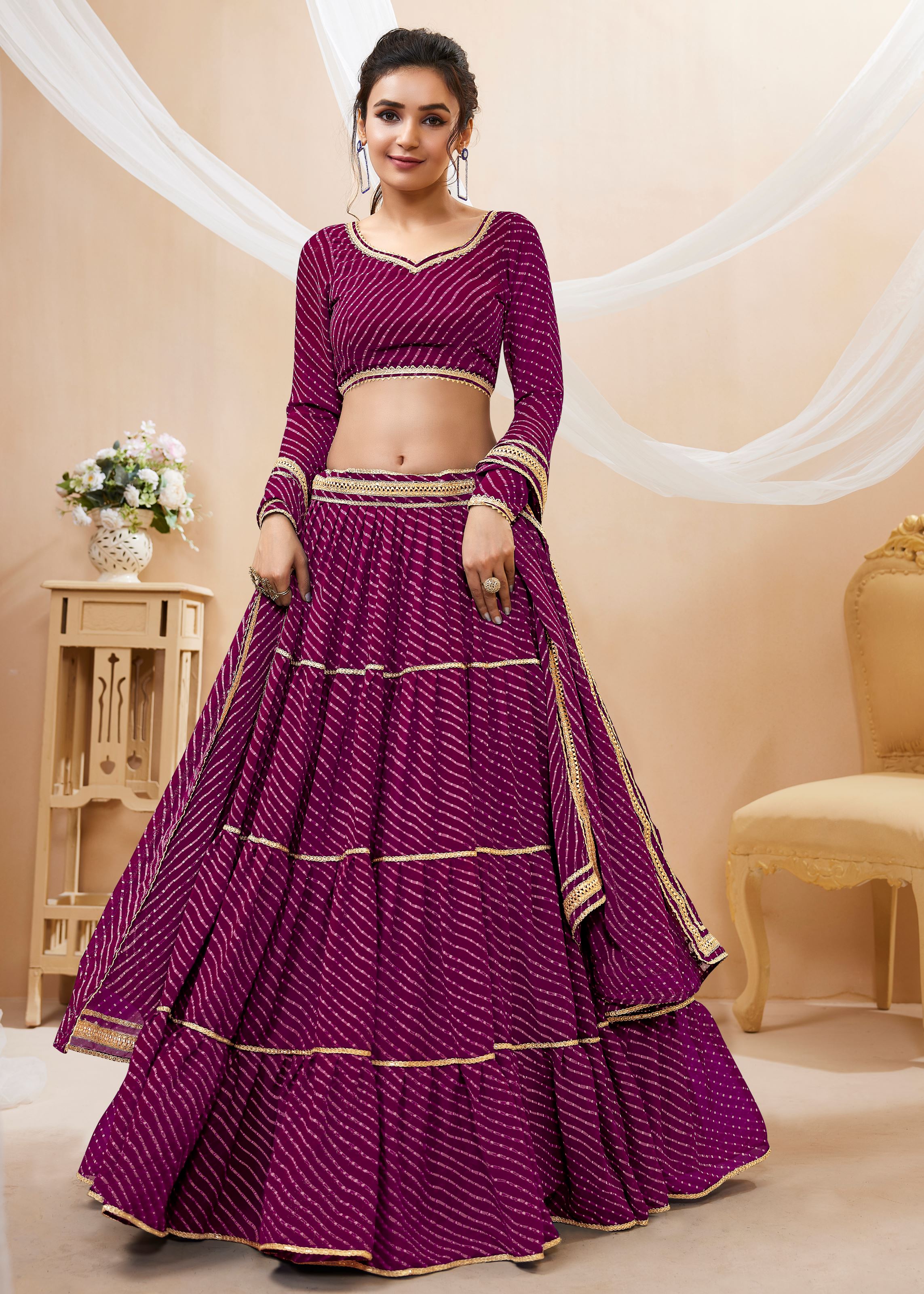 Purple Georgette Lehenga Choli With Georgette Leheriya Printed with lace all over work