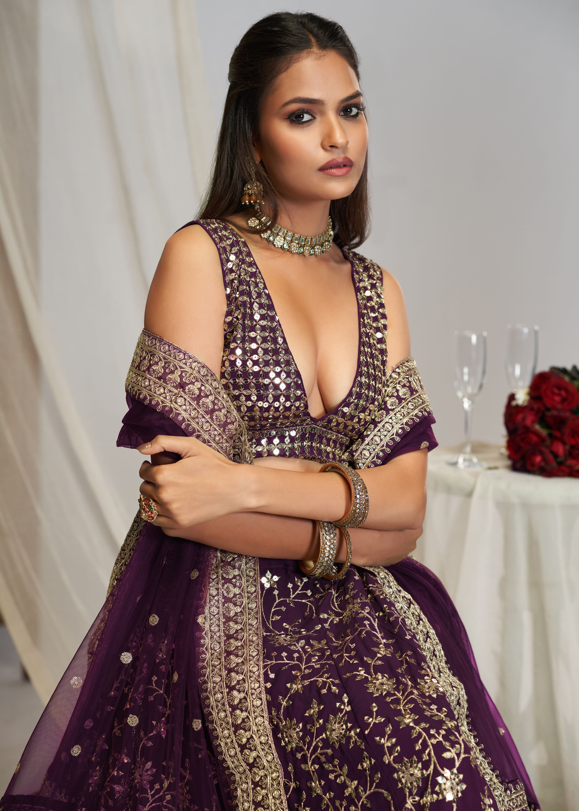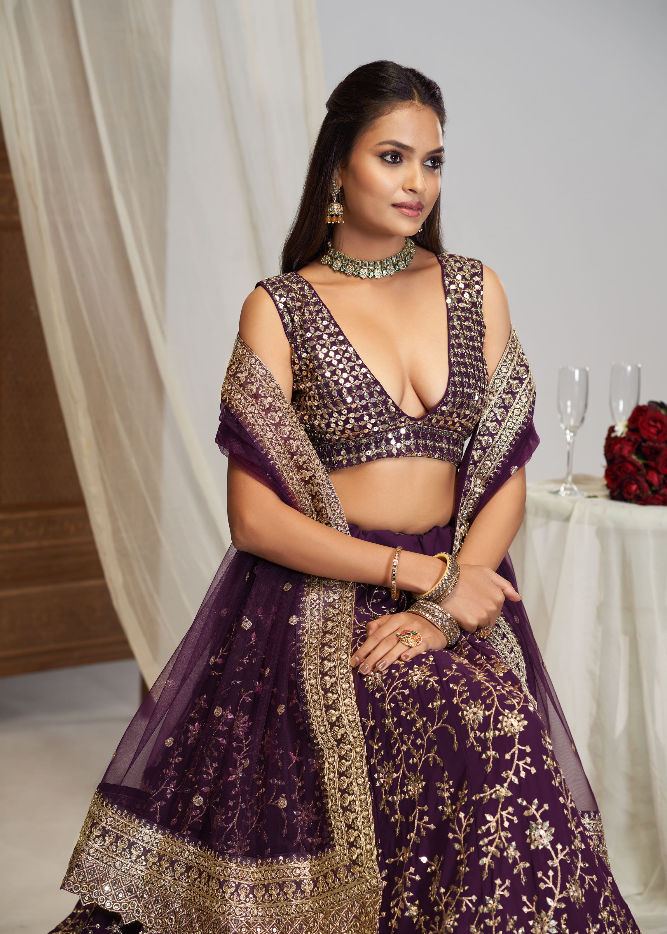 Purple Georgette Sequence Embroidery Work Lehengacholi