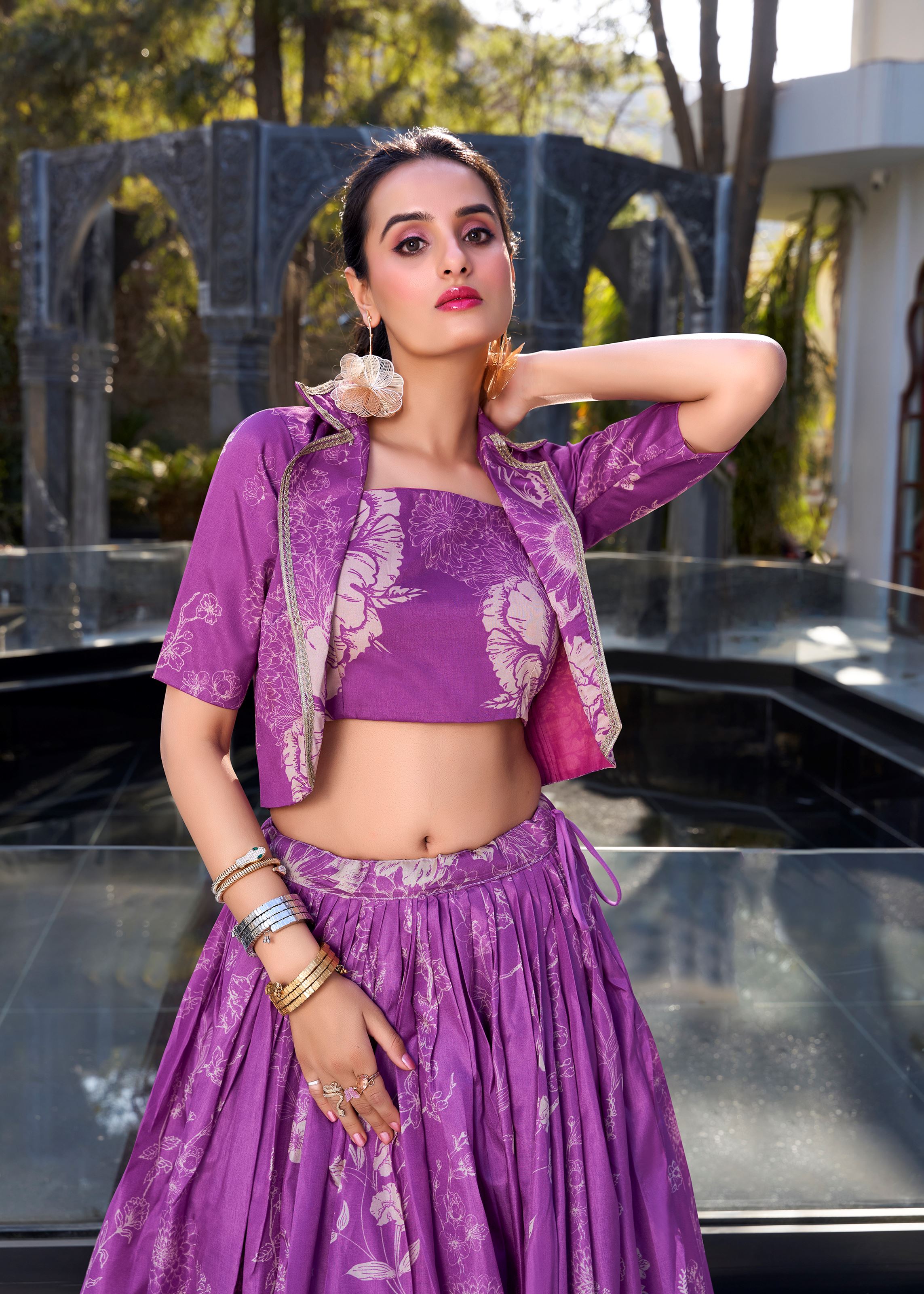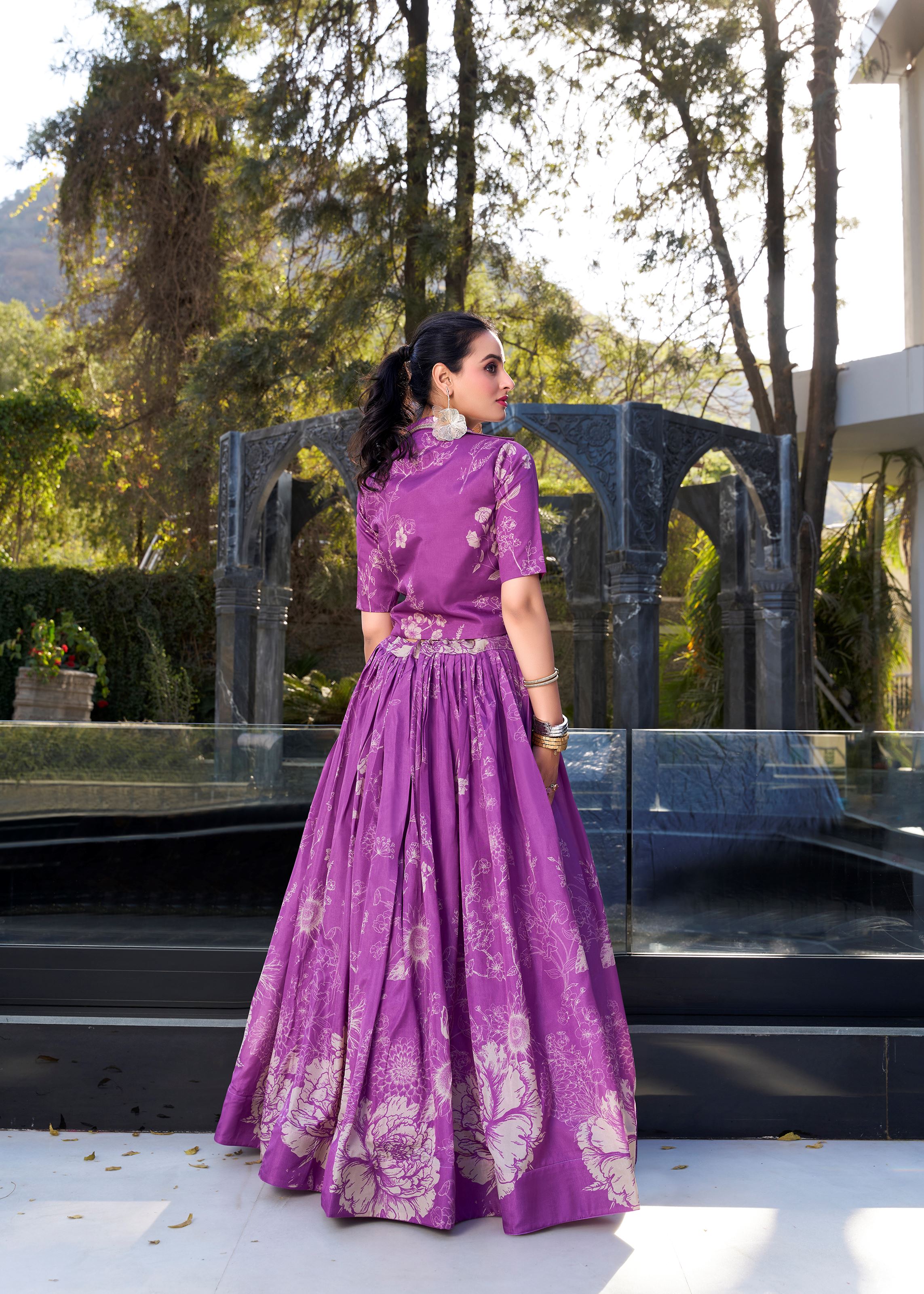 Purple Grace in Bloom Tussar Silk Floral Print Lehenga