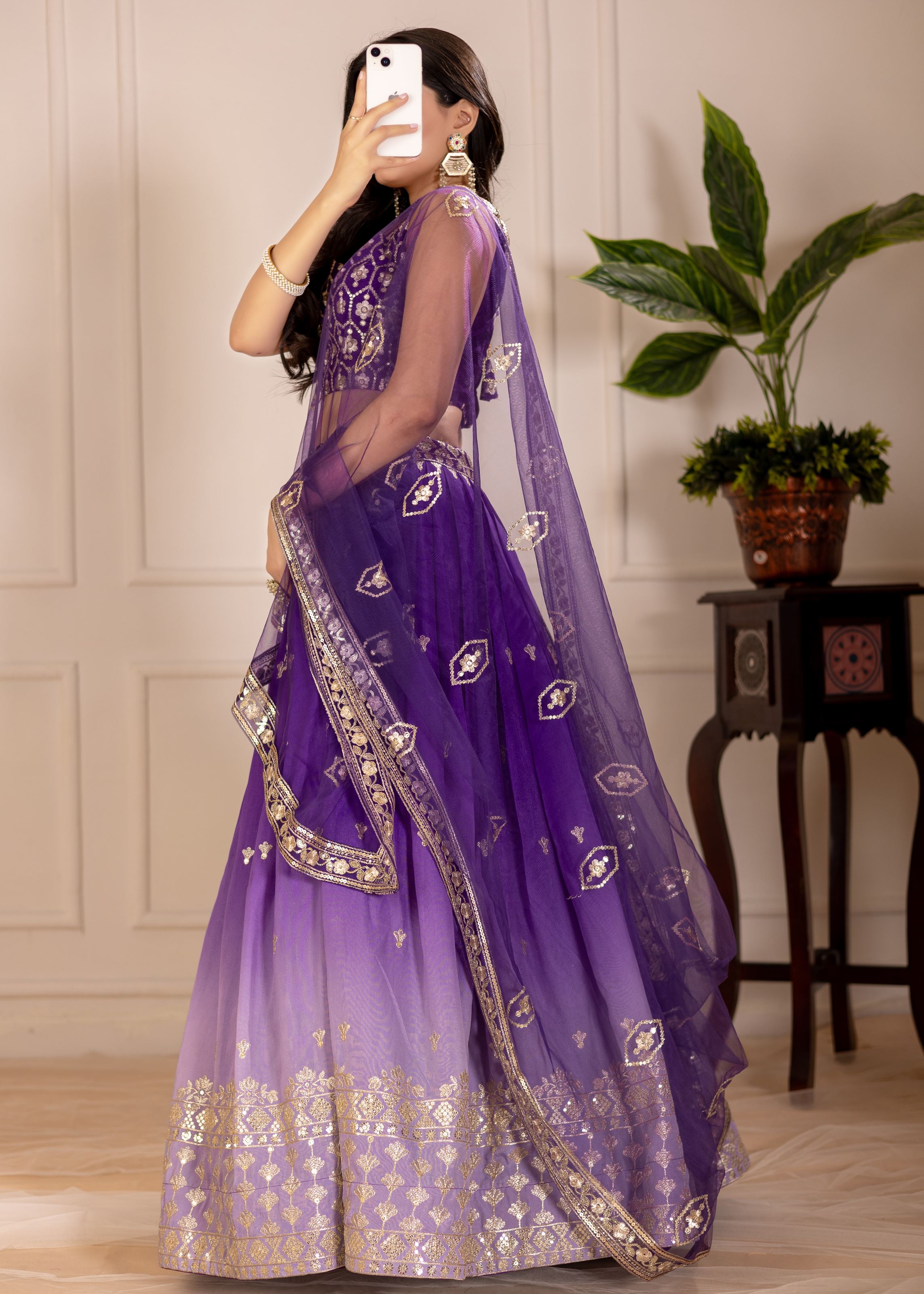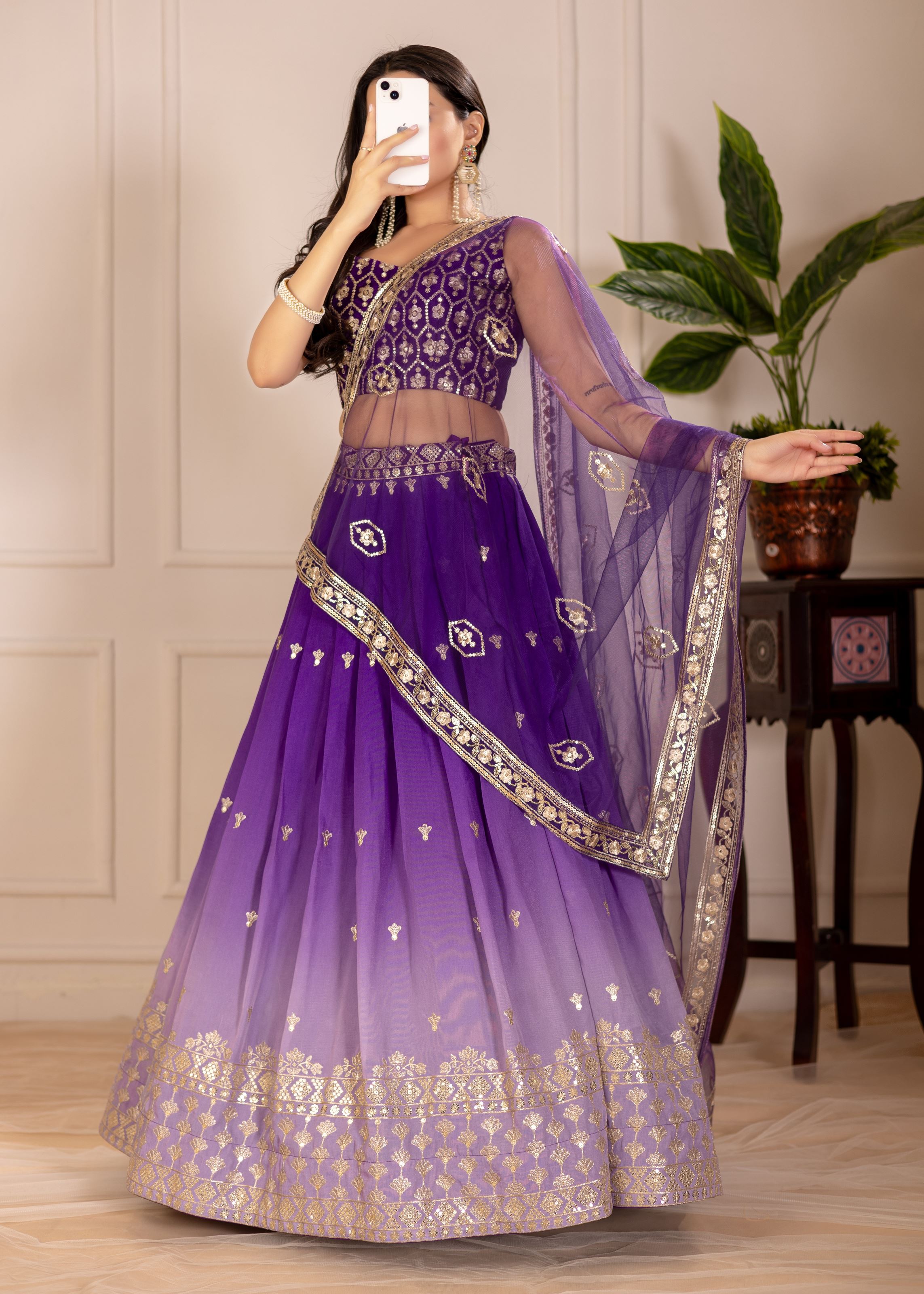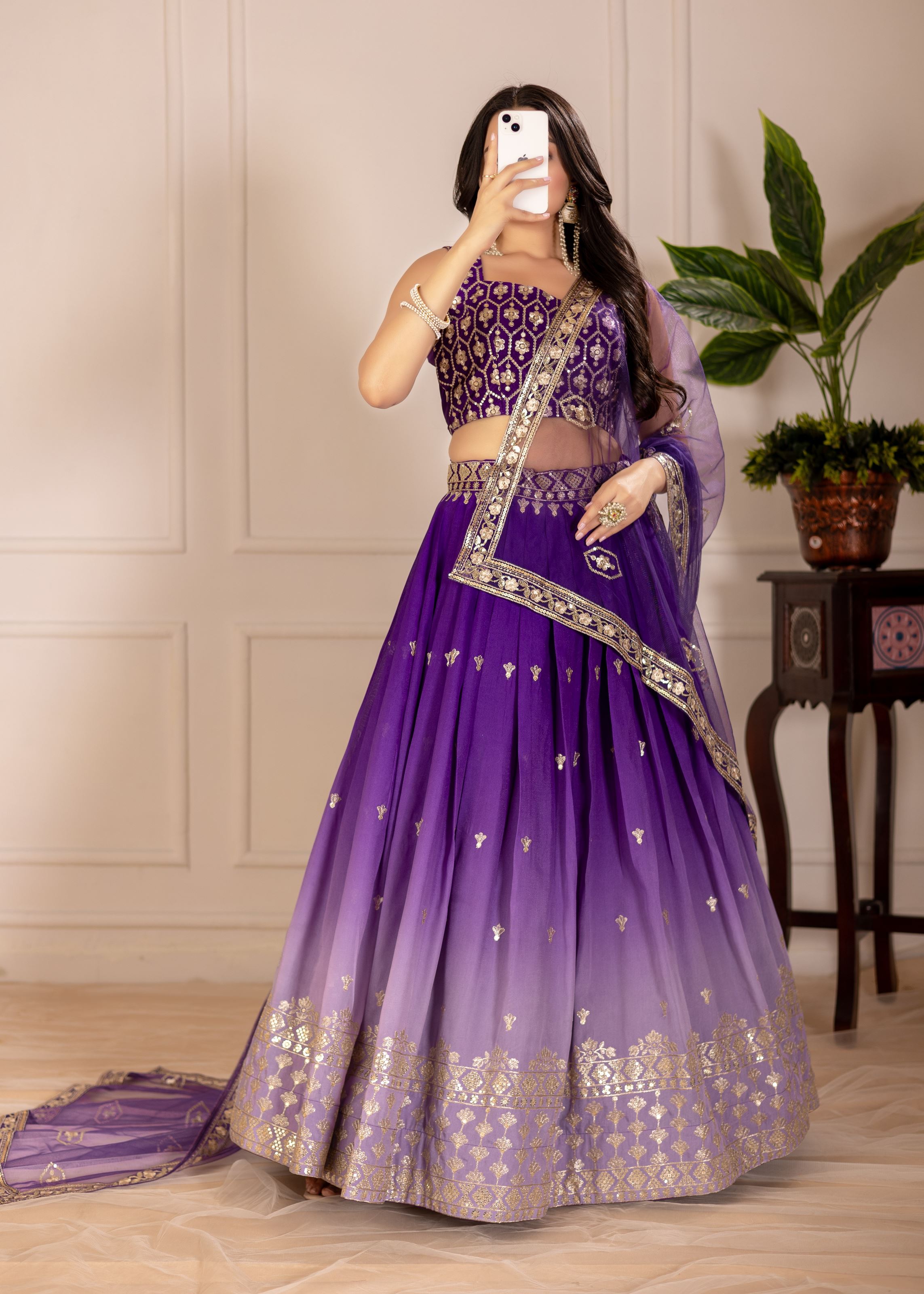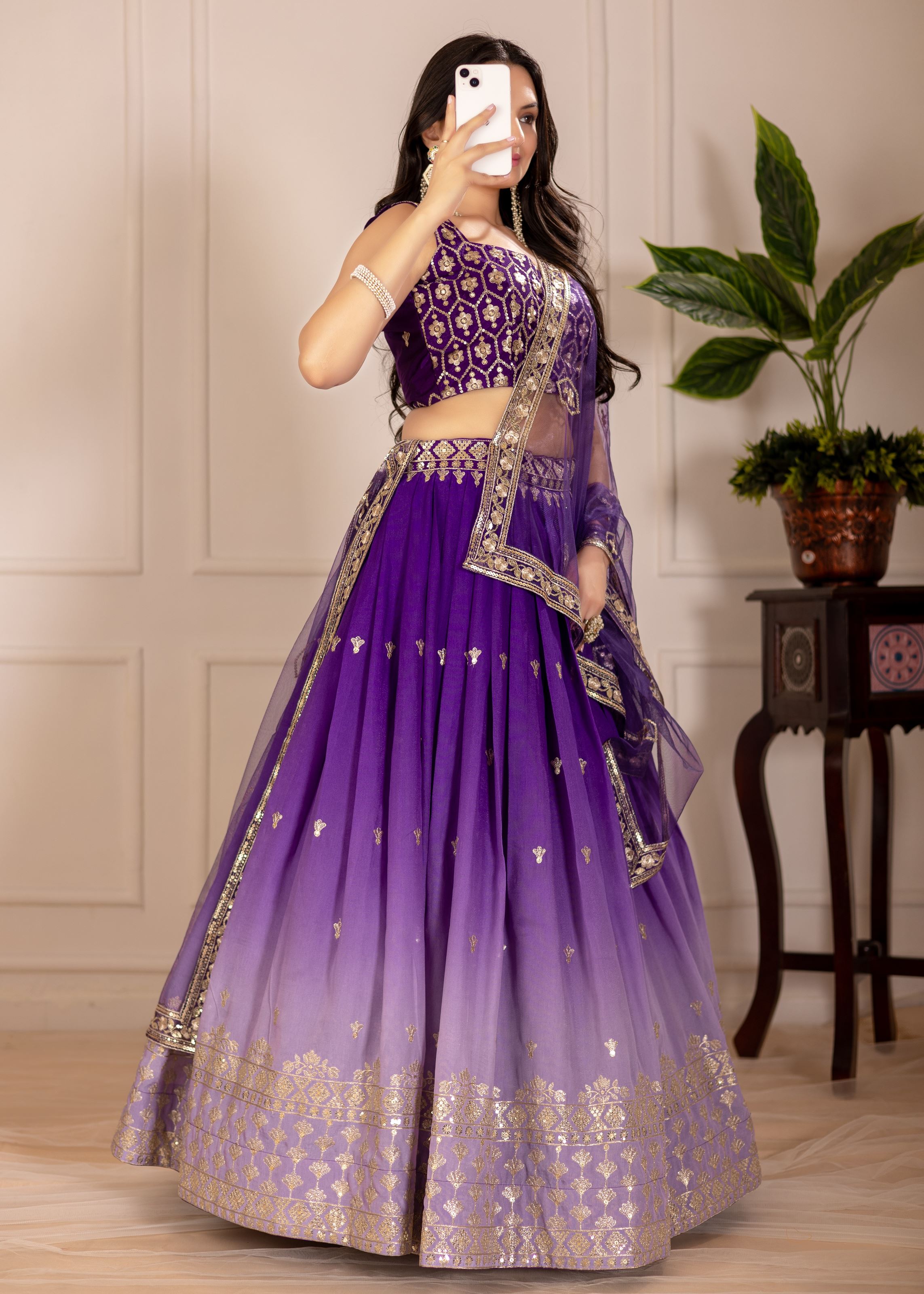Purple Lehenga Choli With Embroidery, Thread & Sequin Work