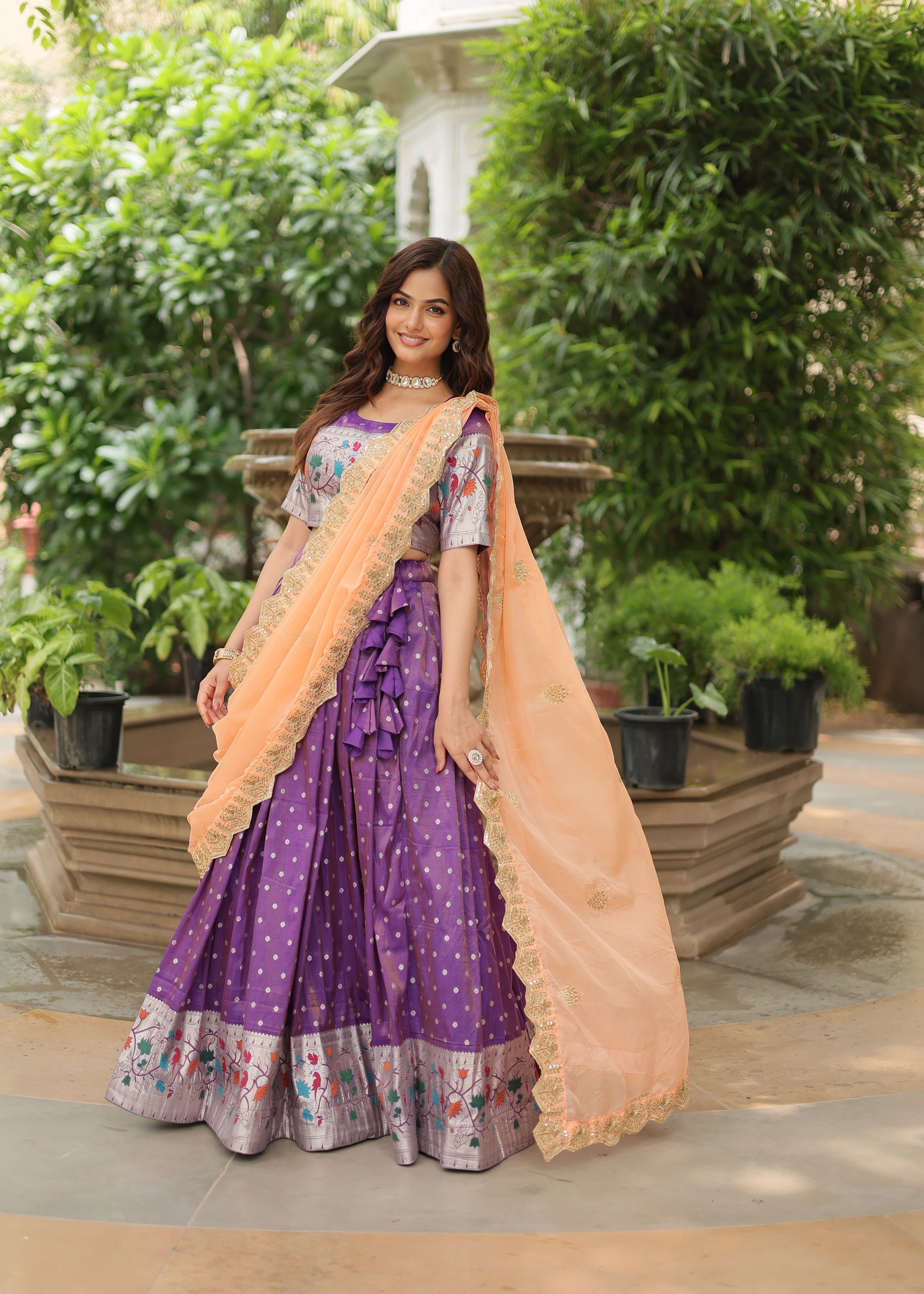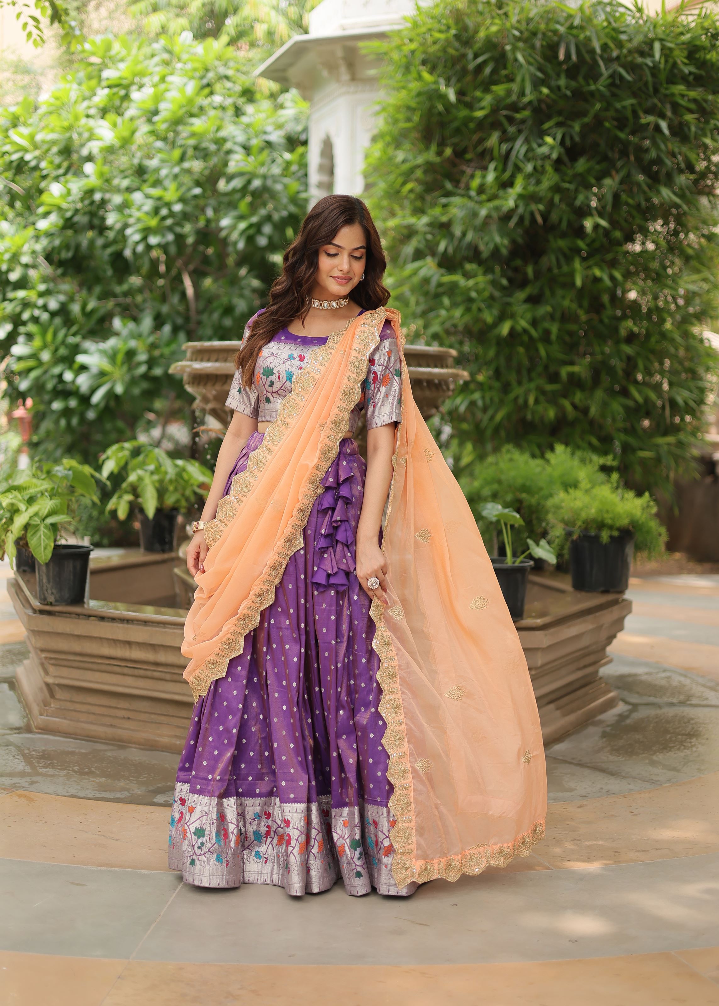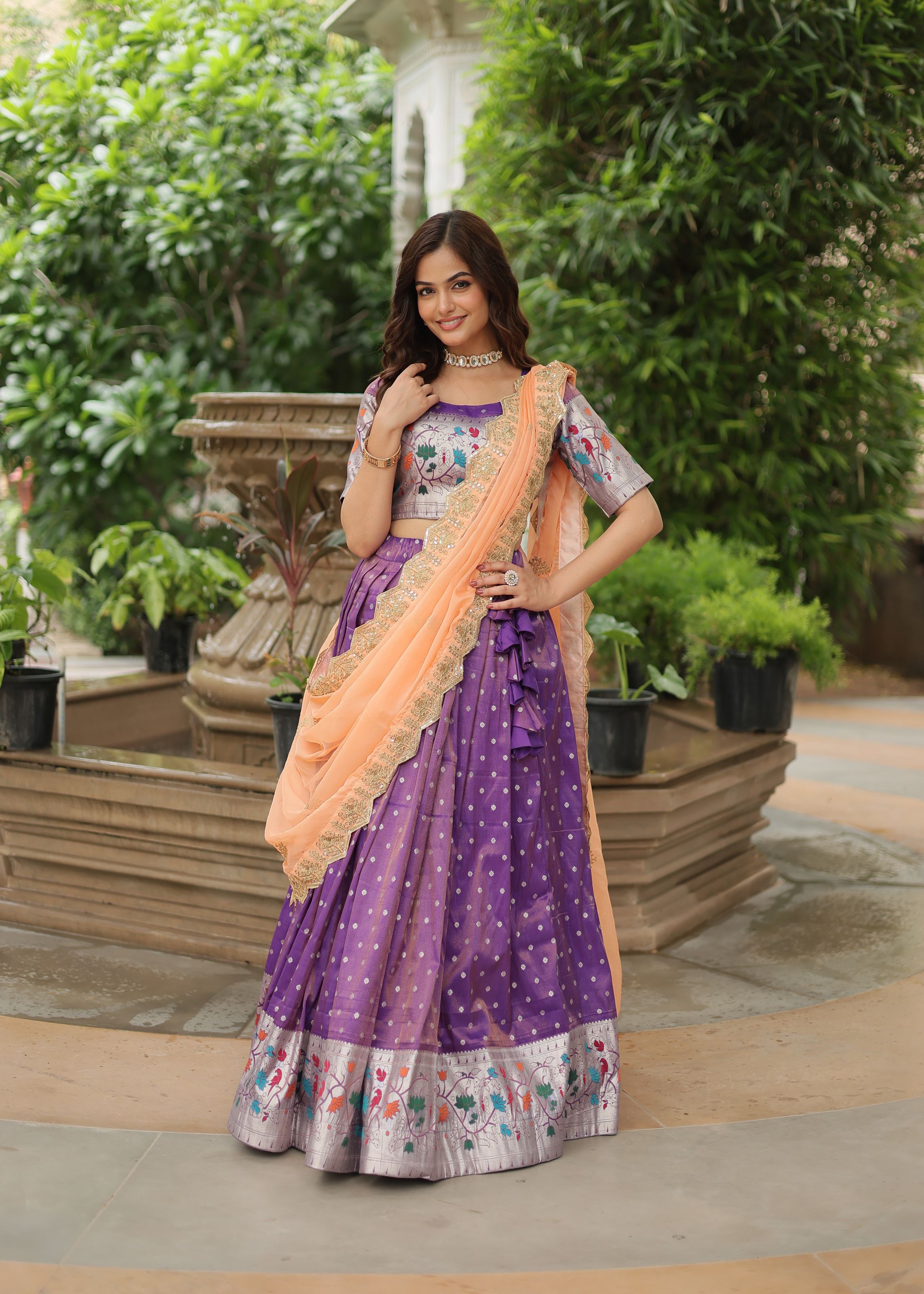 Purple Lehenga Choli with Heavy Meena Weaving work