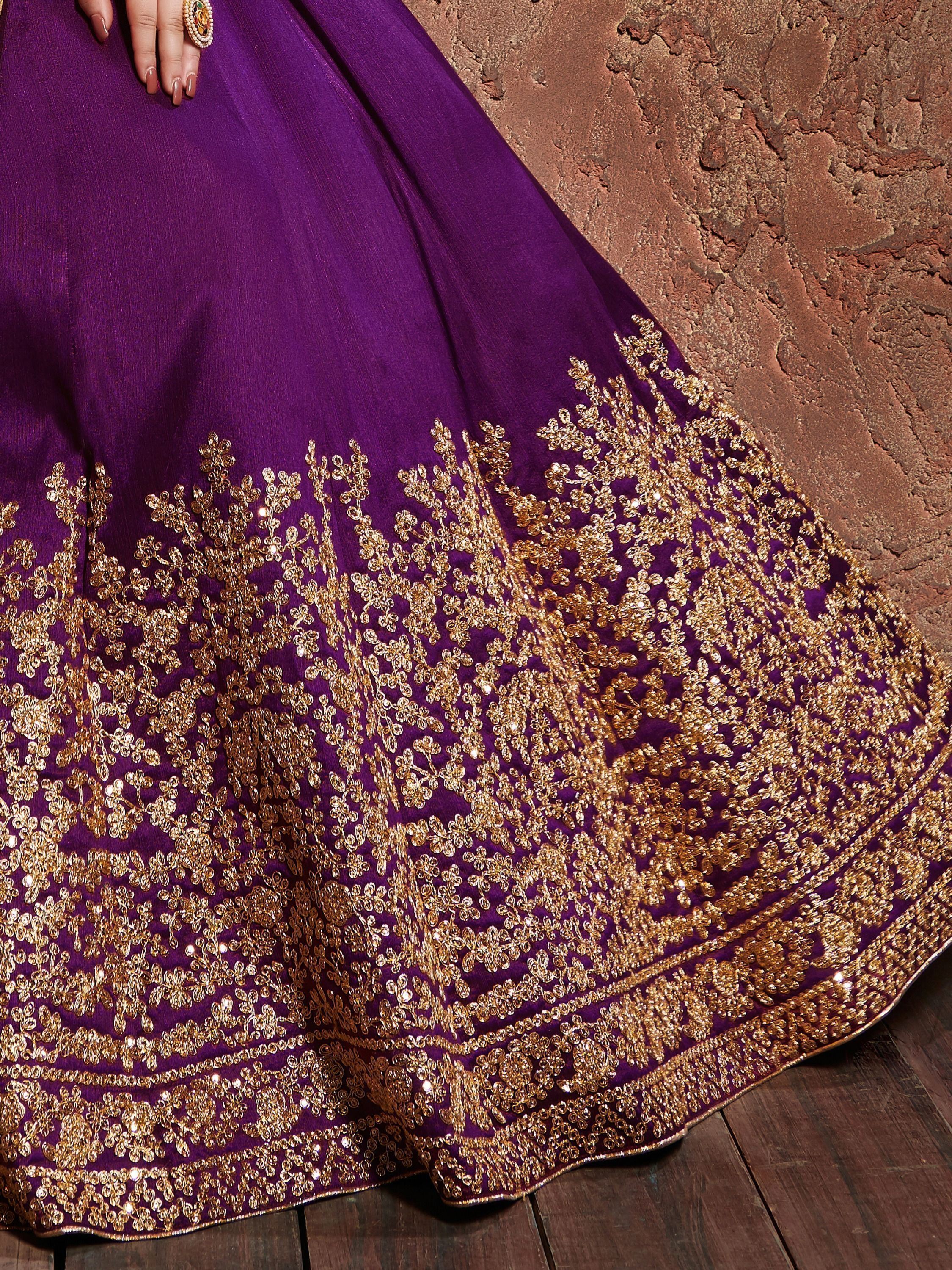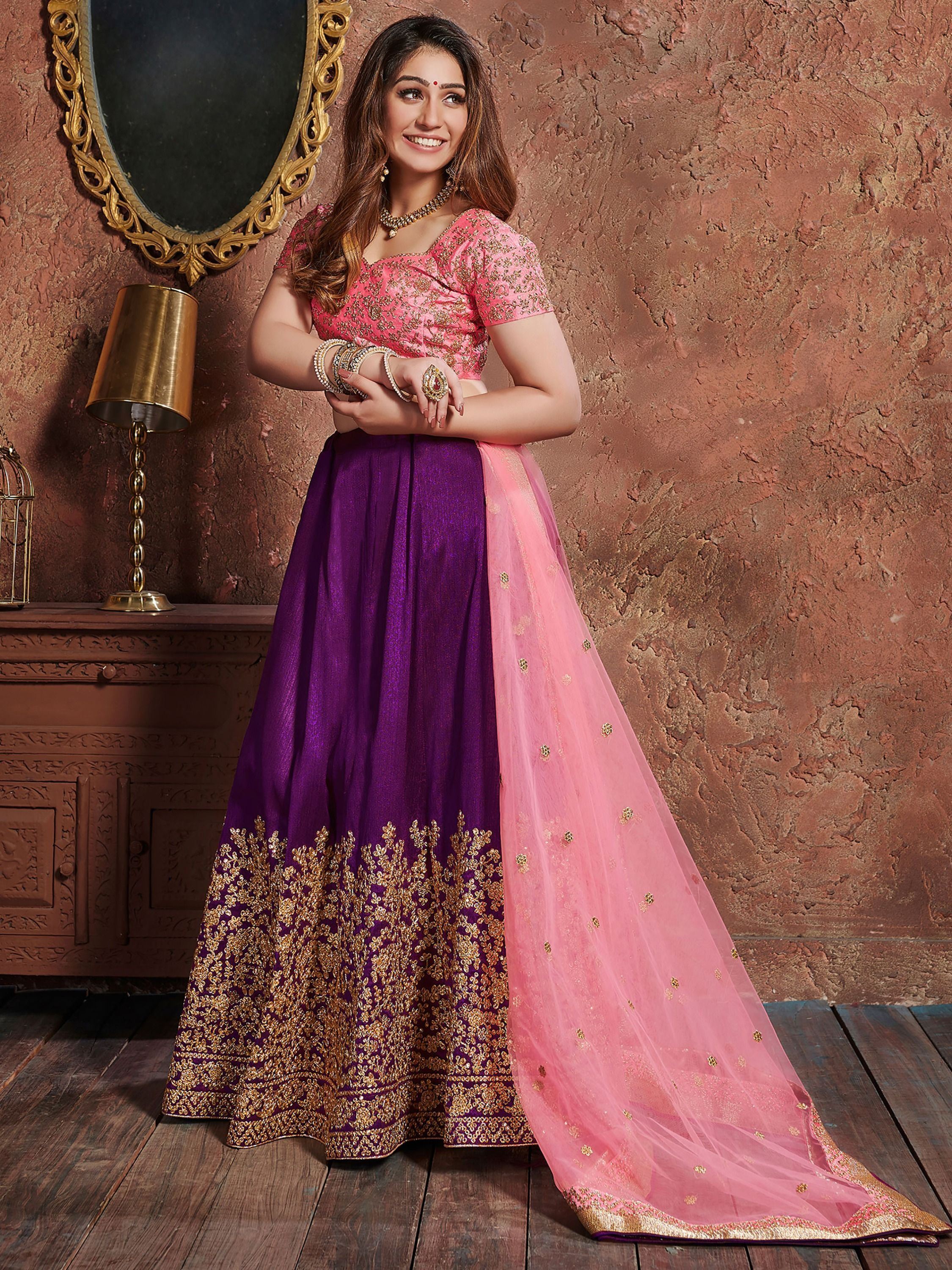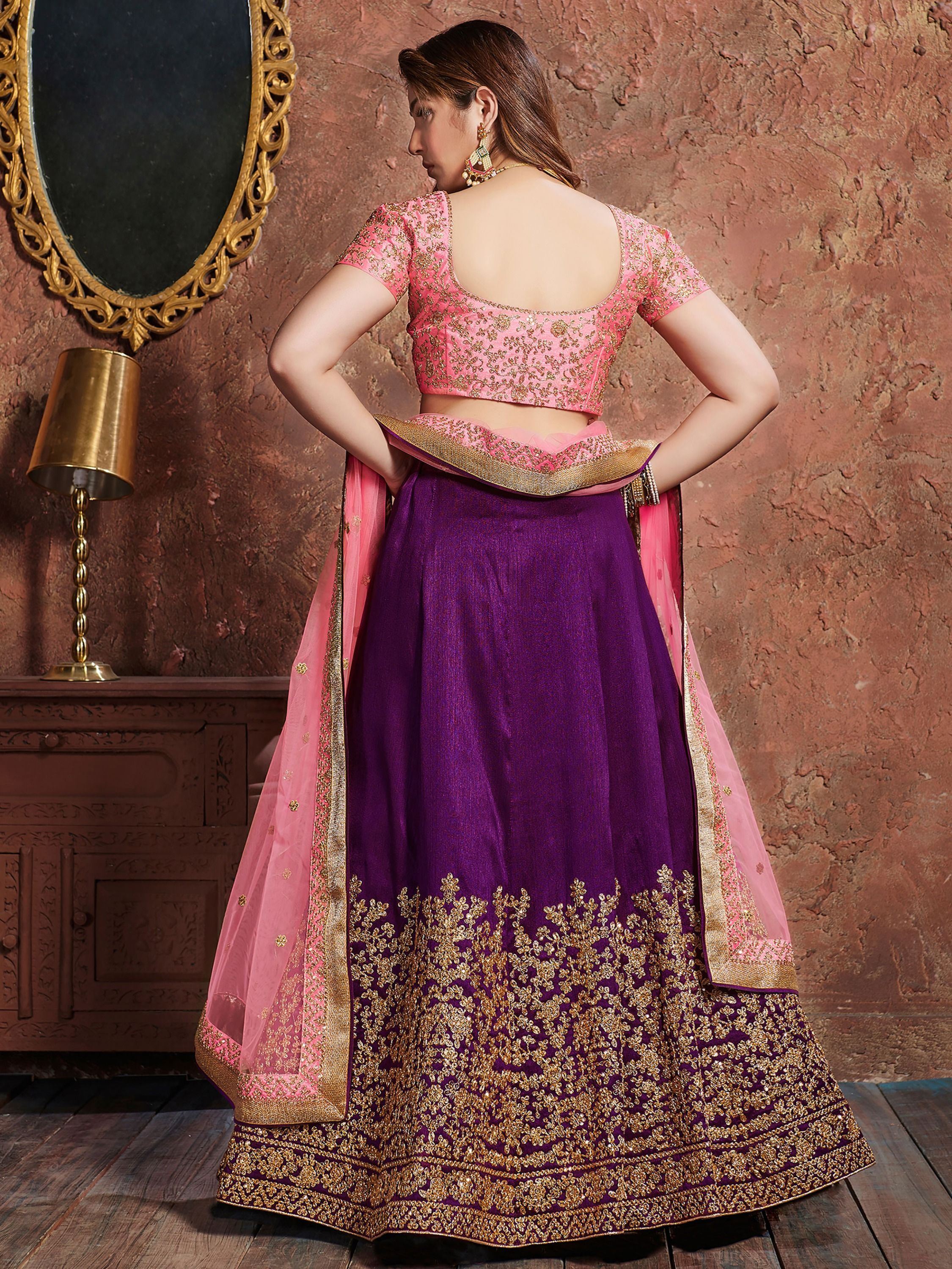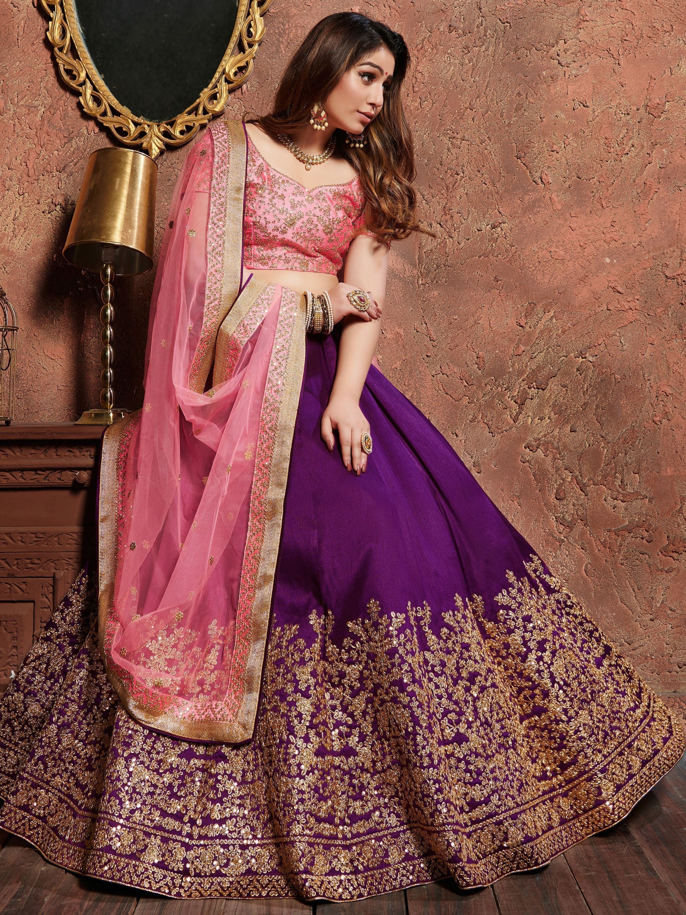 Purple Sequins Silk Wedding Lehenga With Pastel Pink Choli and Dupatta