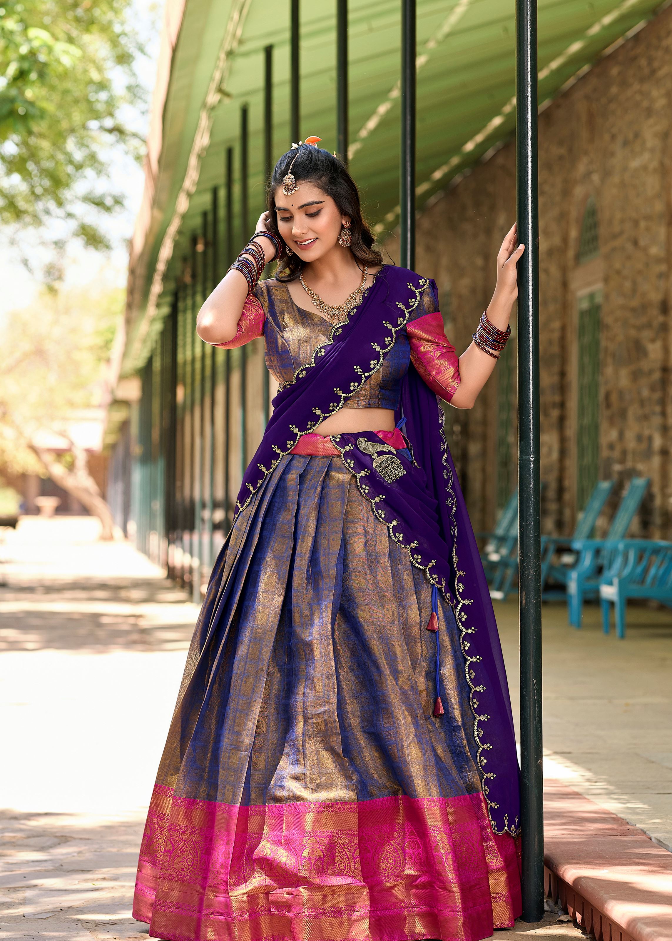 Radiate Grace In Blue Traditional Kanjivaram Lehenga With Timeless Zari Detailing