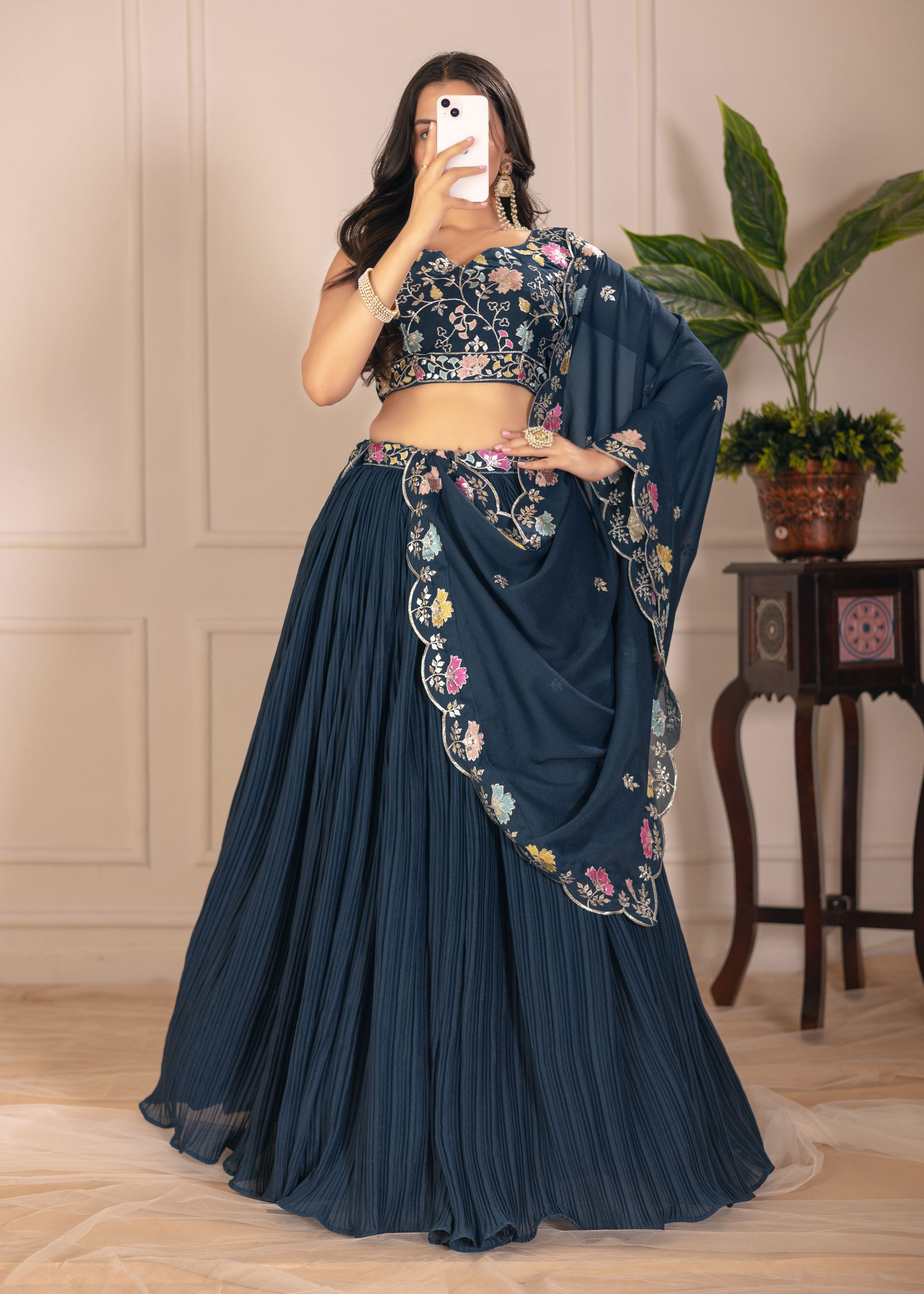 Rama Lehenga Choli With Embroidery With Multi Thread Sequence Work
