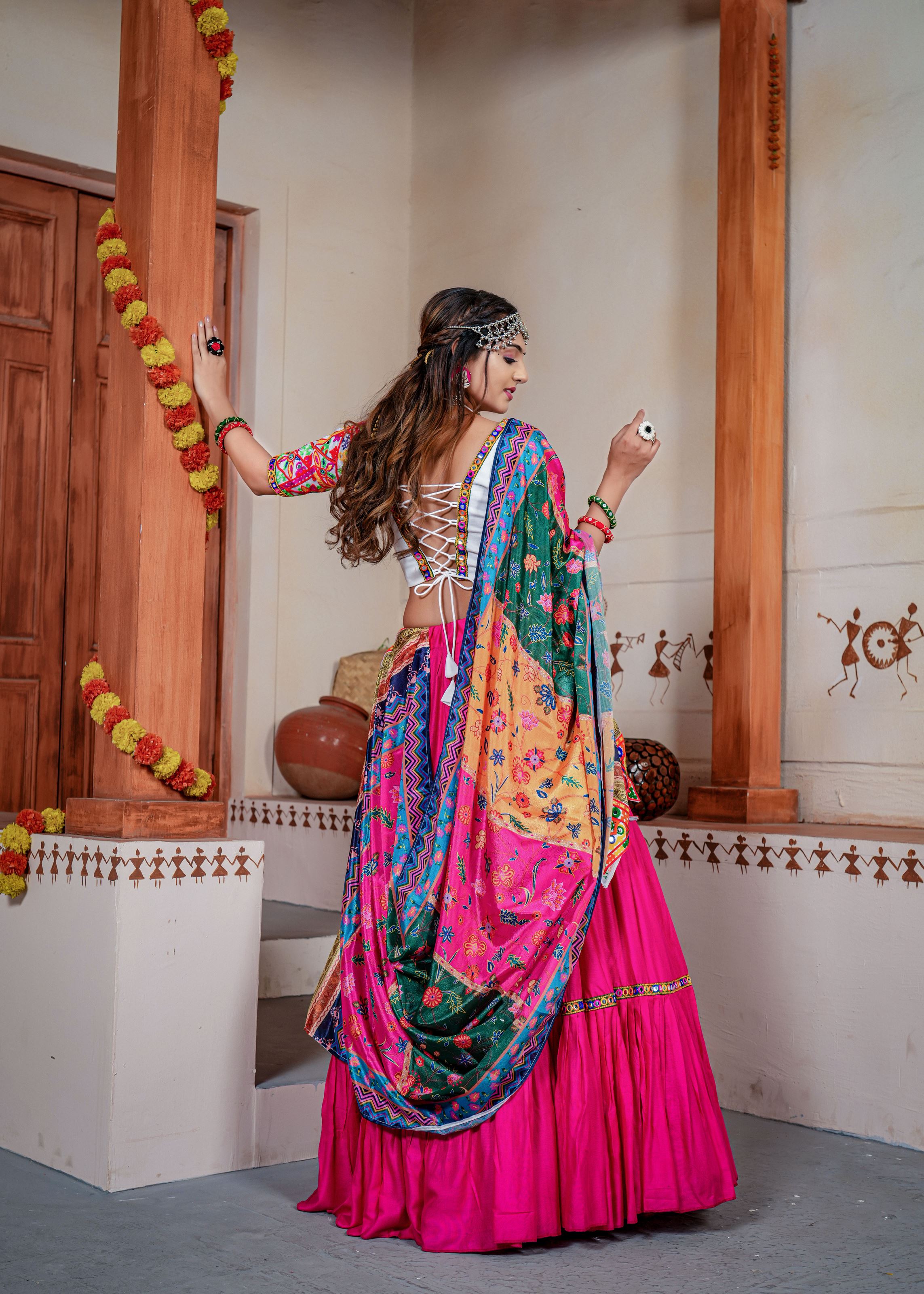 Bright, bold, and brimming with ethnic charm — this Rani Lehenga Choli from Aethnofit Fashions is a perfect blend of tradition and contemporary sparkle. The lehenga, crafted from soft yet durable Rayon fabric in a rich rani pink hue, is beautifully highlighted with heavy ready mirror lace, adding radiant shine and a festive vibe to the ensemble. Ideal for mehendi, haldi, and pre-wedding functions, it captures attention with every twirl.