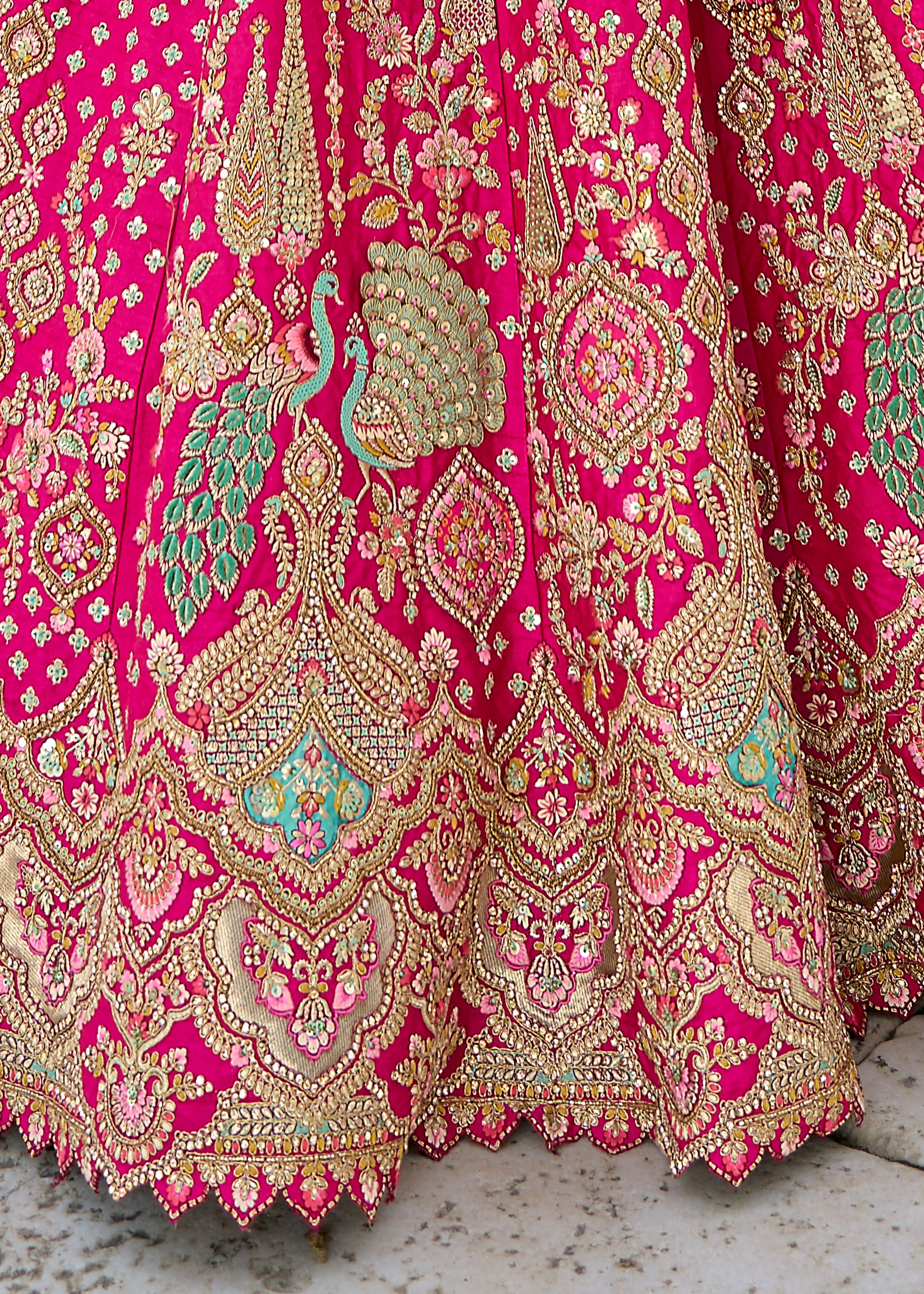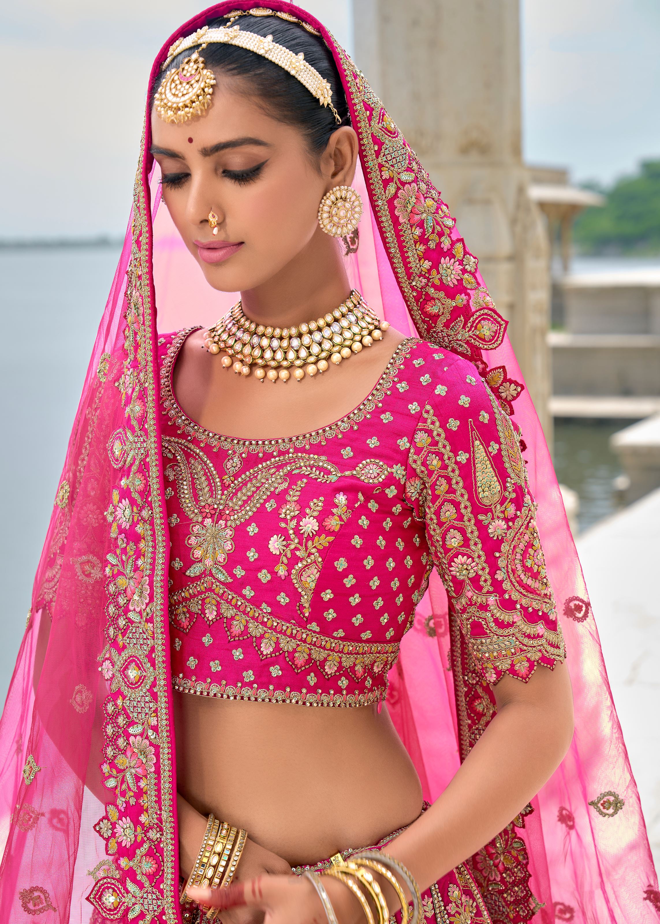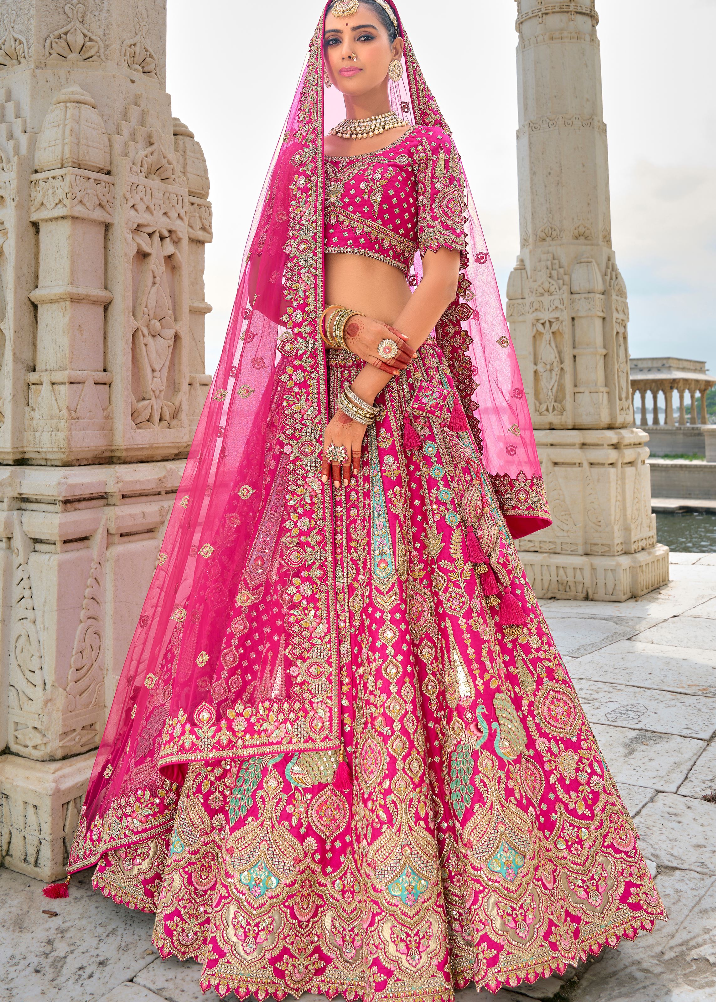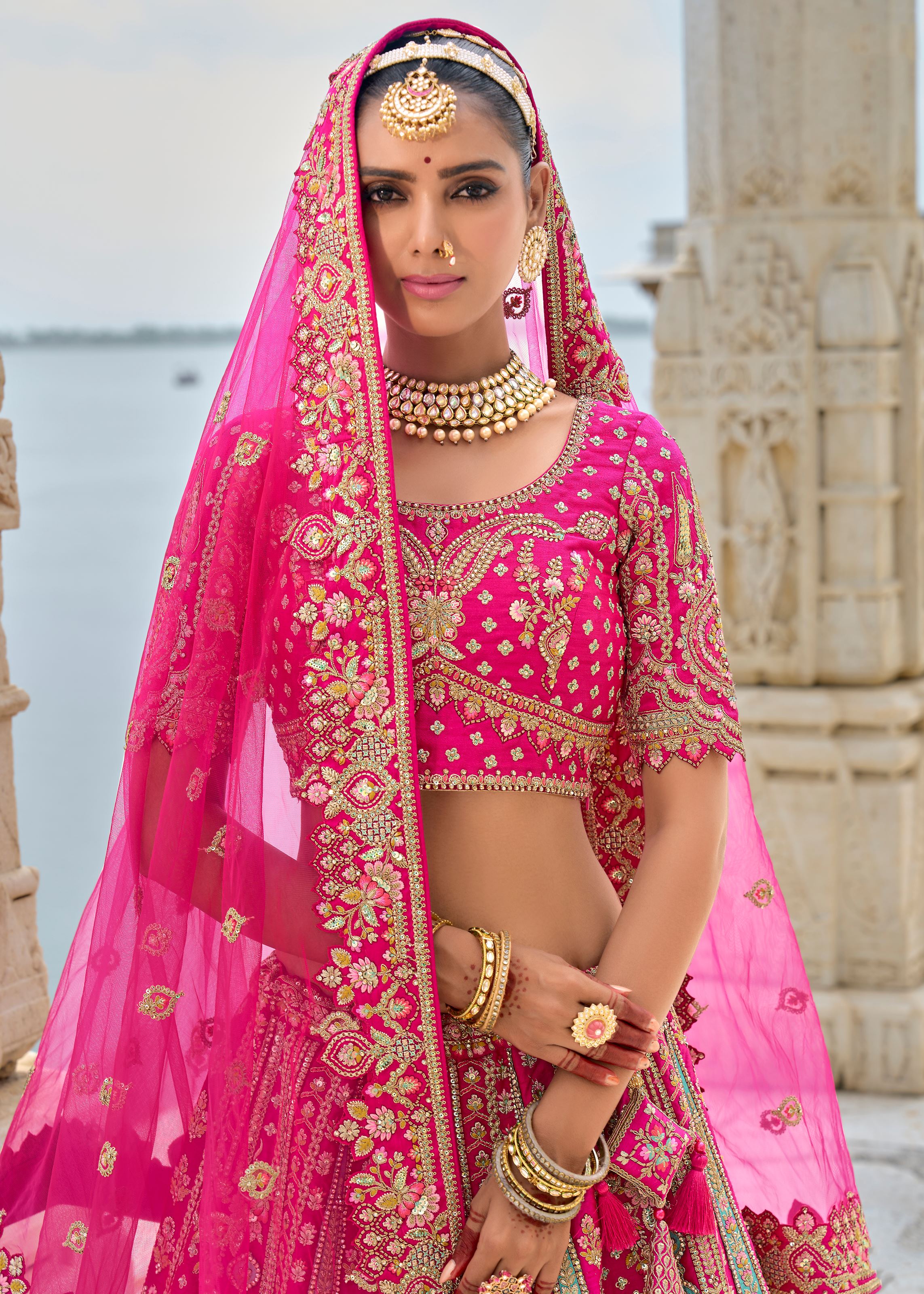Rani Pink Lehenga Choli With Heavy Thread Embroidery, Zari With Sequins Work