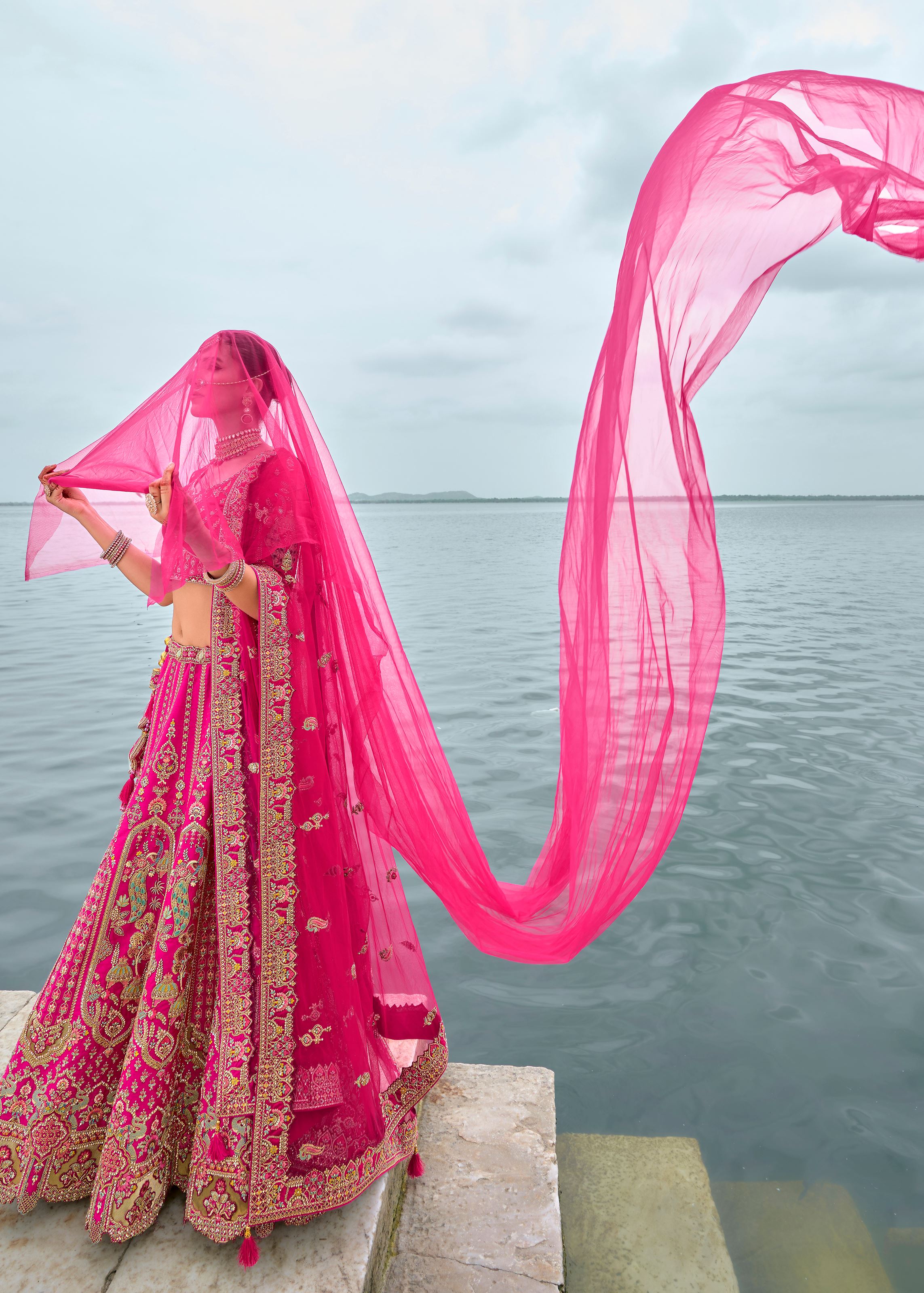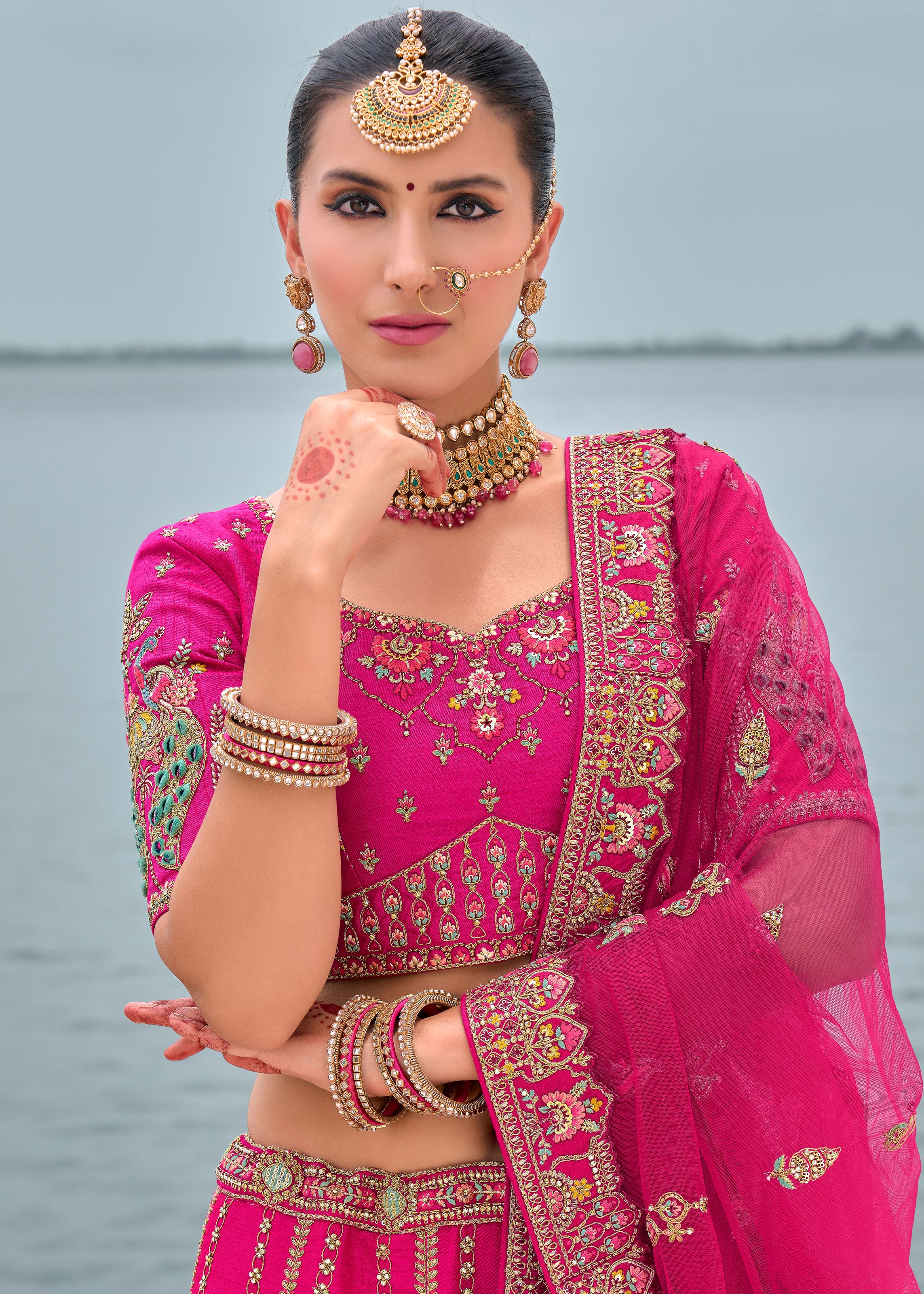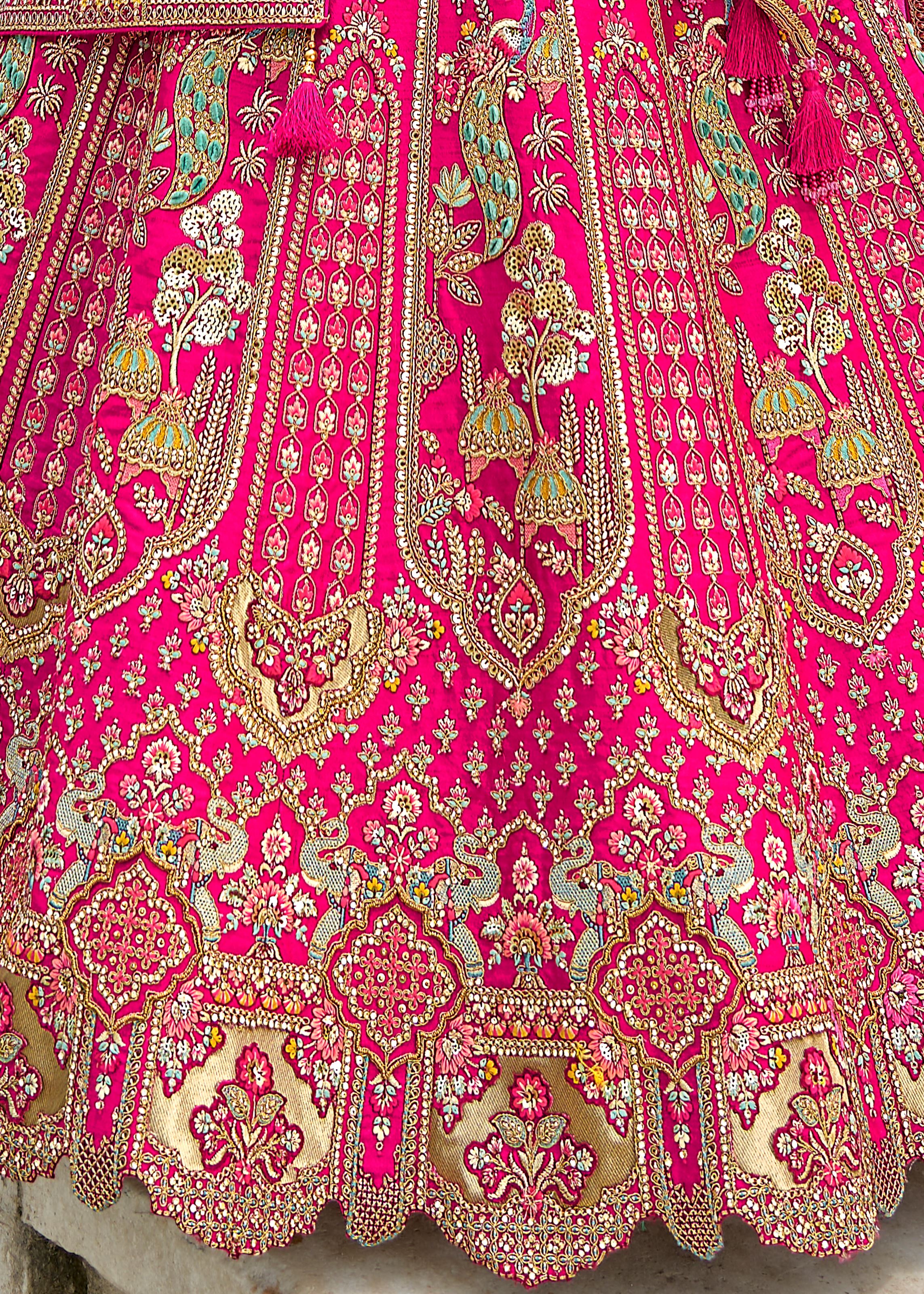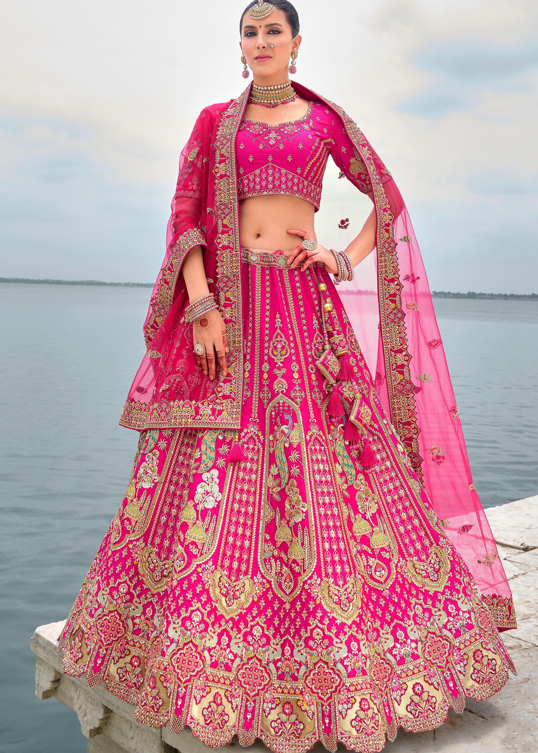 Rani Pink Lehenga Choli With Heavy Thread Embroidery, Zari With Sequins Work