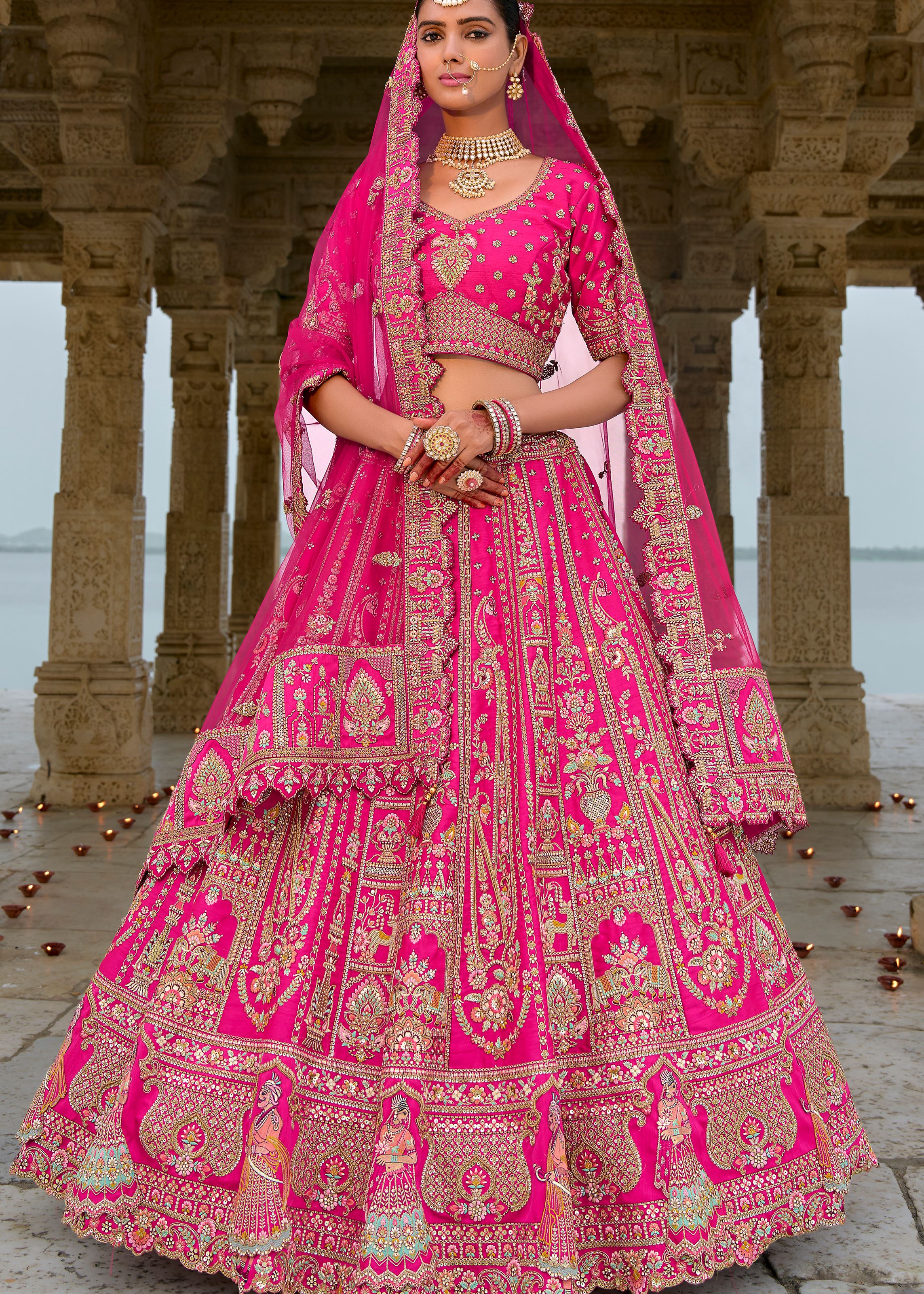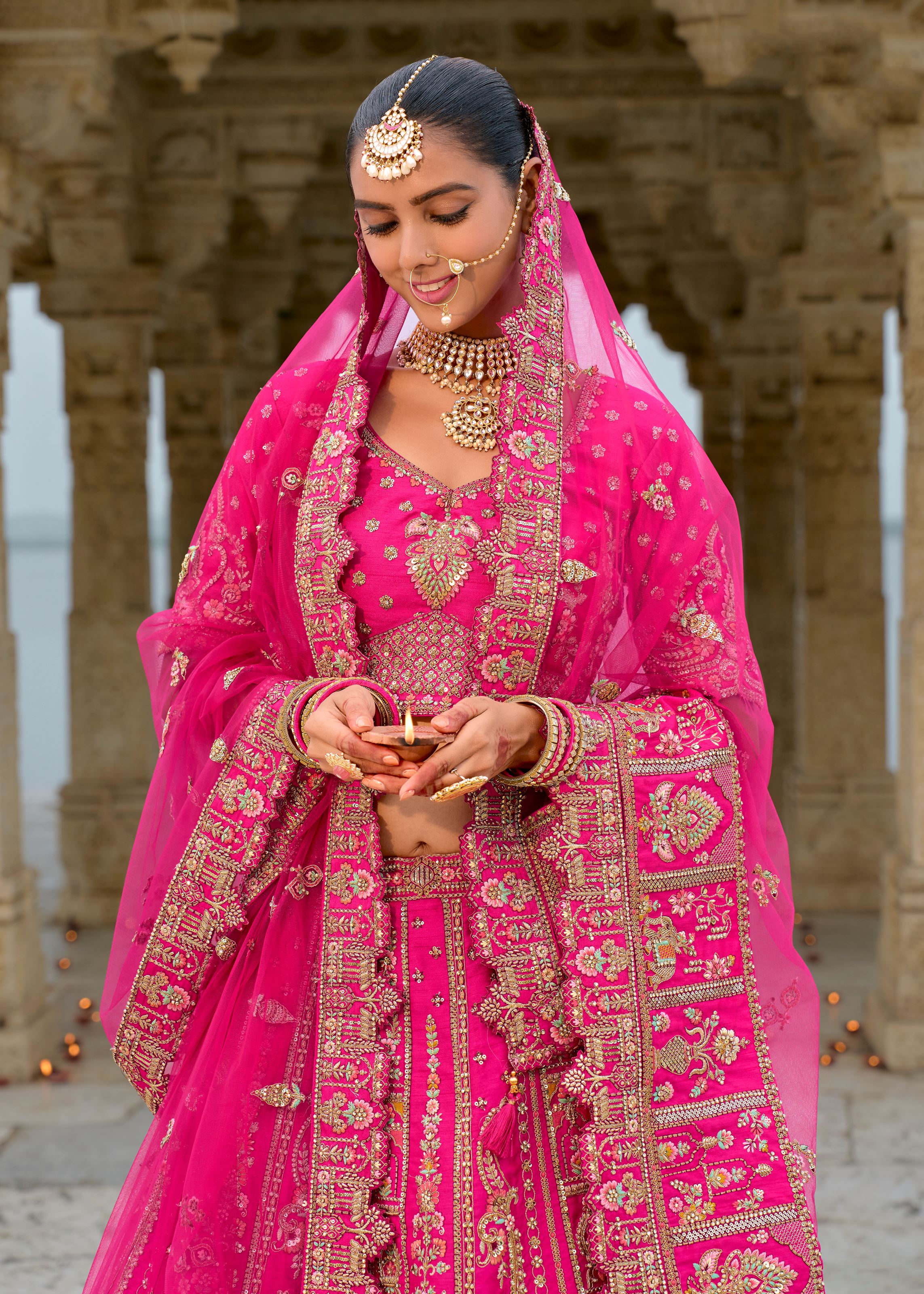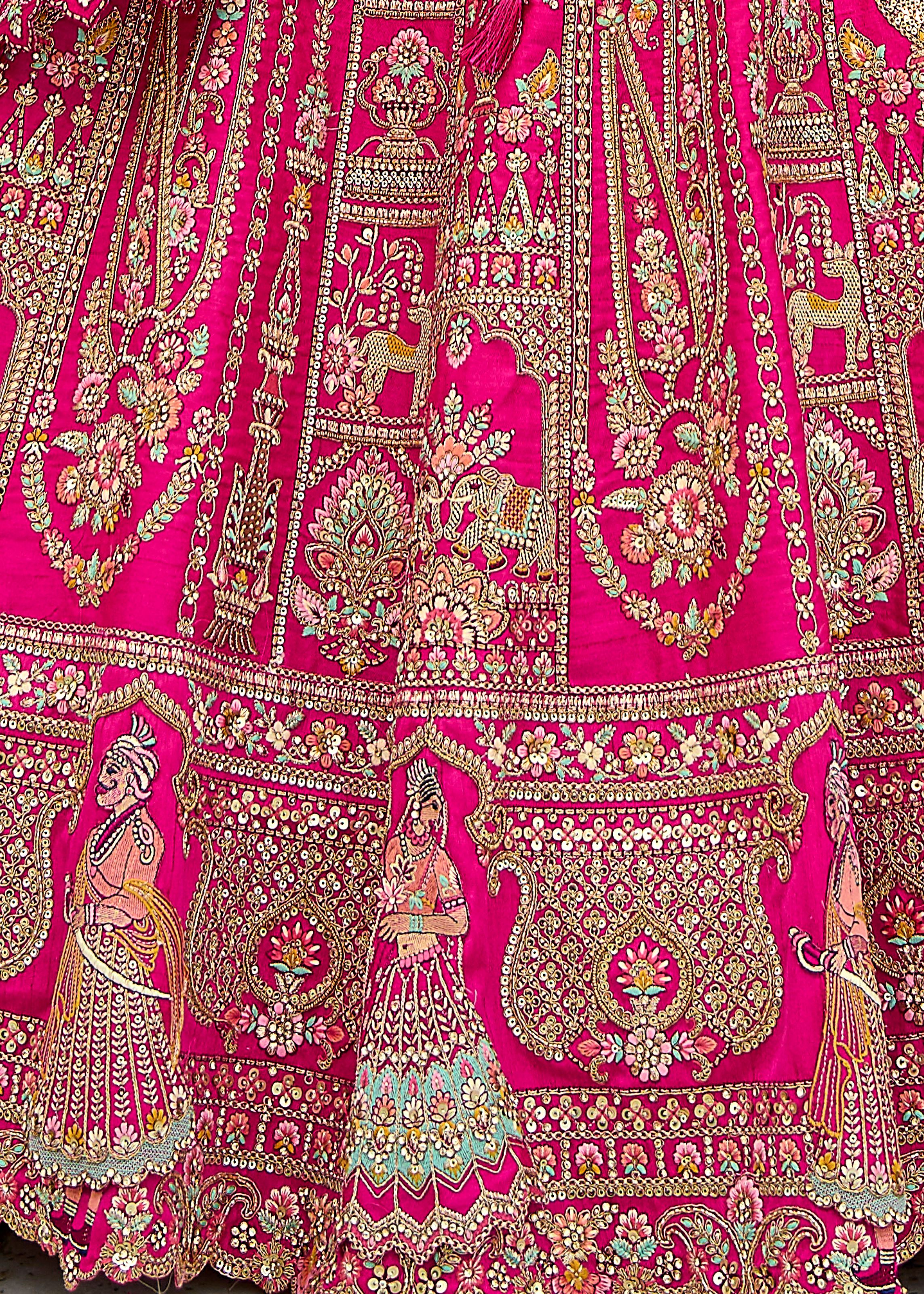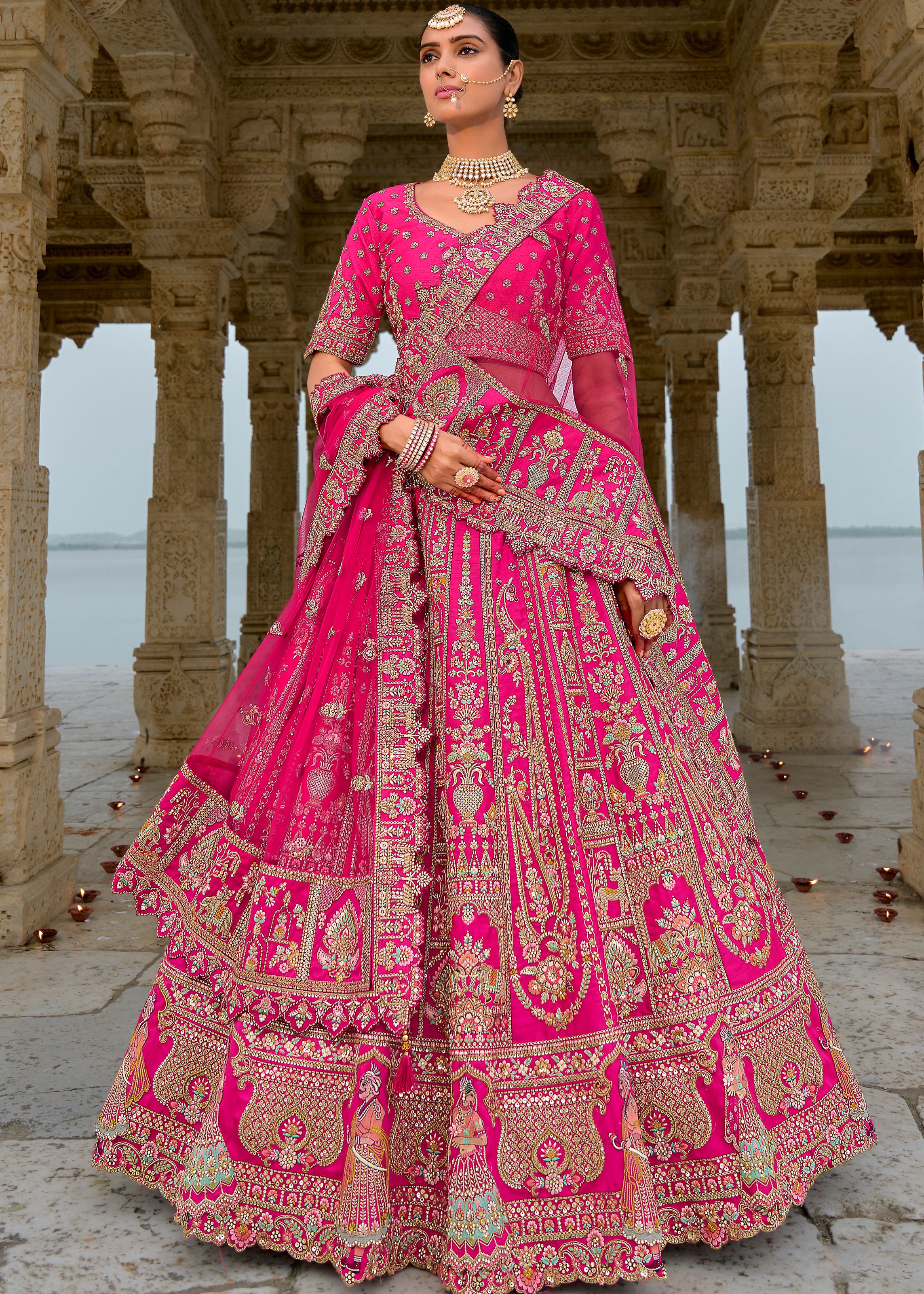 Rani Pink Lehenga Choli With Heavy Thread Embroidery, Zari With Sequins Work