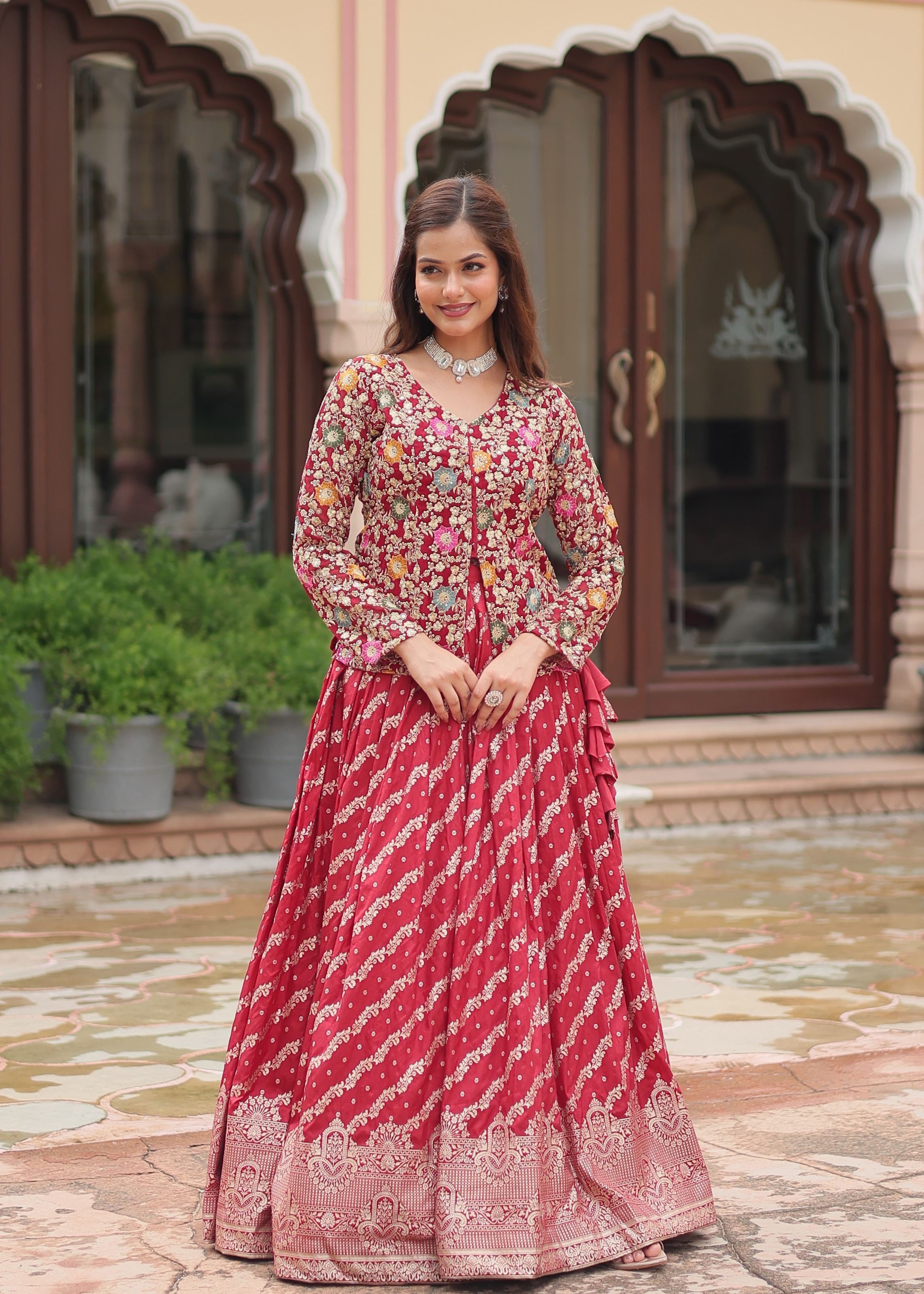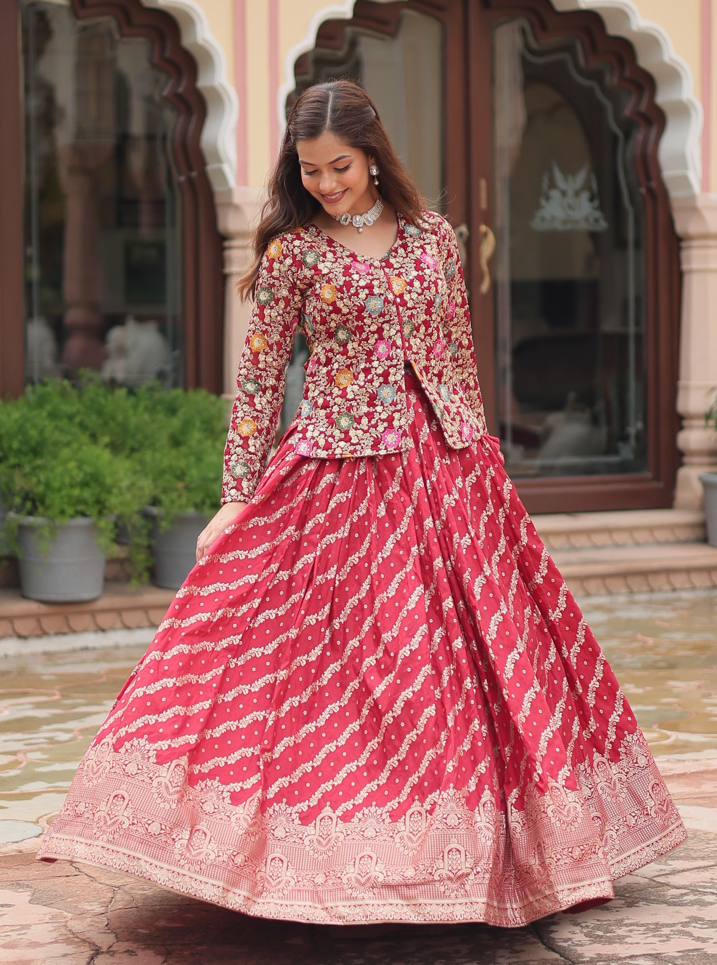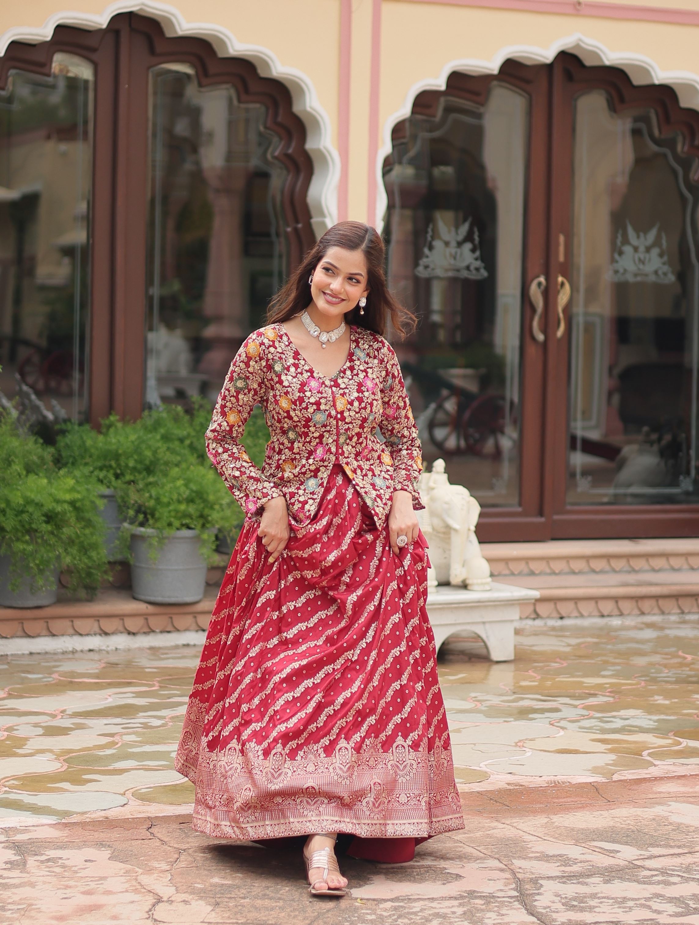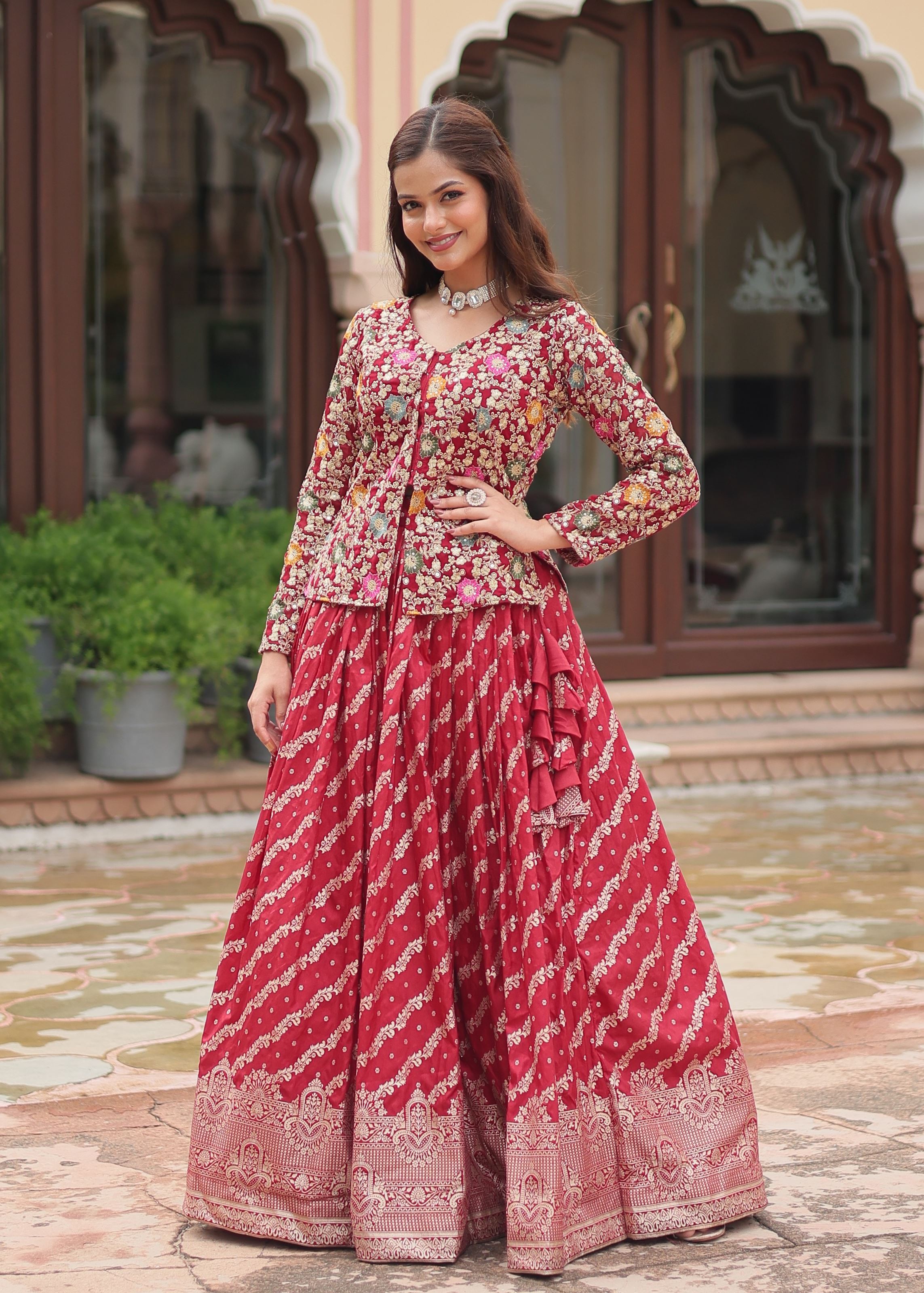 Red Lehenga Choli with Heavy Embroidered Sequins work