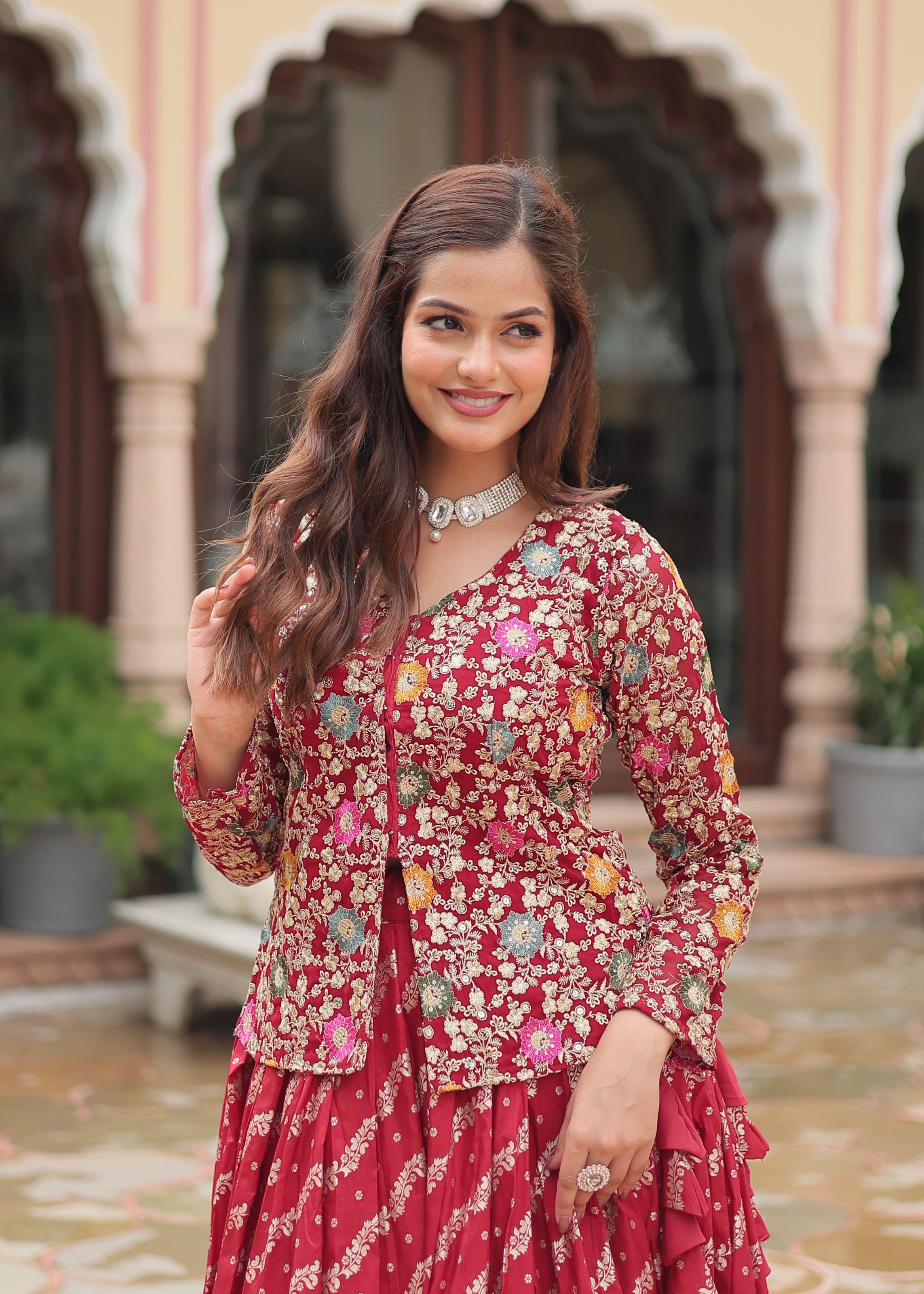 Drape yourself in opulence with Aethnofit Fashions’ Red Lehenga Choli with Heavy Embroidered Sequins Work, a striking blend of traditional Indian artistry and modern elegance. Crafted for grand celebrations, this lehenga features luxurious fabric and meticulous sequin embroidery throughout the skirt, blouse, making it an ideal choice for weddings, receptions, and festive occasions.