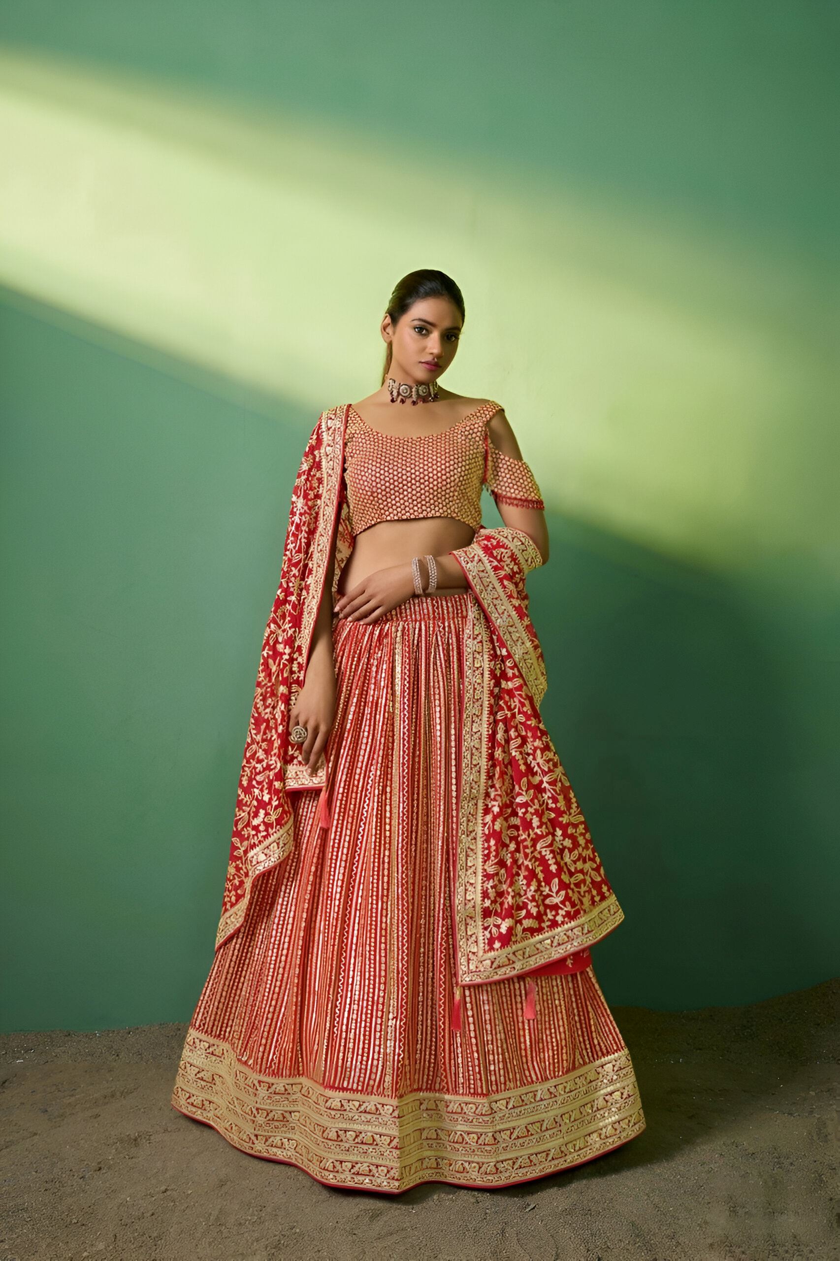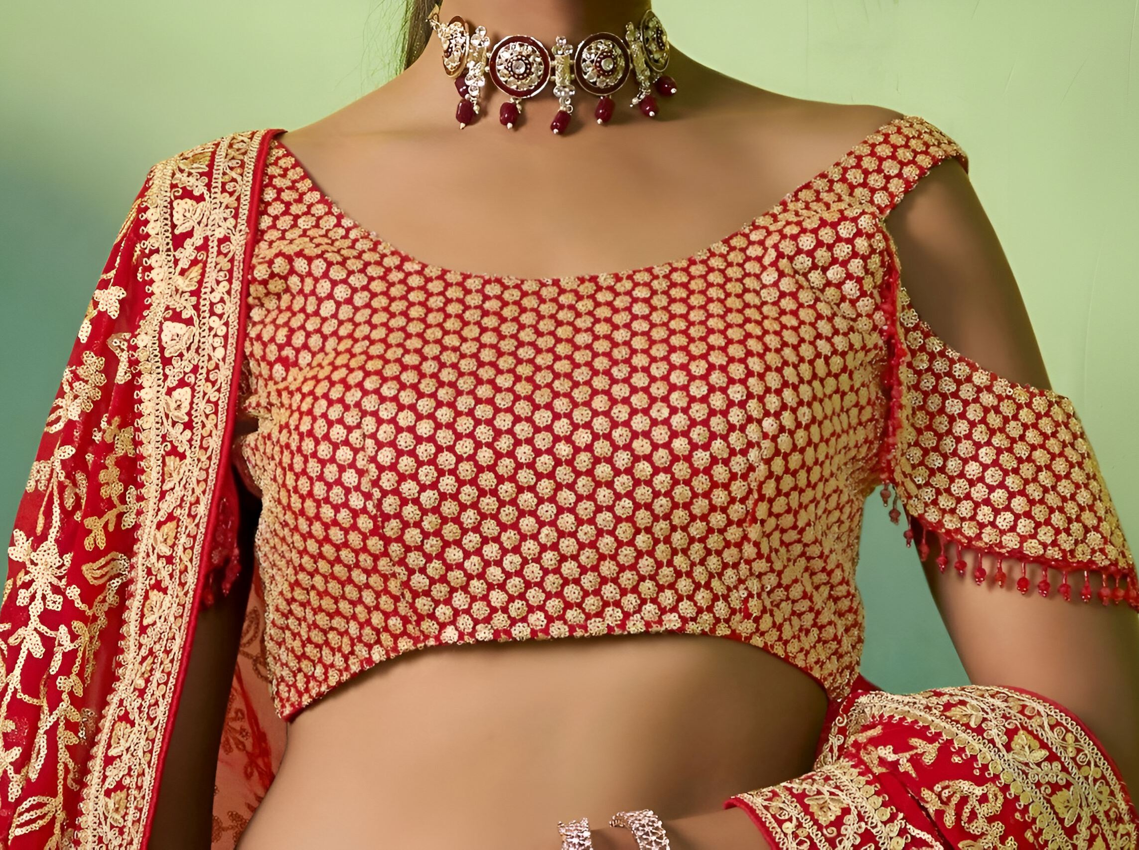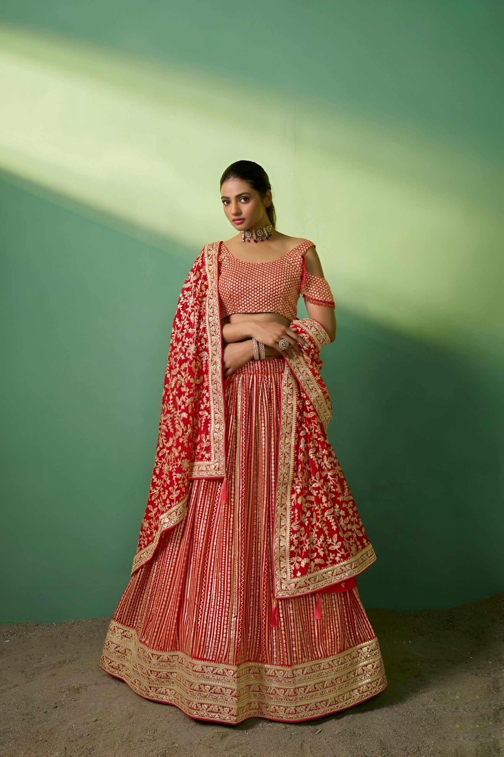 Red Lehenga Choli with Heavy Embroidery & Sequence Work