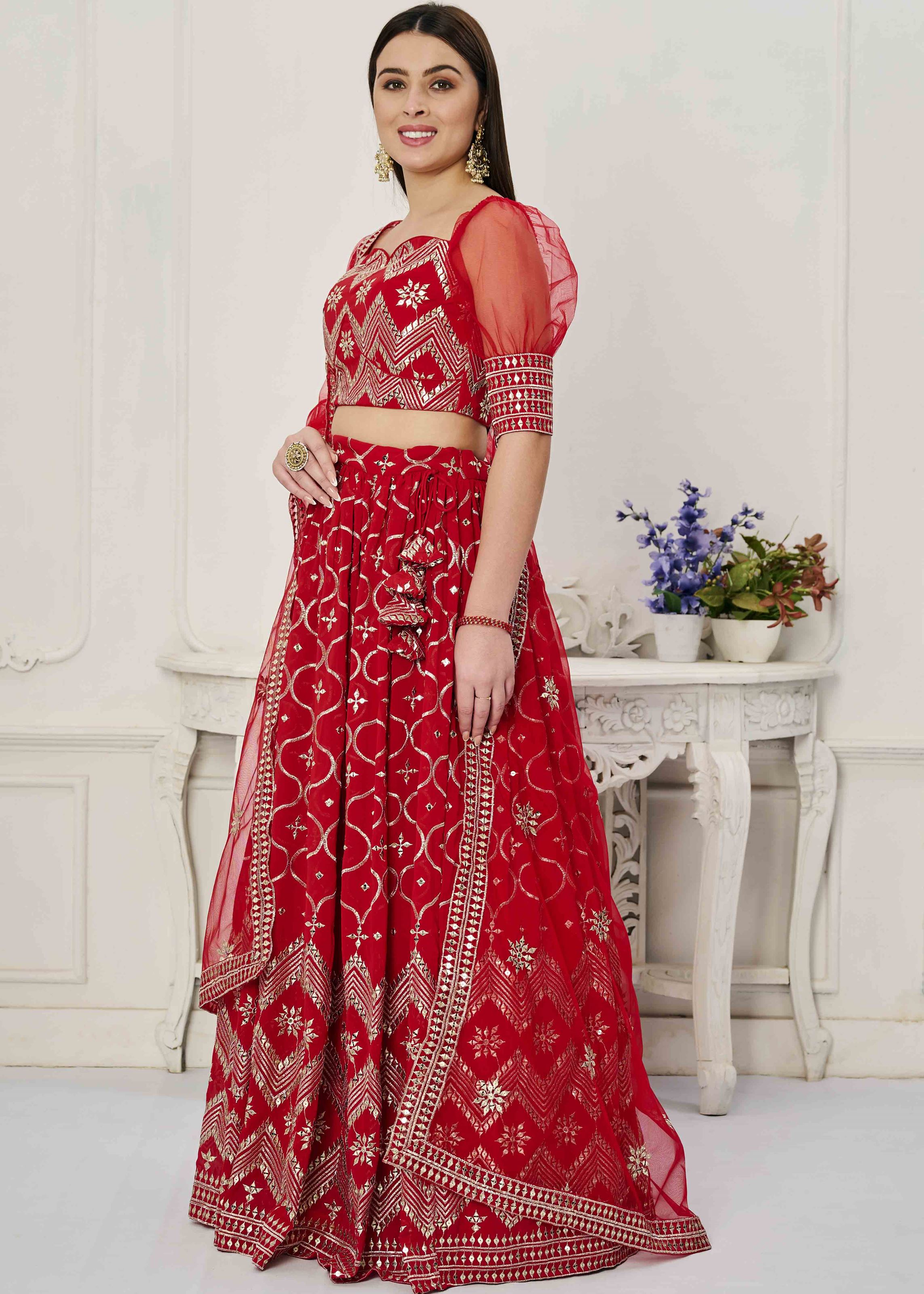 Red Lehenga Choli With Thread Embroidery Sequins Work