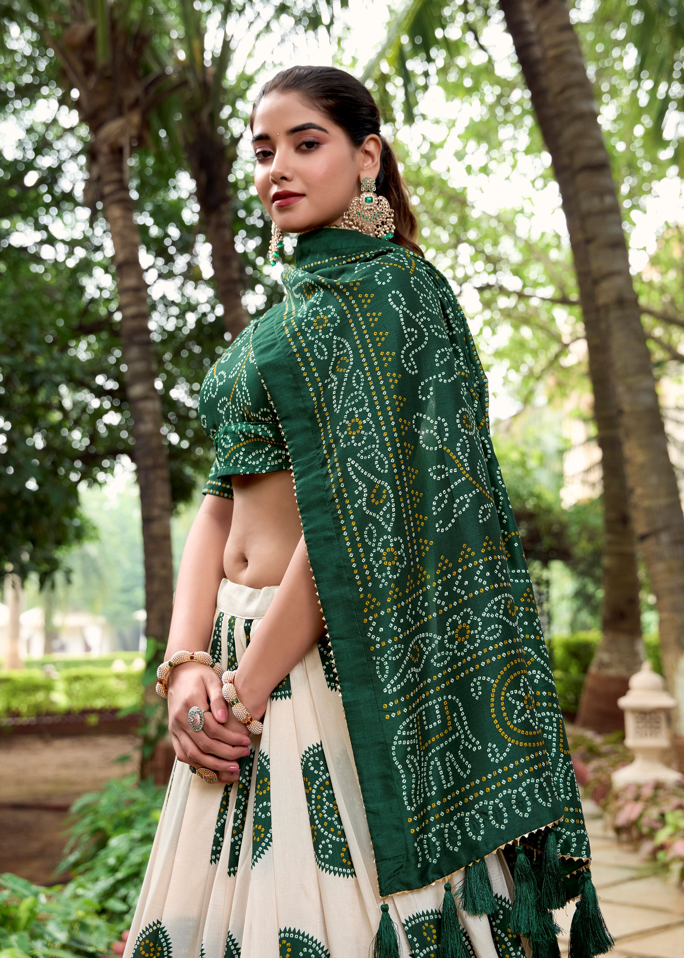 Royal in Every Fold Green Tussar Silk Lehenga with Timeless Bandhej Print