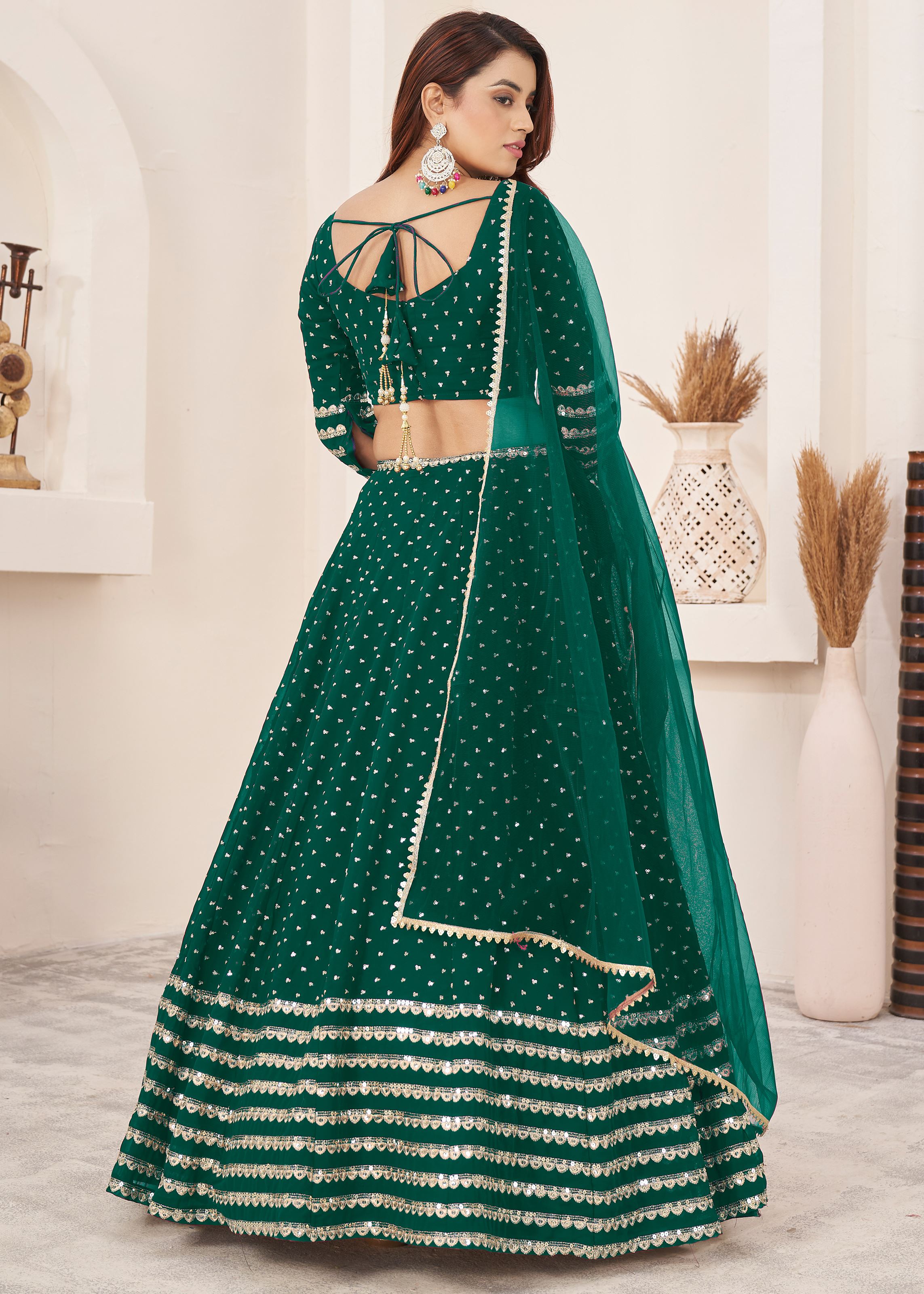 Teal Green Georgette Lehenga Choli With Sequins Zari Embroidered Work