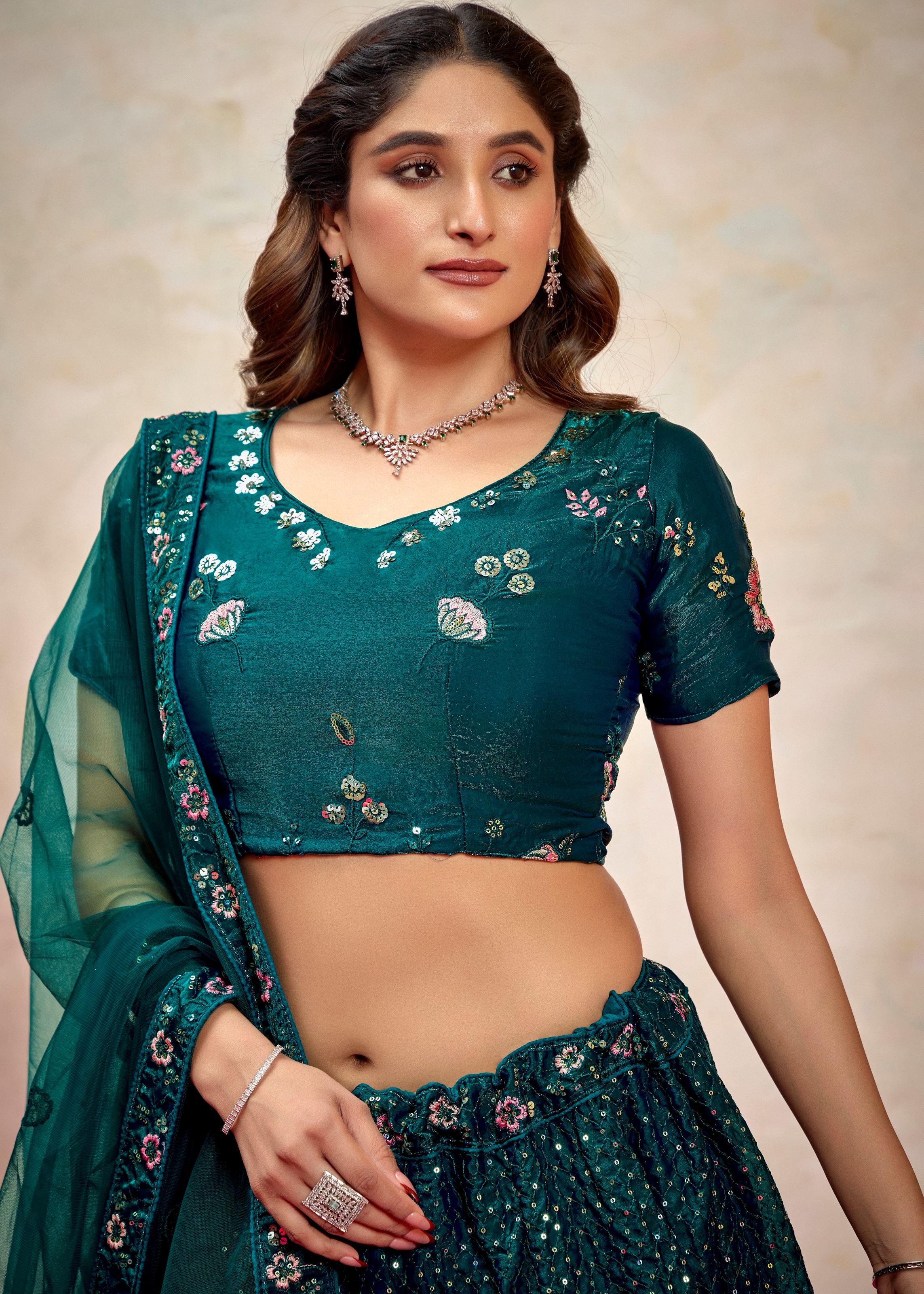 Teal Green Silk Lehenga with Bold Sequin Embroidery