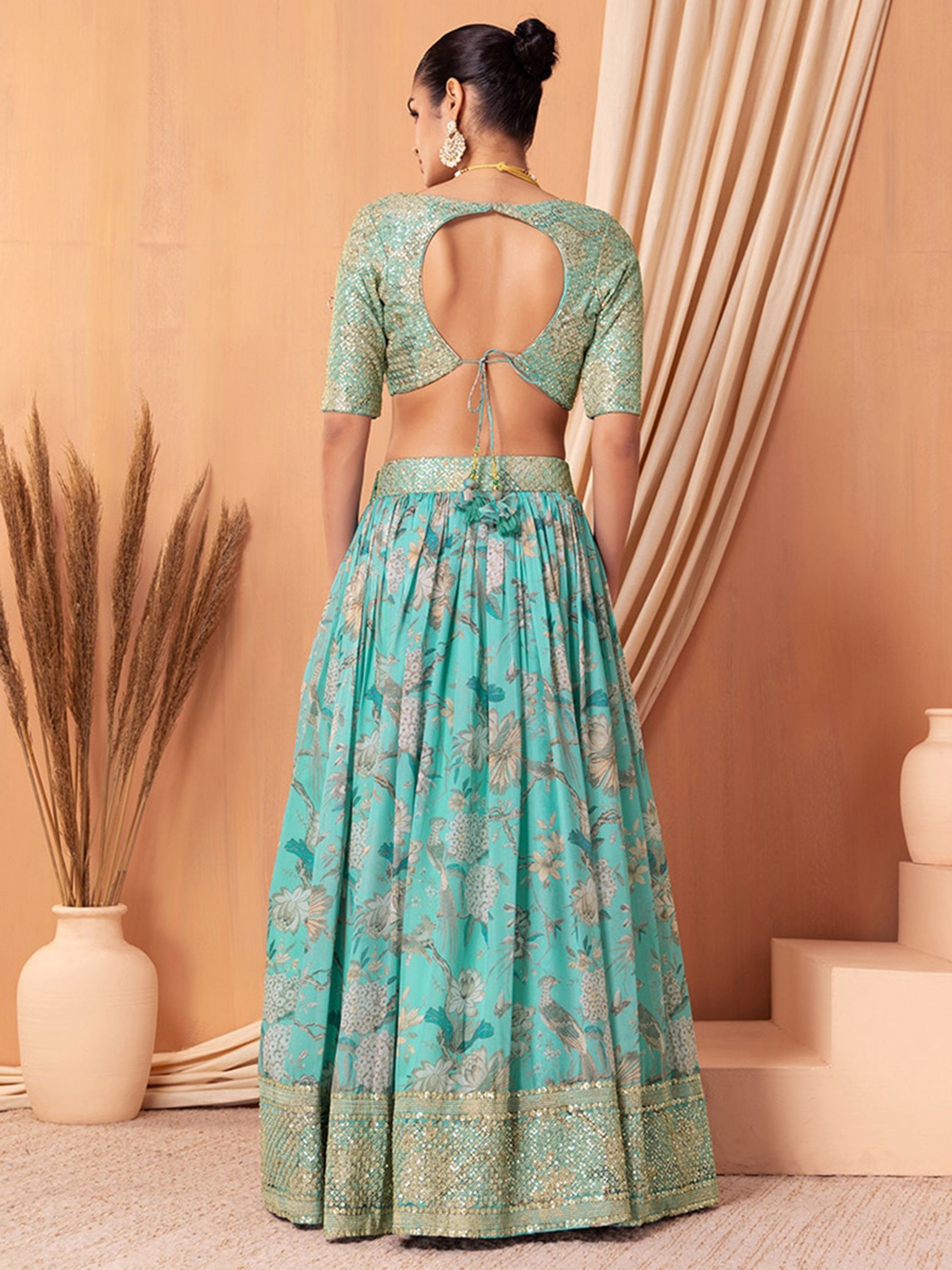 Turquoise Sequins Organza Reception Wear Lehenga Choli