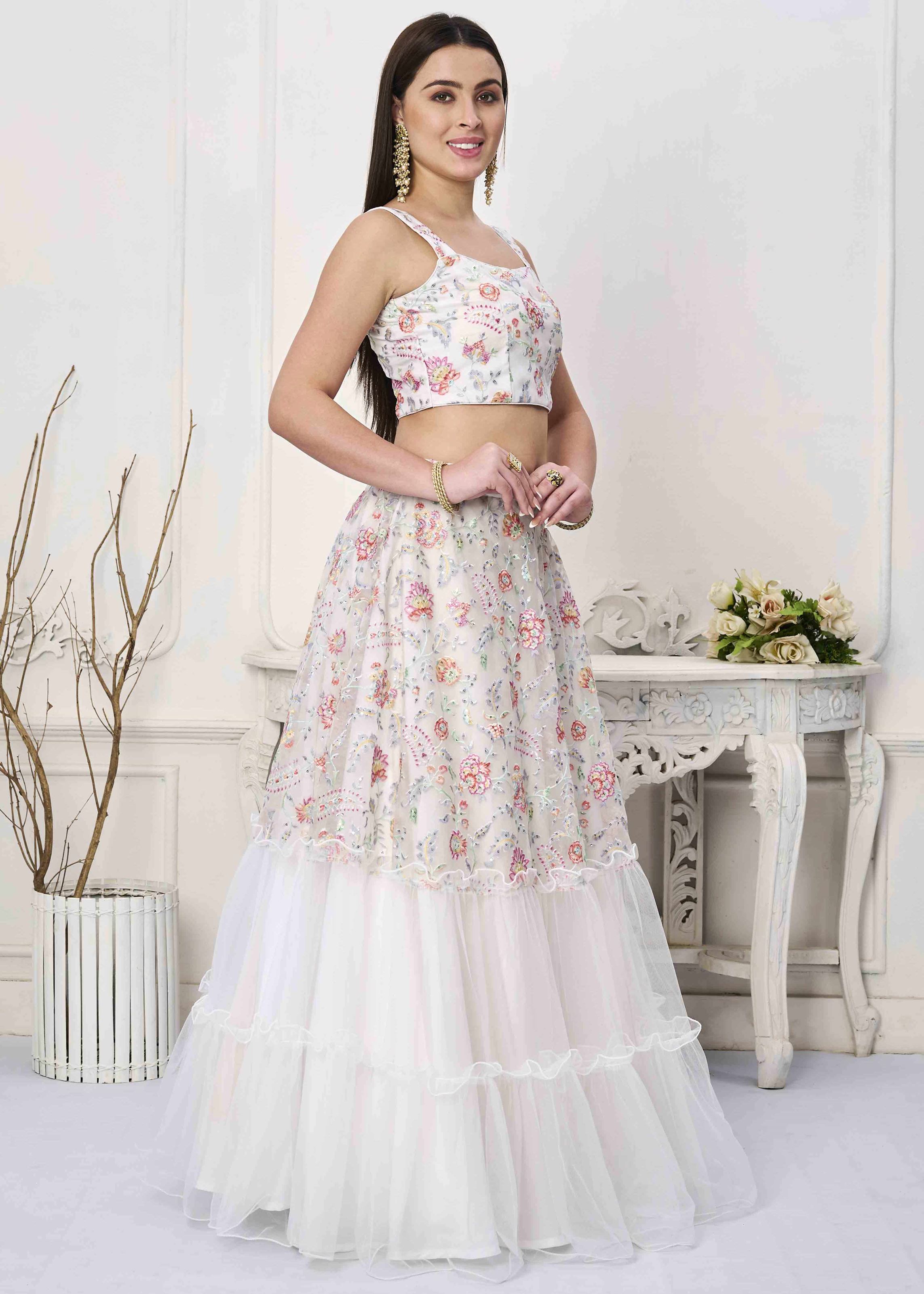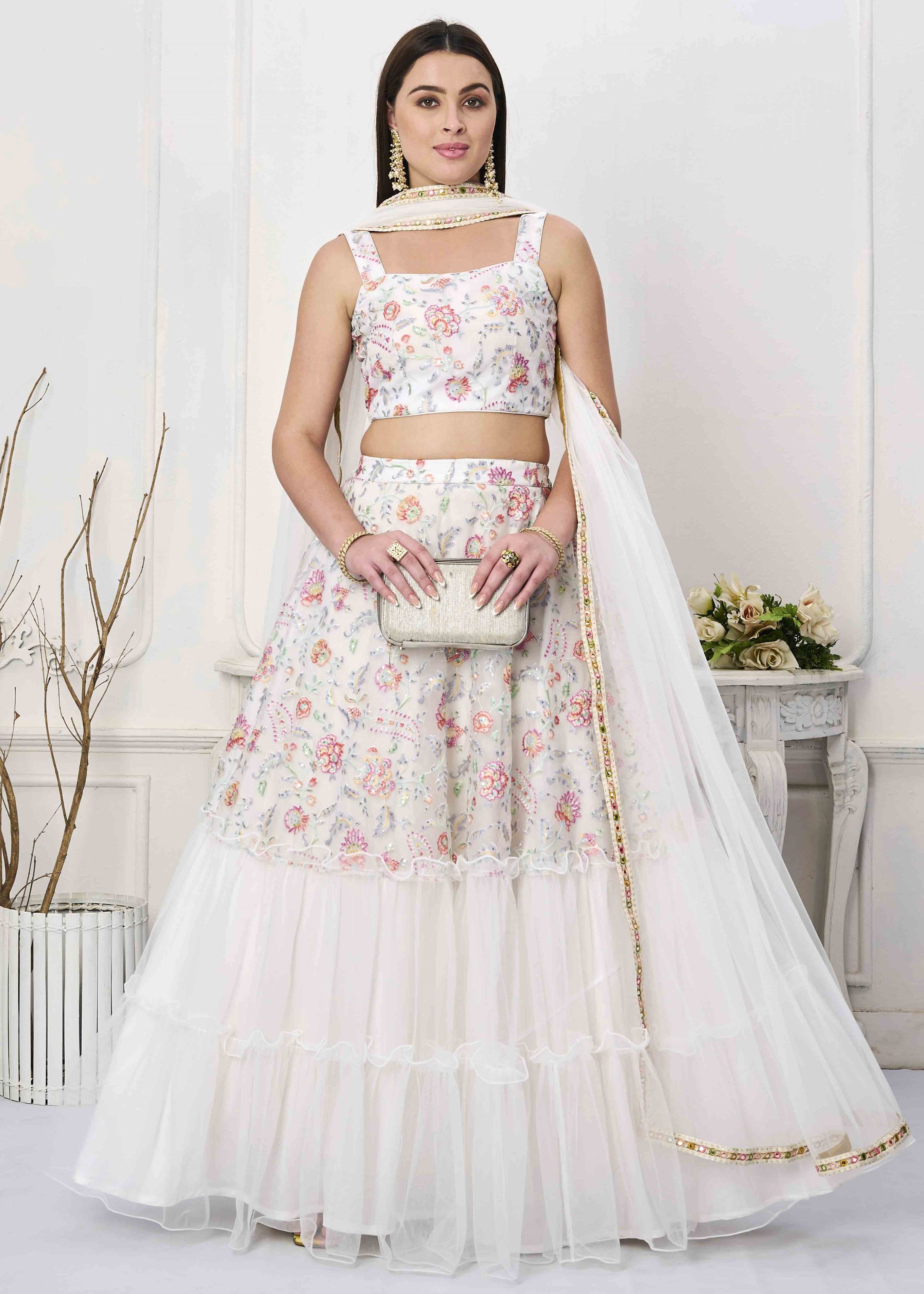 White Lehenga Choli with Thread Embroidery With Sequins Work