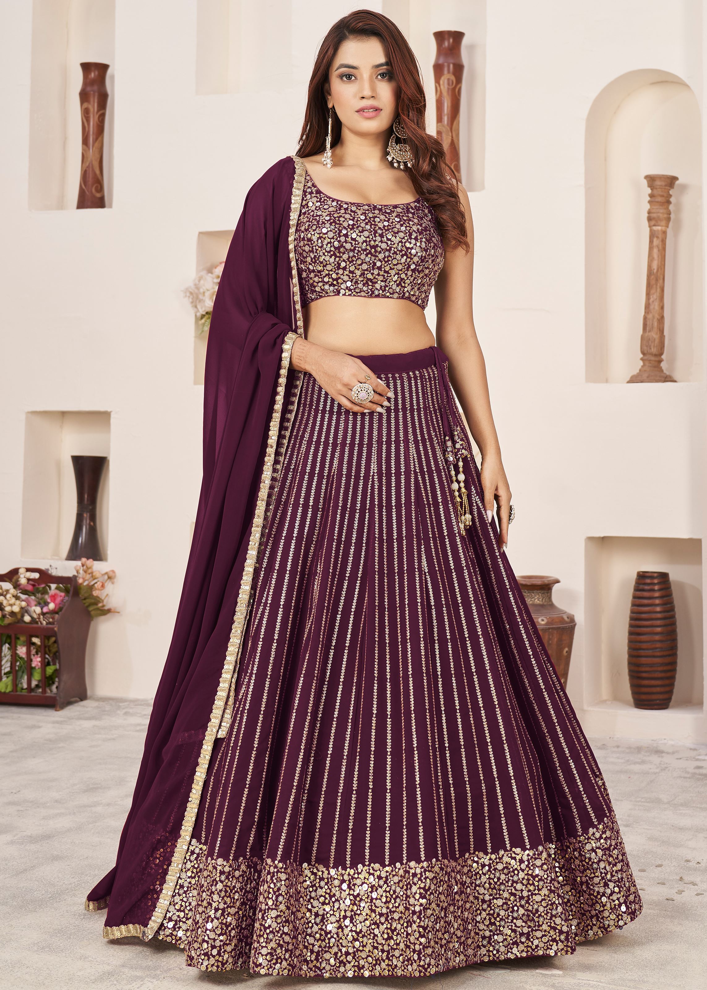 Wine Georgette Lehenga Choli With Sequins Zari Embroidered Work --Size Unstitched Available Up To 42 Size