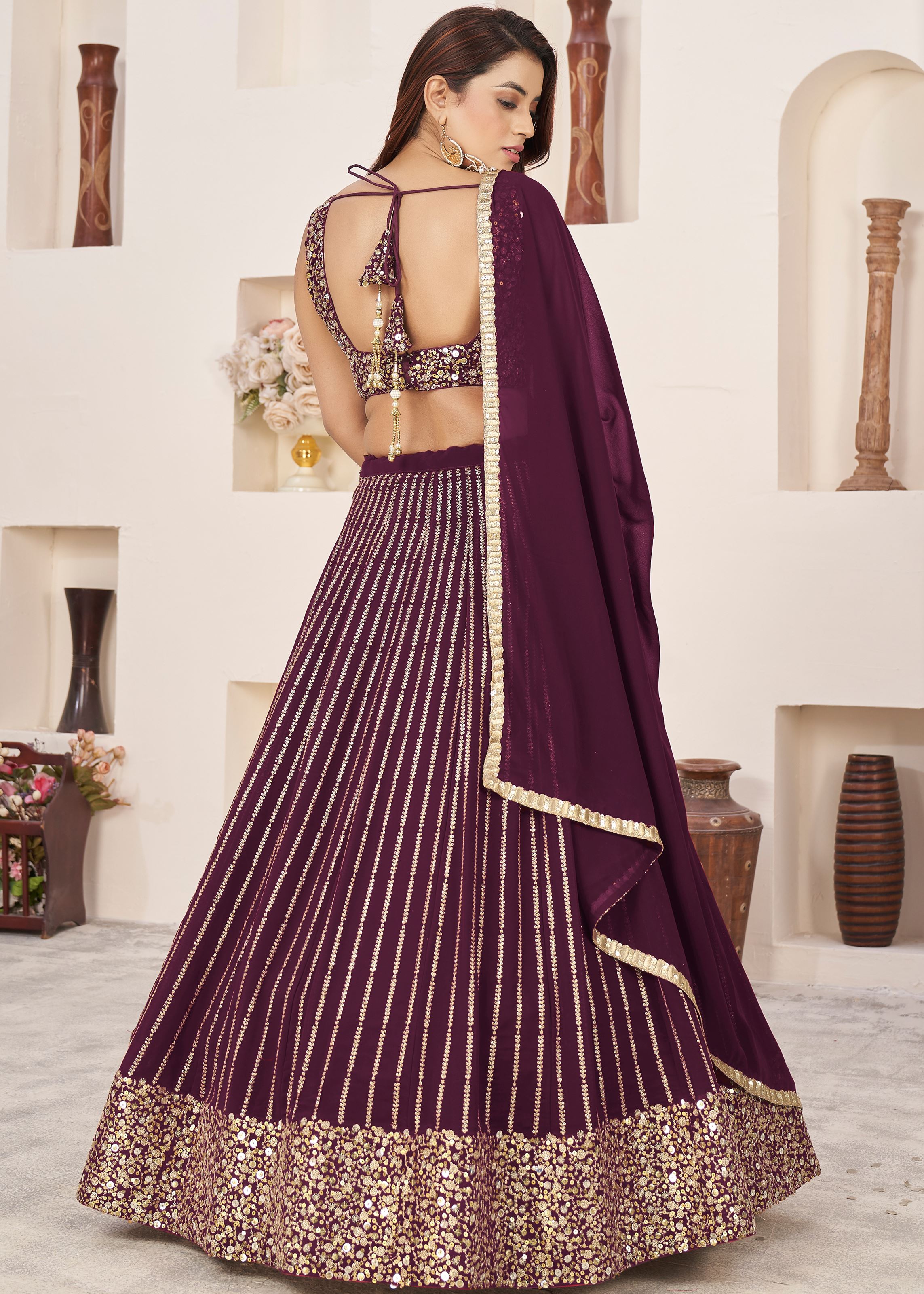 Wine Georgette Lehenga Choli With Sequins Zari Embroidered Work