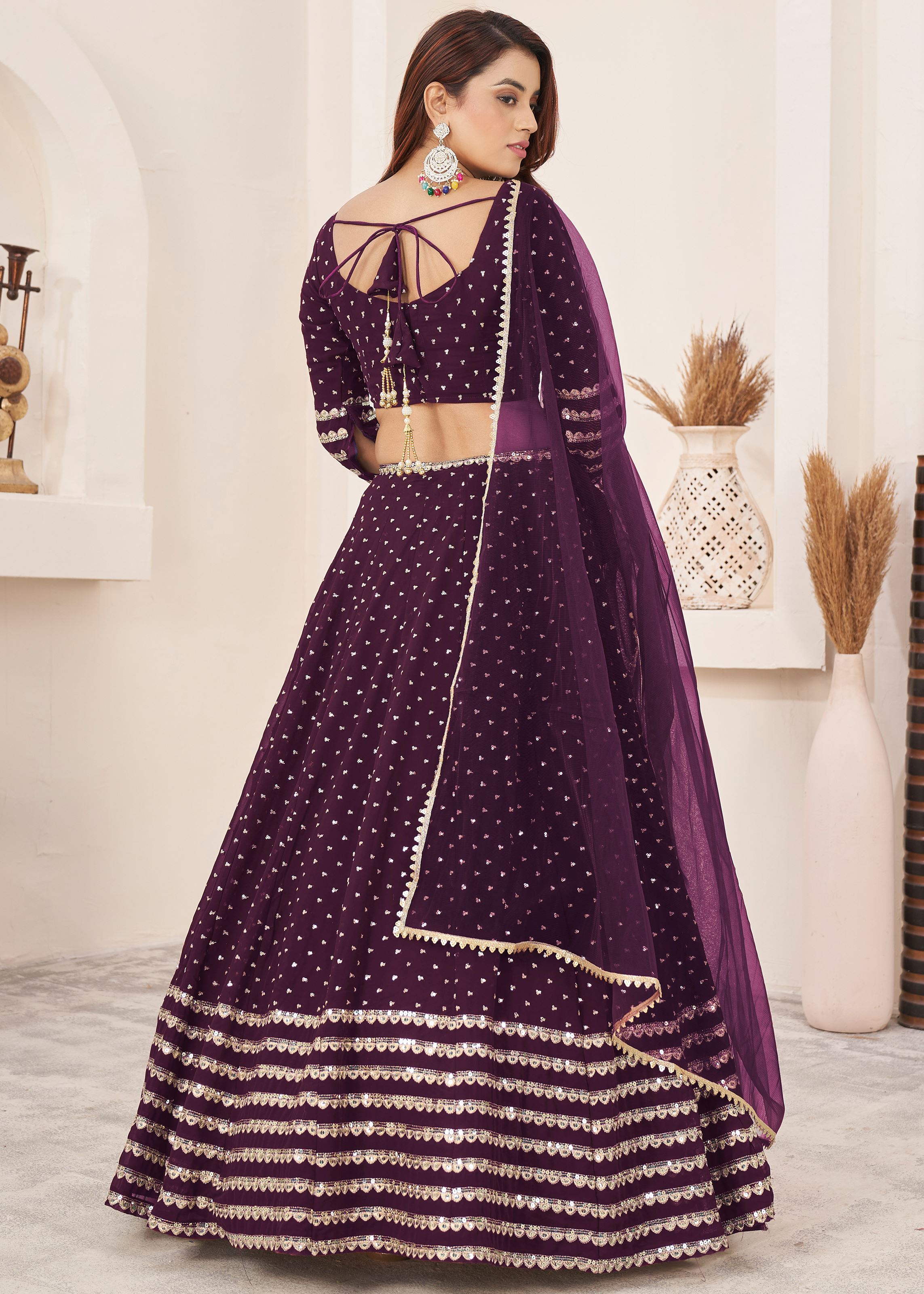 Wine Georgette Lehenga Choli With Zari, Sequins Embroidered Work