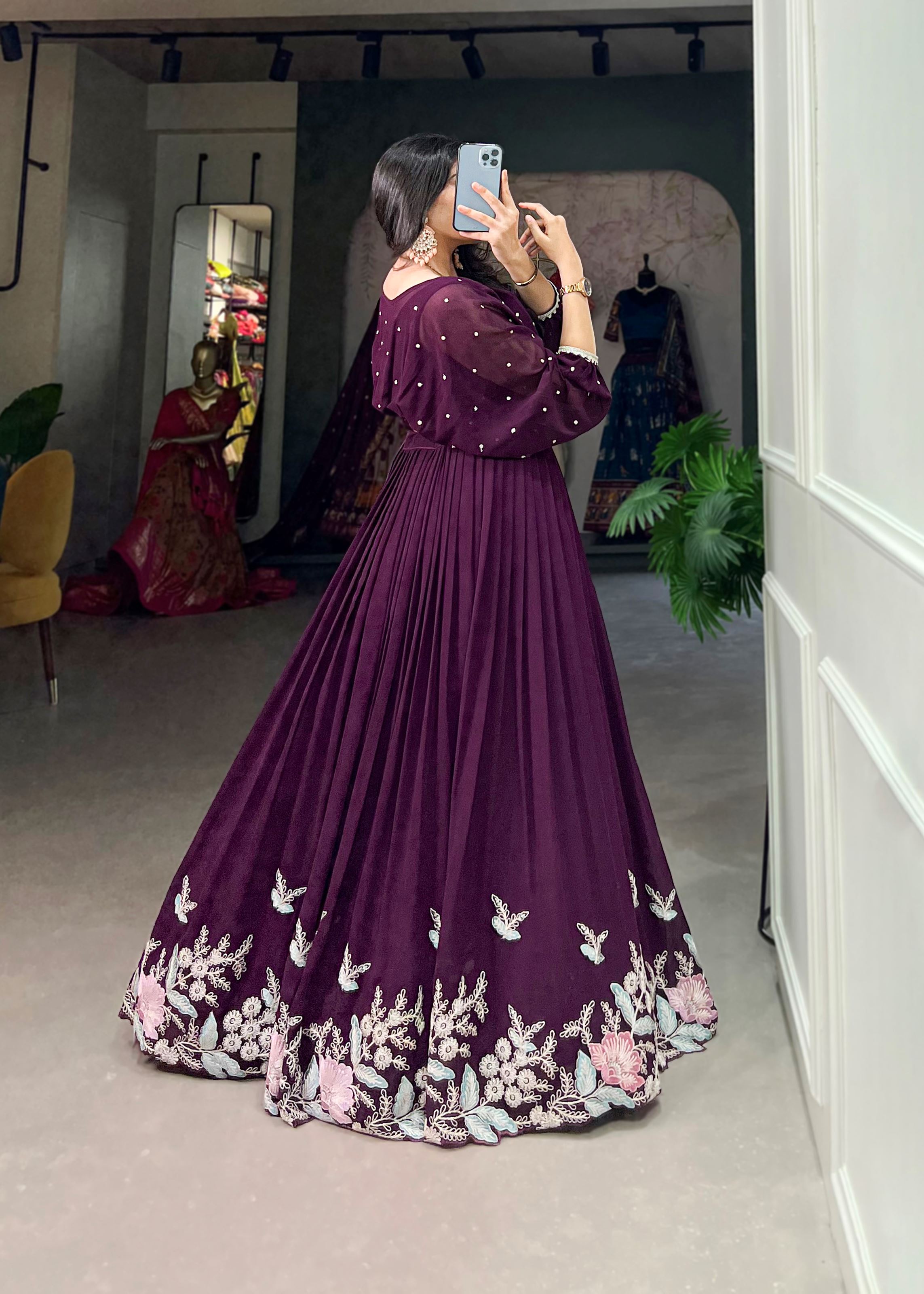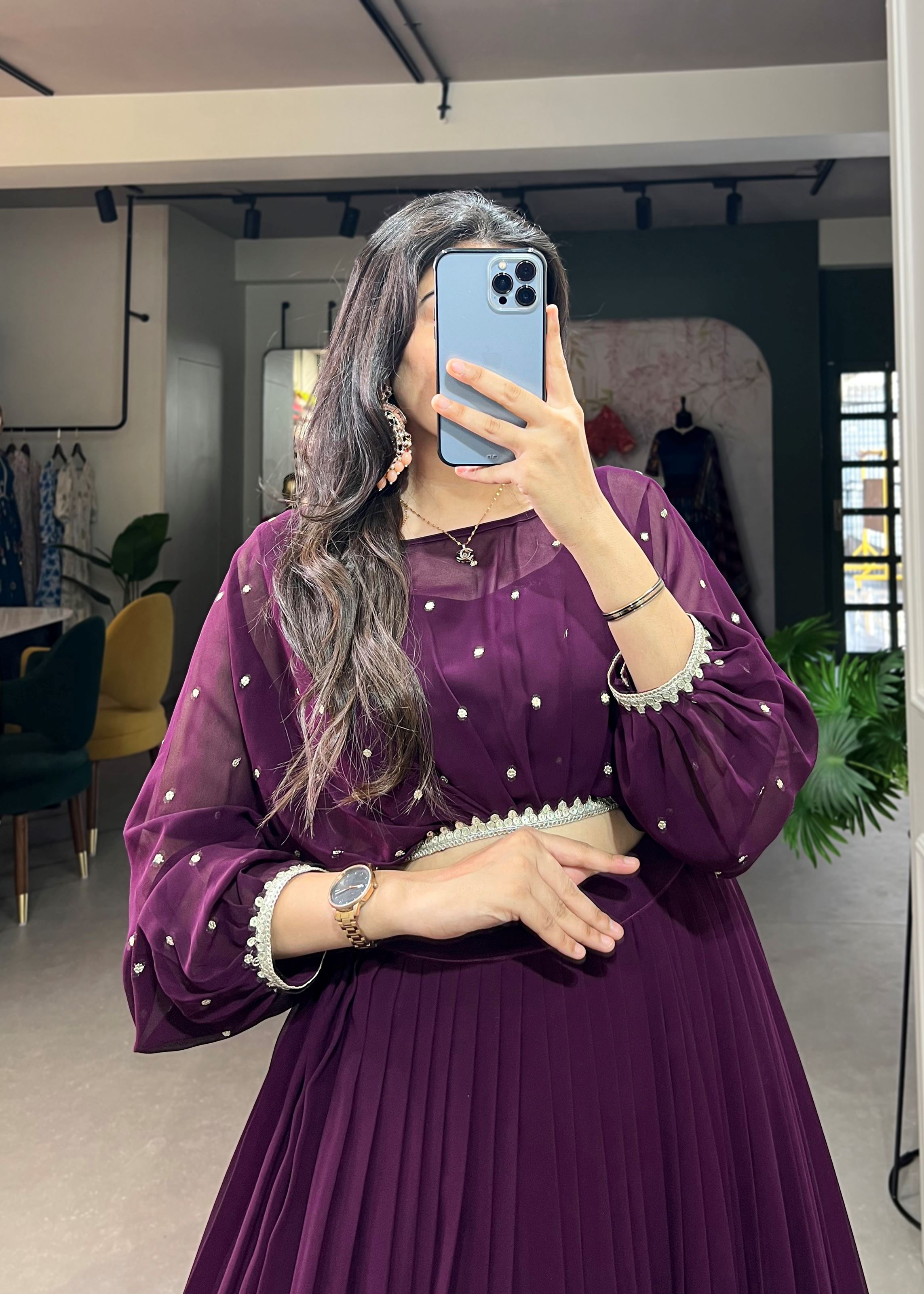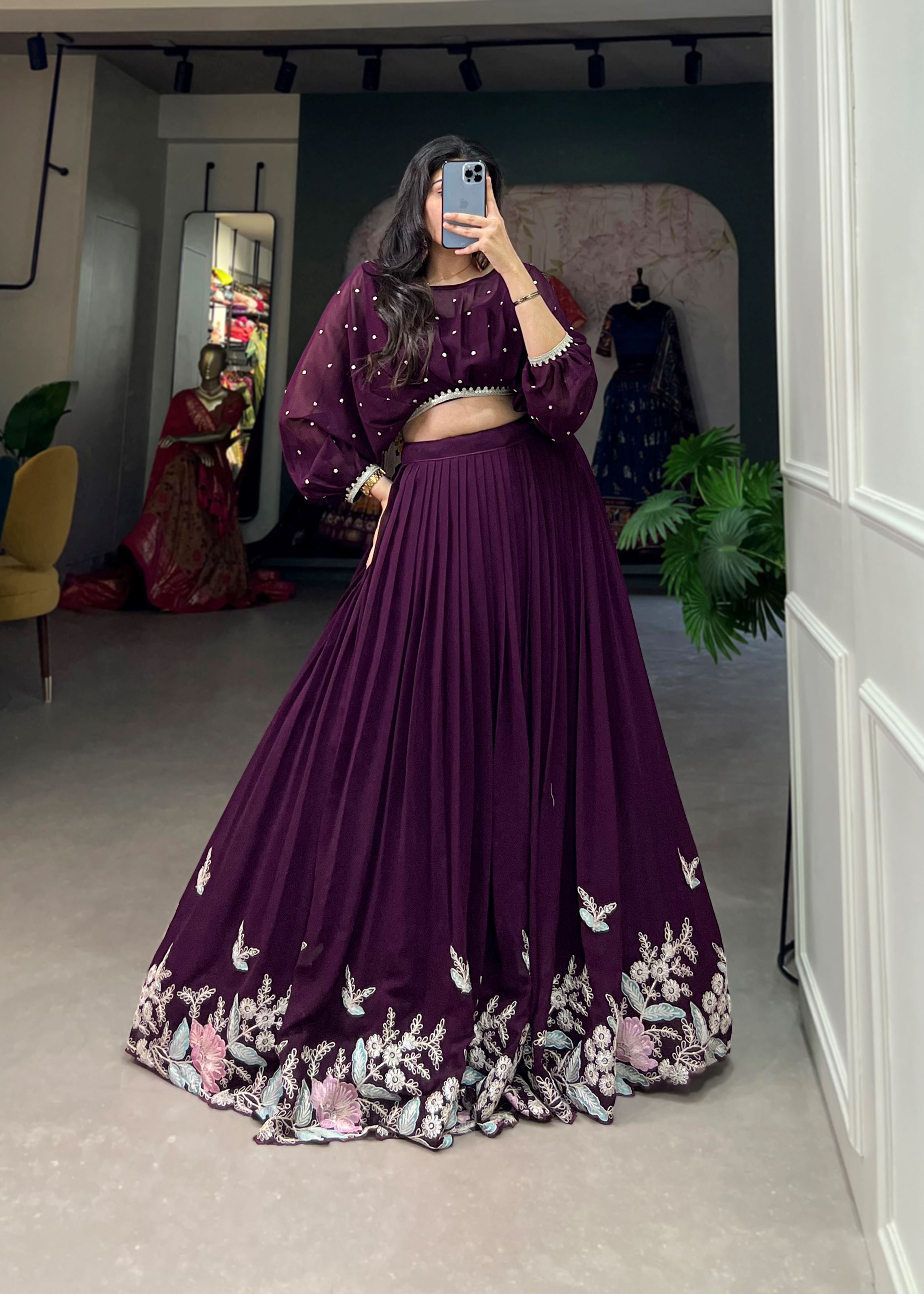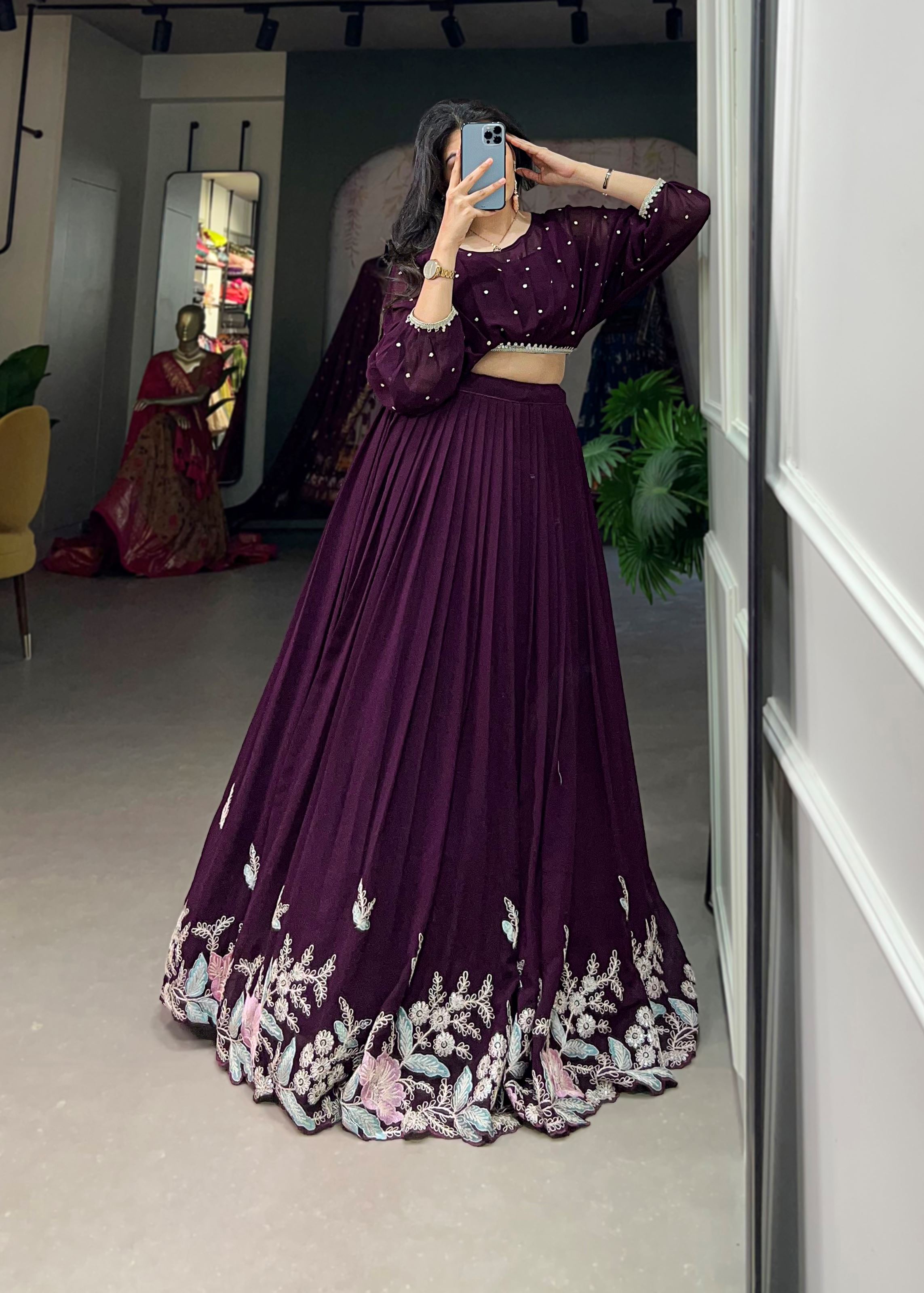 Wine Georgette Lehenga with Sequin and Thread Detailing – Light & Elegant
