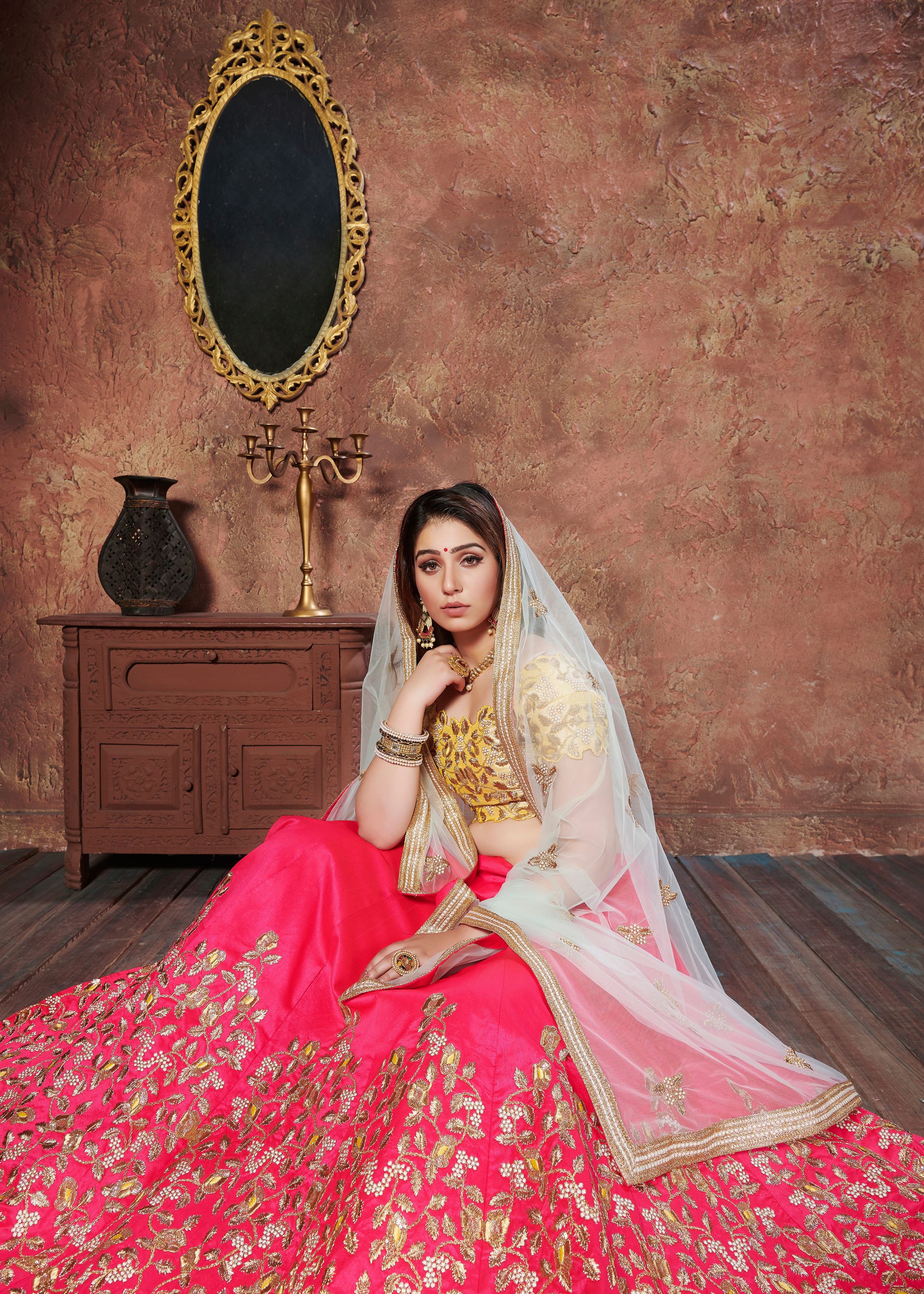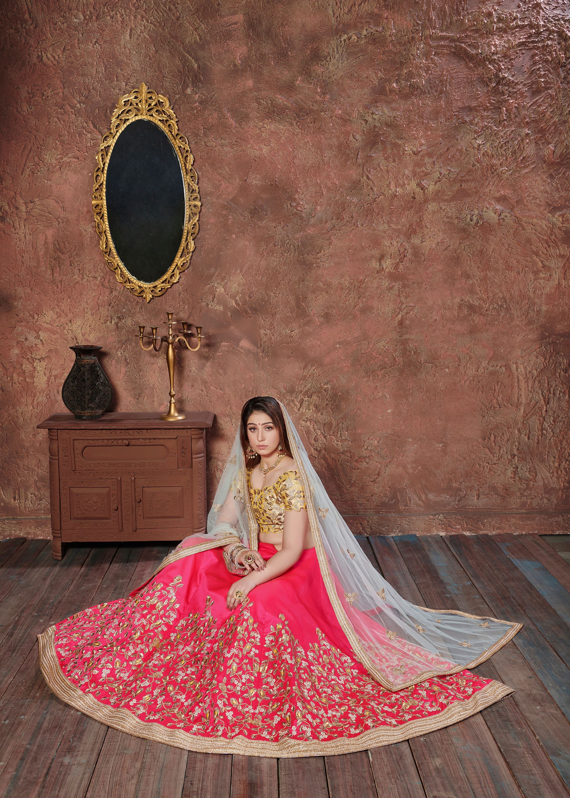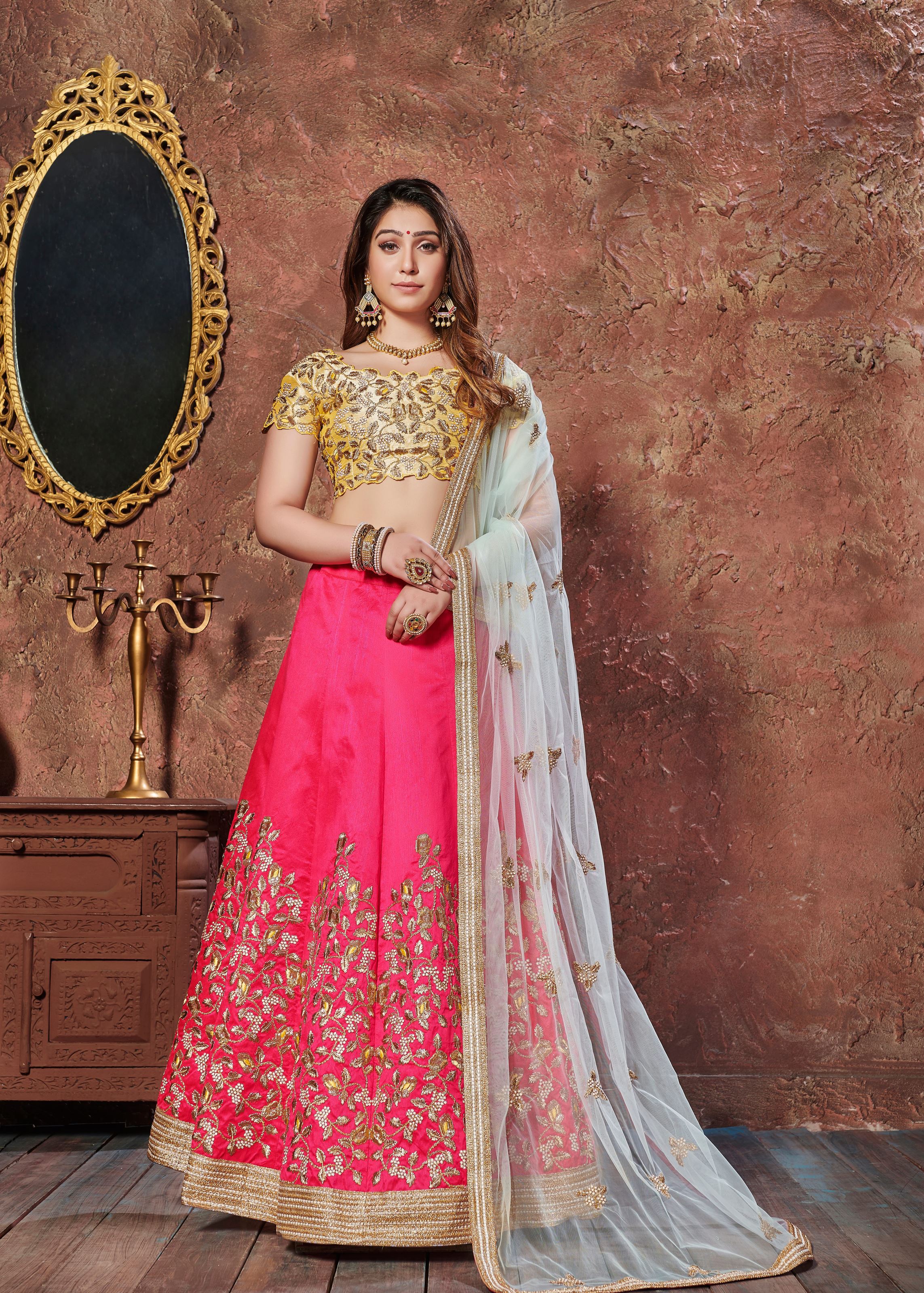 Yellow & Pink Mulbury Silk Lehenga Choli With Dori, Thread And Sequins Embroidery ----- SIZE (SEMI STITCHED) AVAILABLE UP TO 42 BUST AND WAIST