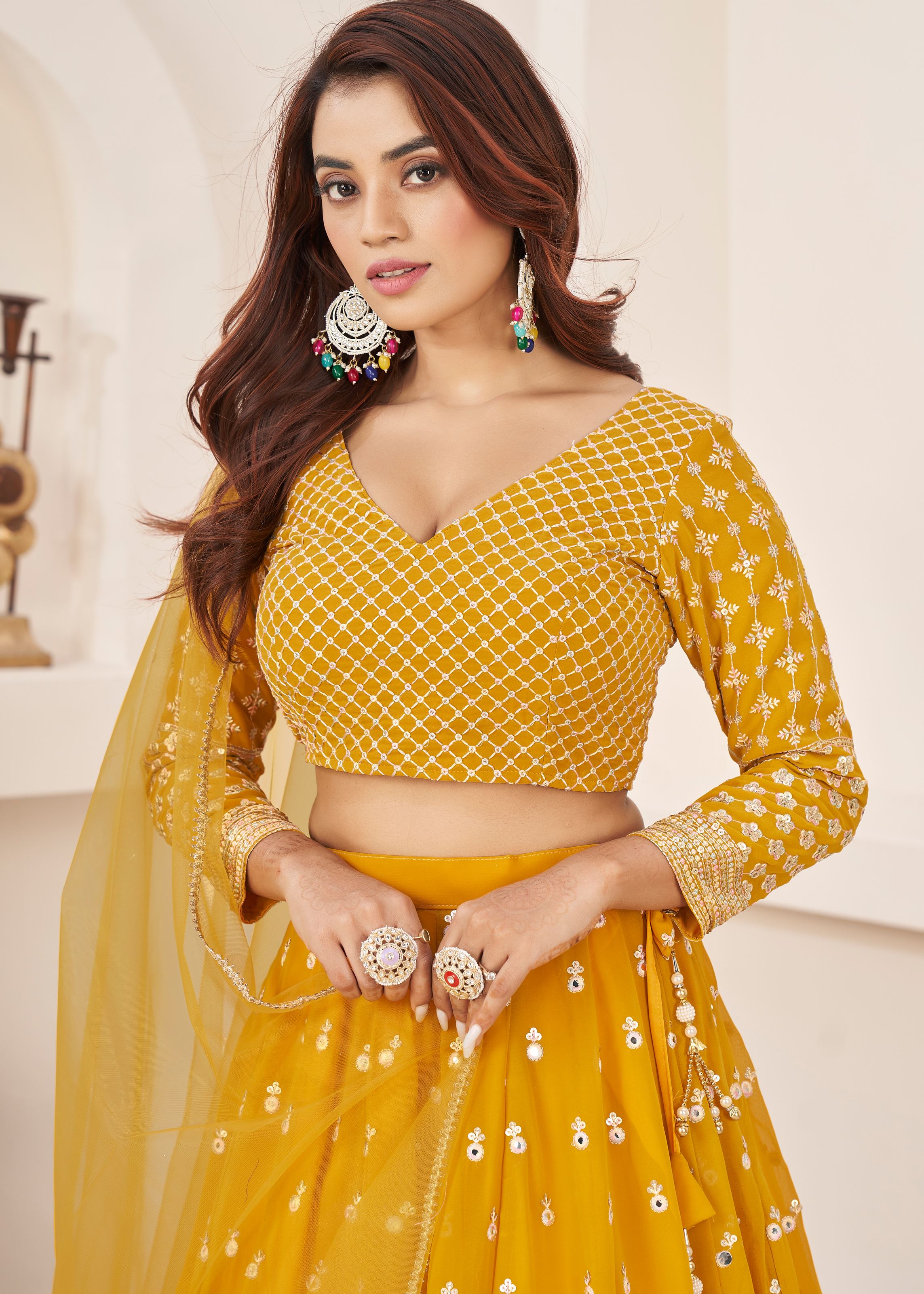 Yellow Georgette Lehenga Choli With Multi Colored Thread with Sequins Embroidered Work