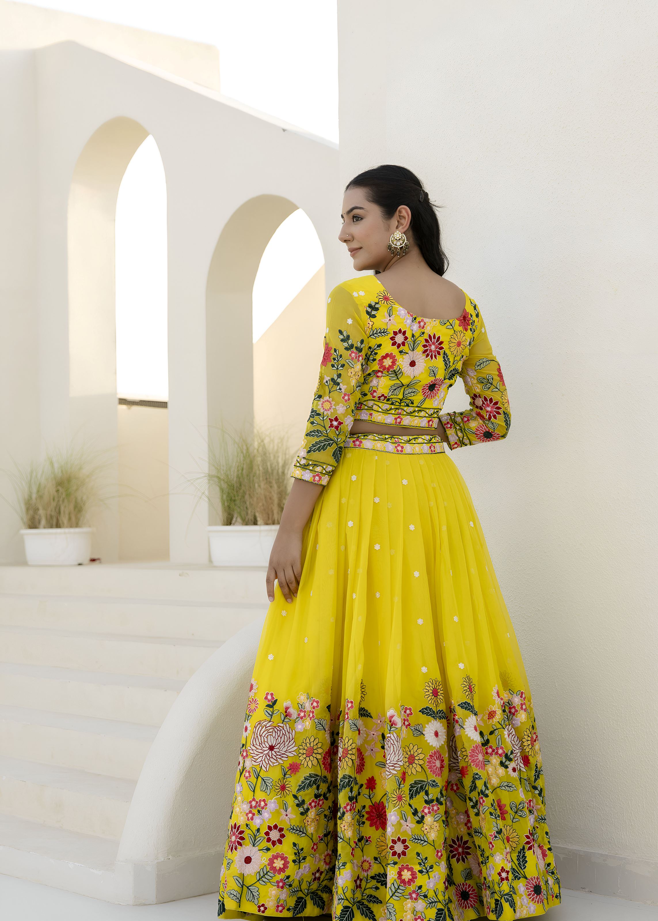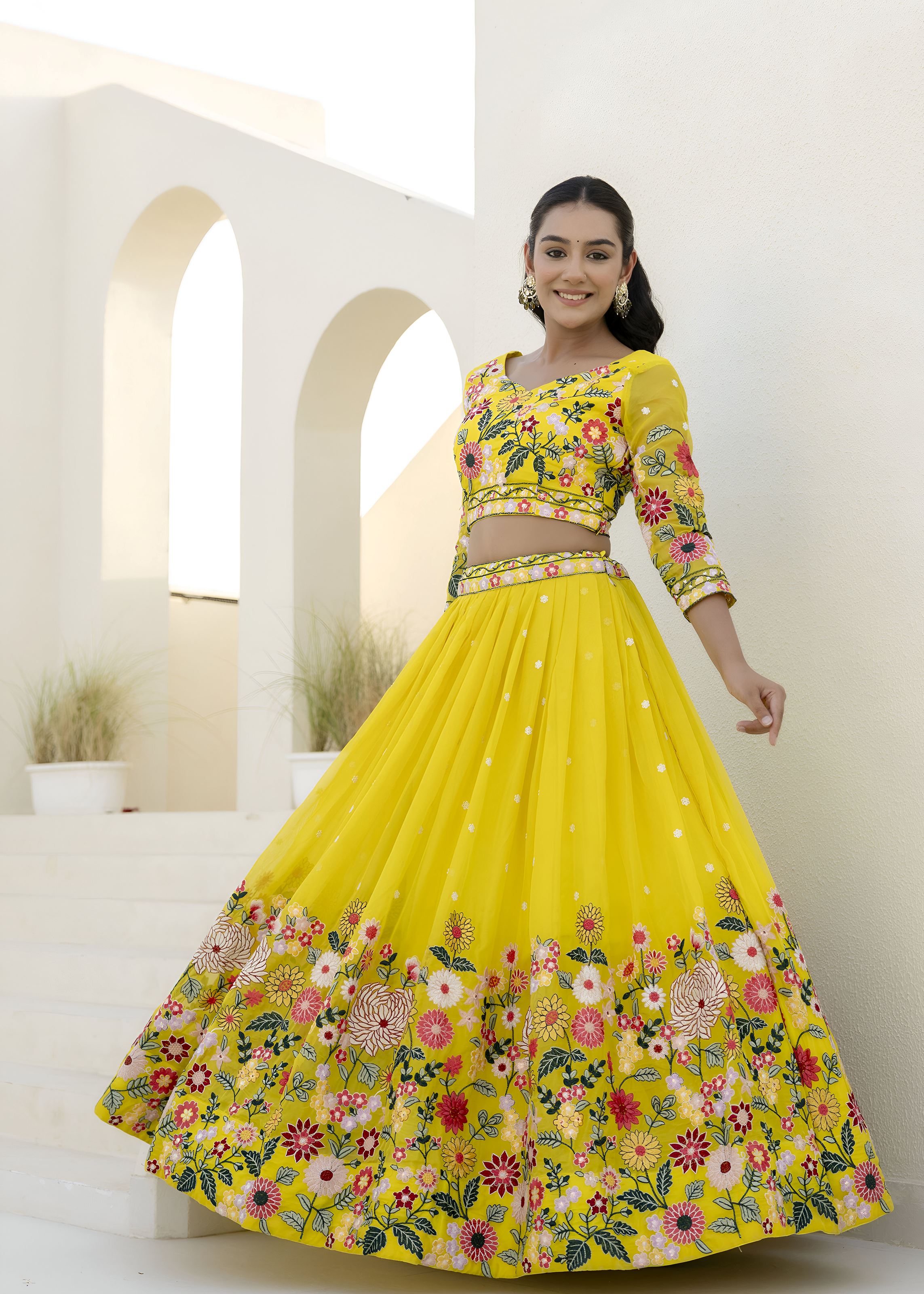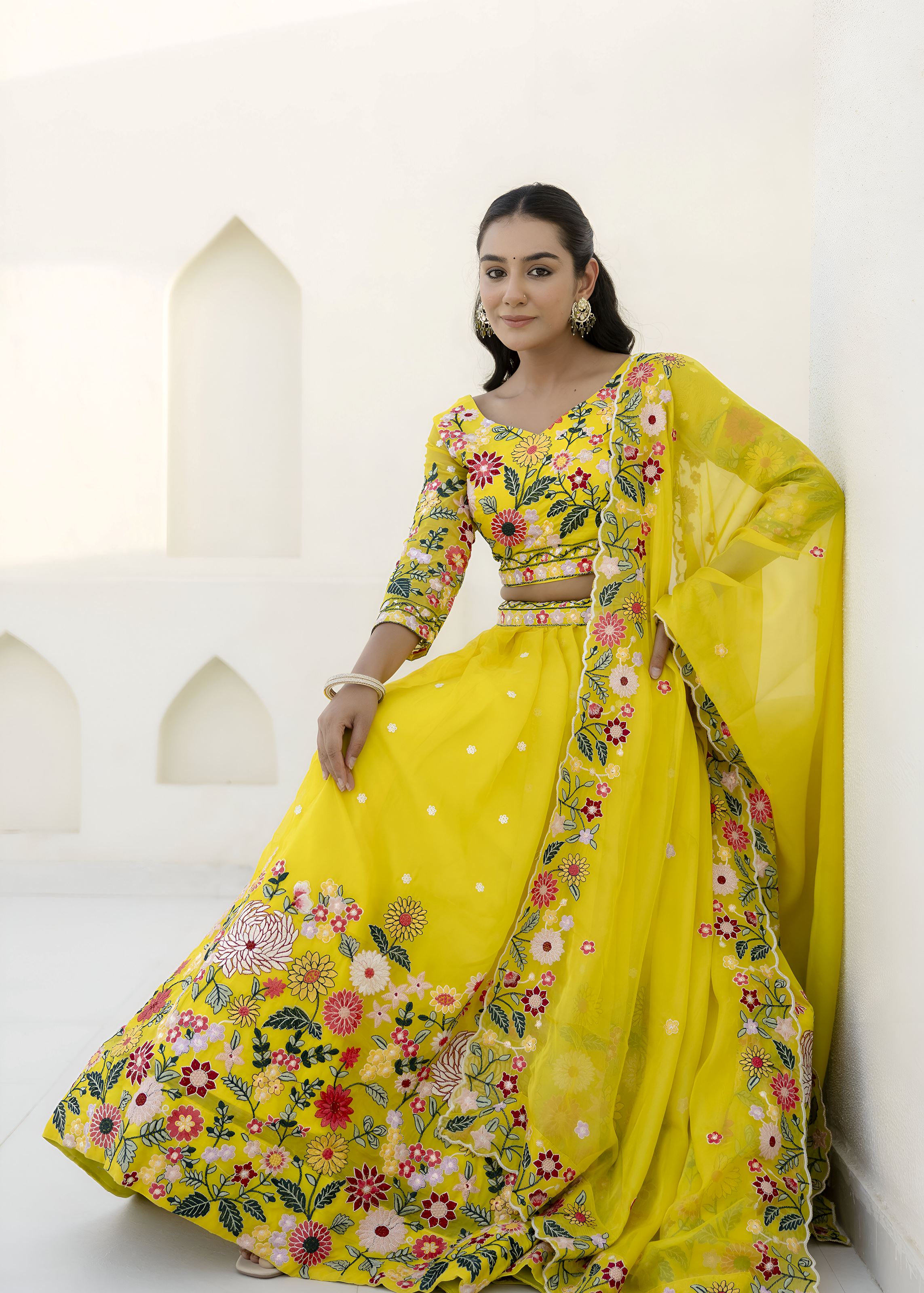 Yellow Lehenga Choli with Heavy Embroidery & Sequence Work