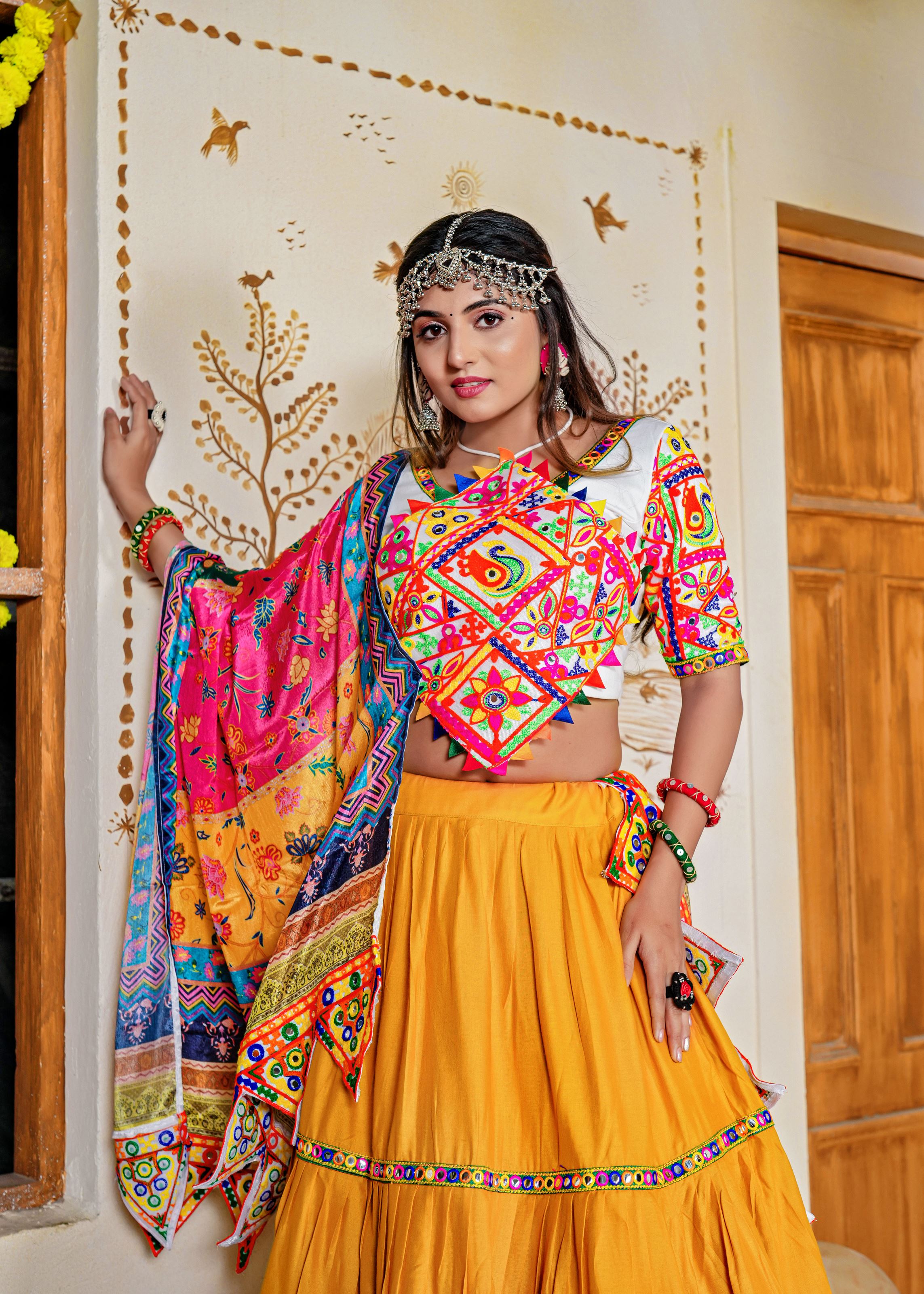 Yellow Lehenga Choli With Heavy Ready Mirror Lace